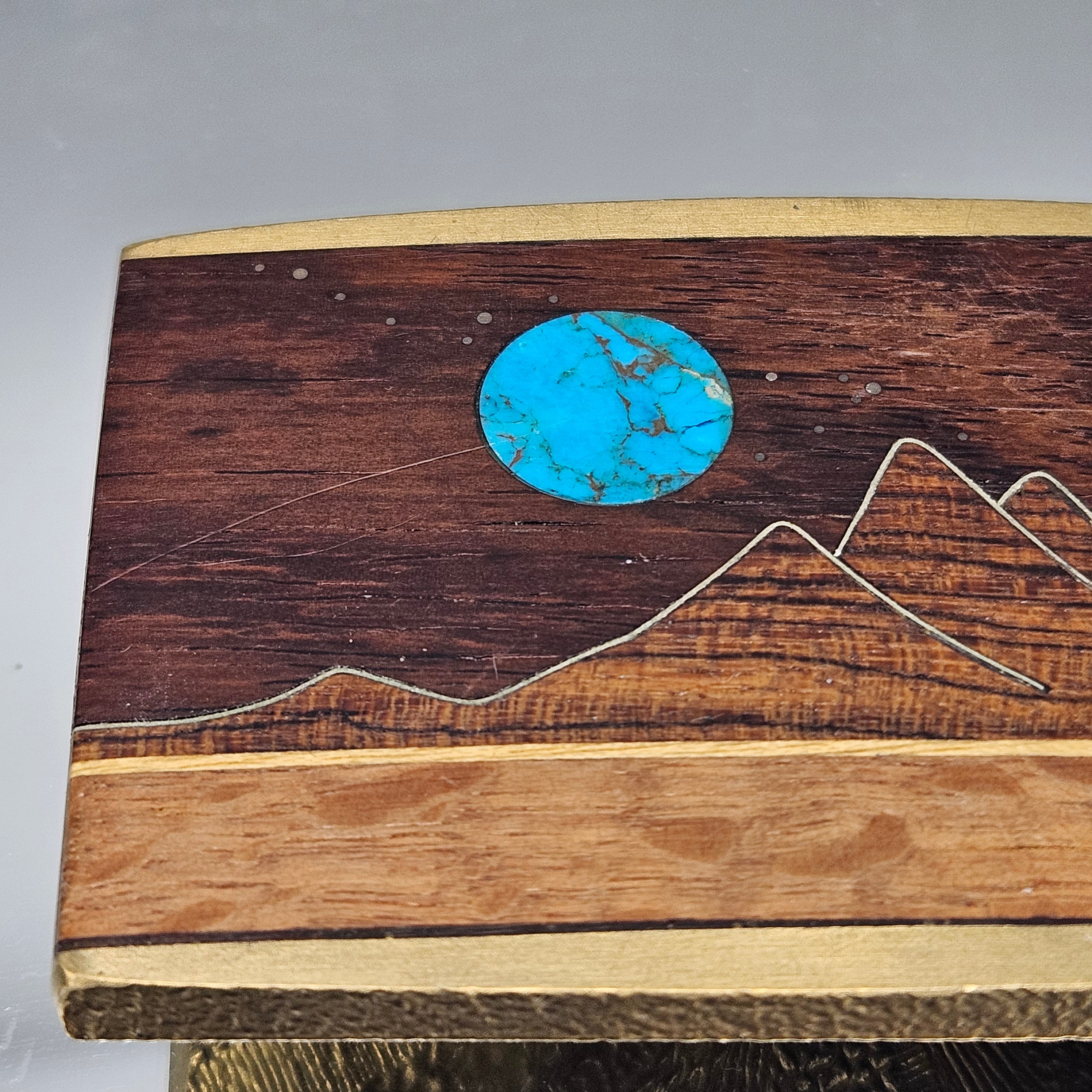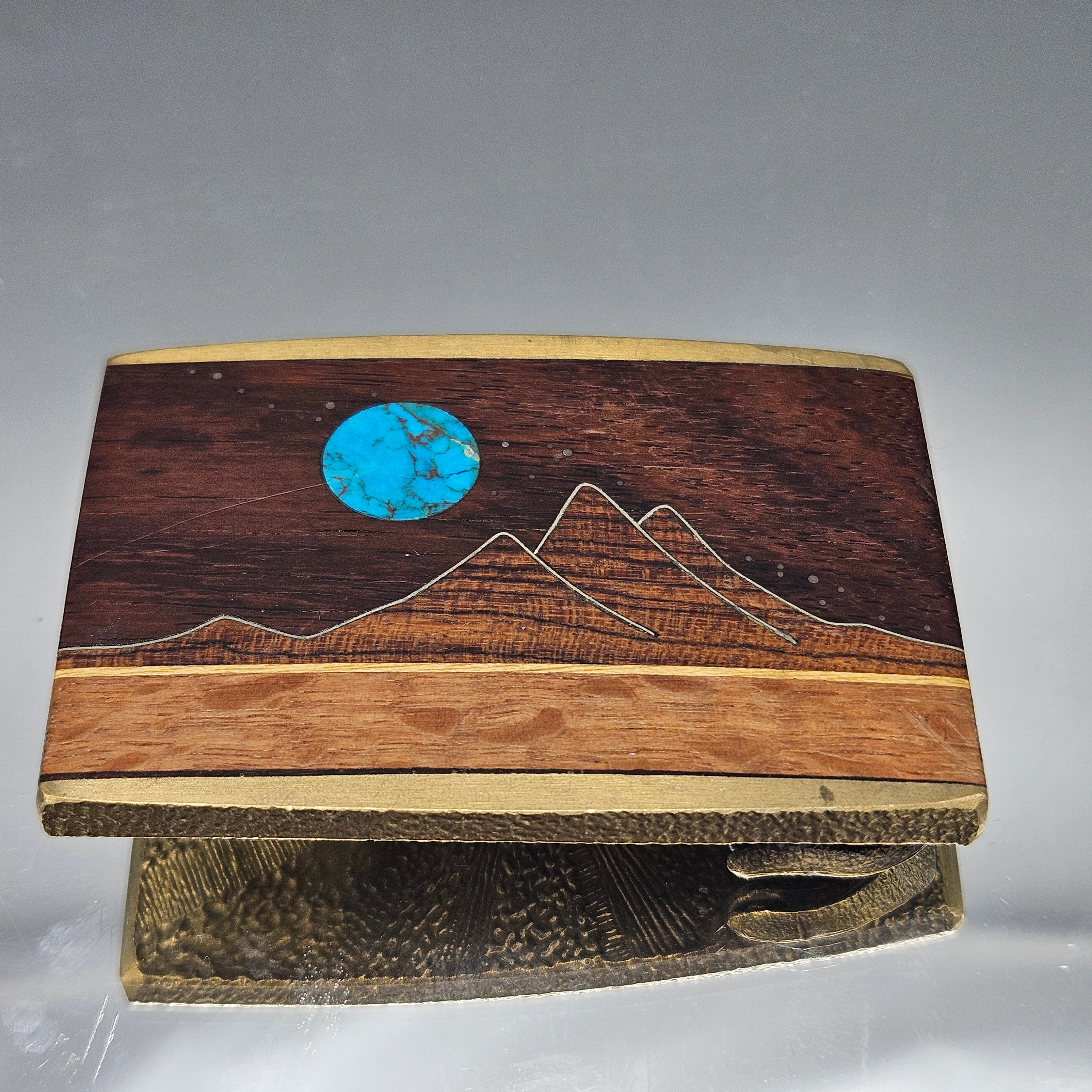 Southwestern Wood Belt Buckle with Turquoise Rising Moon