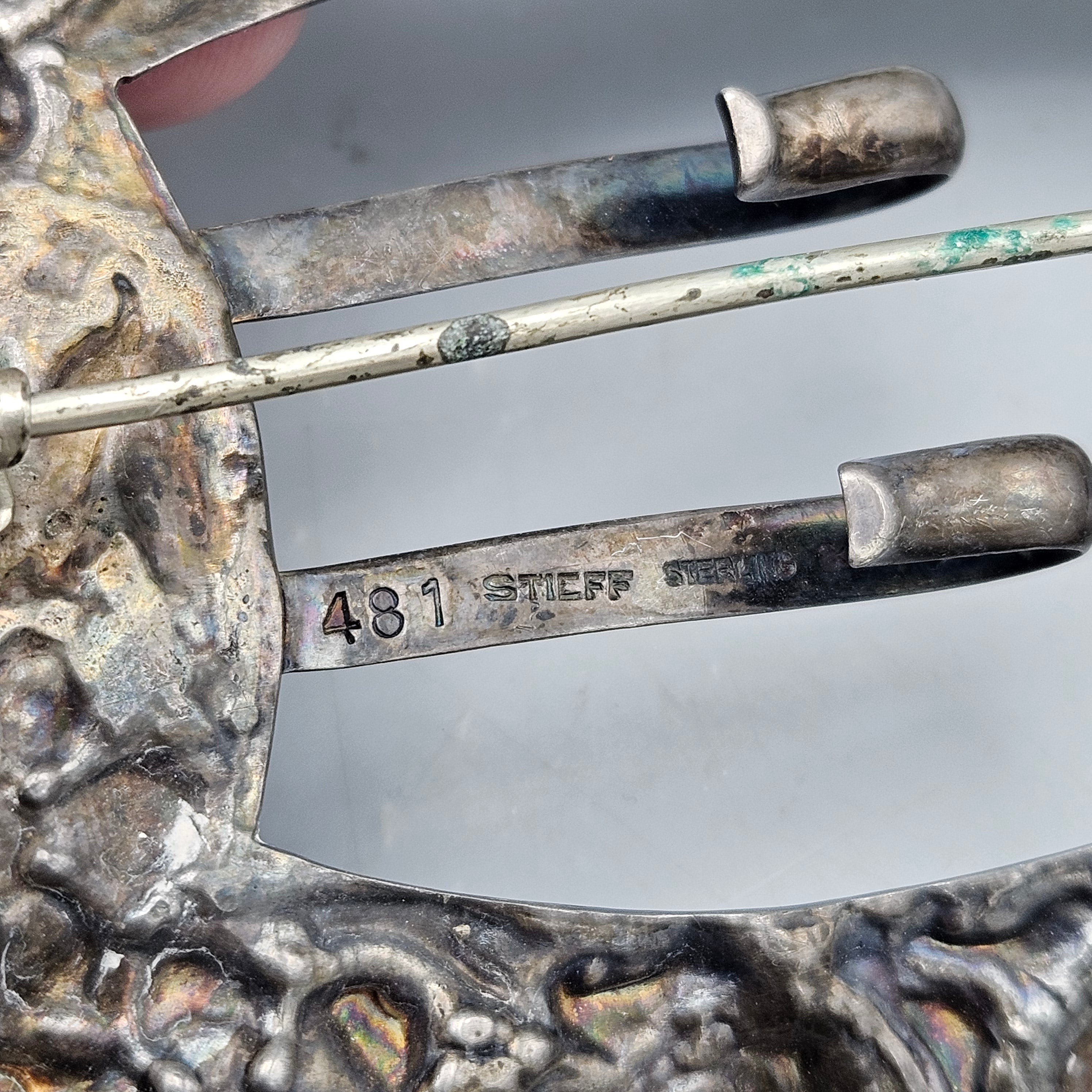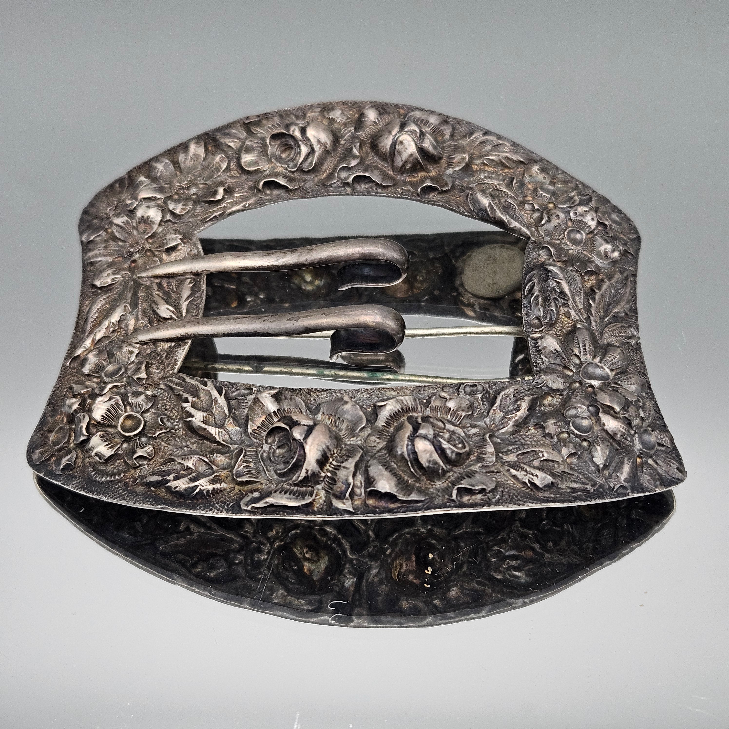 Vintage Stieff Sterling Silver Repousse Belt Buckle
