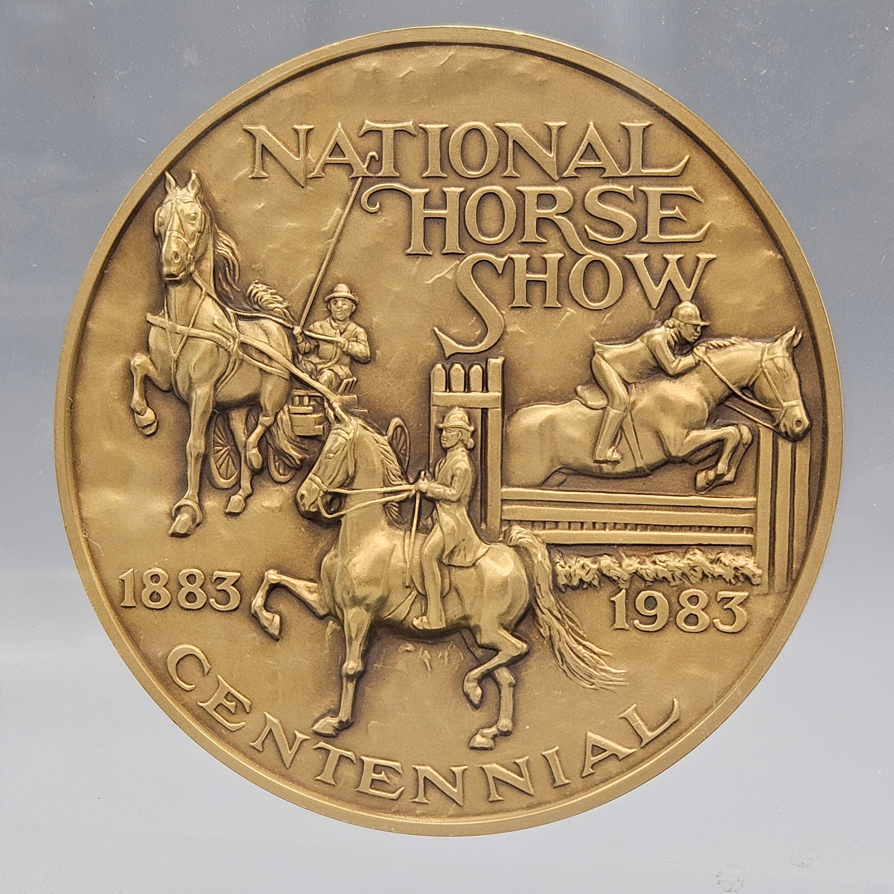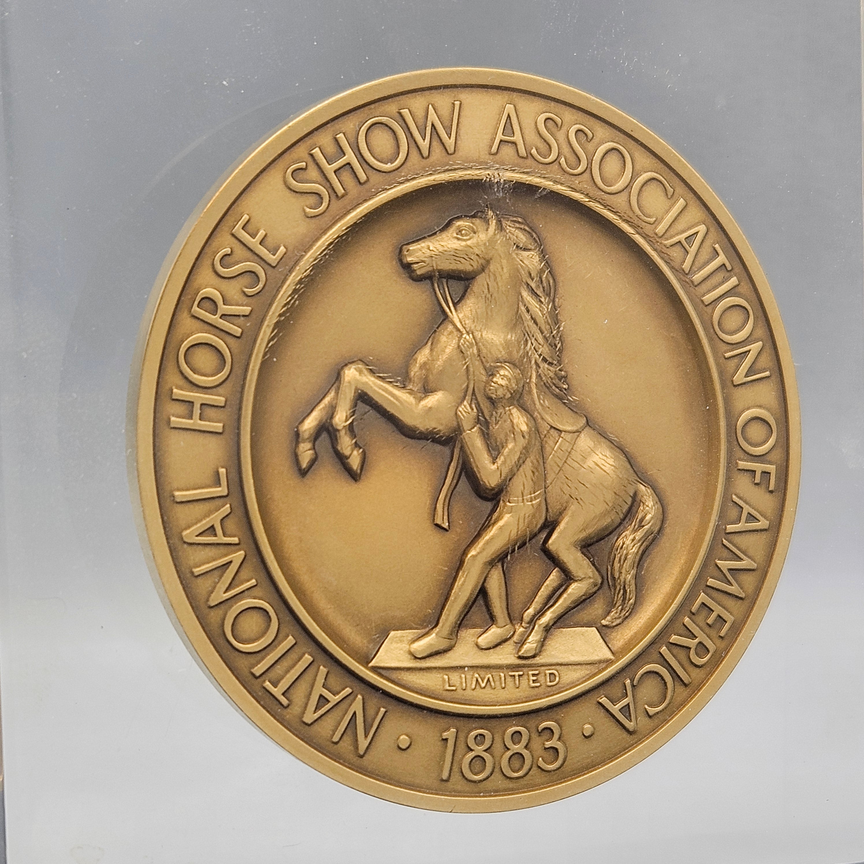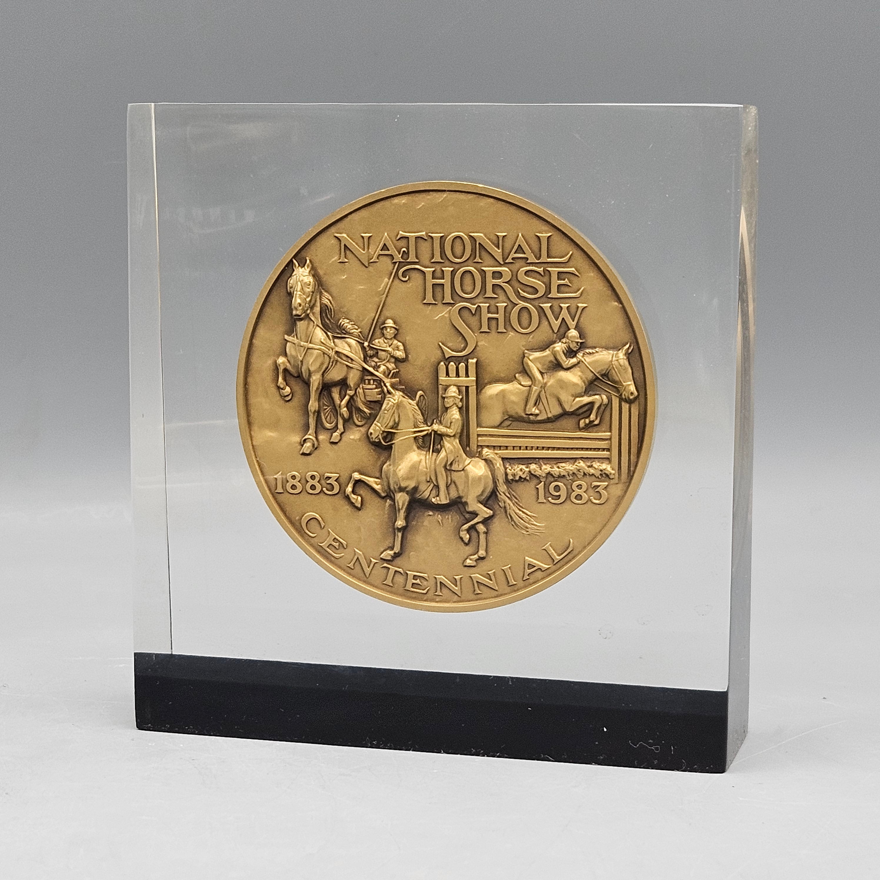 1983 National Horse Show of America Centennial Bronze Medallion in Lucite