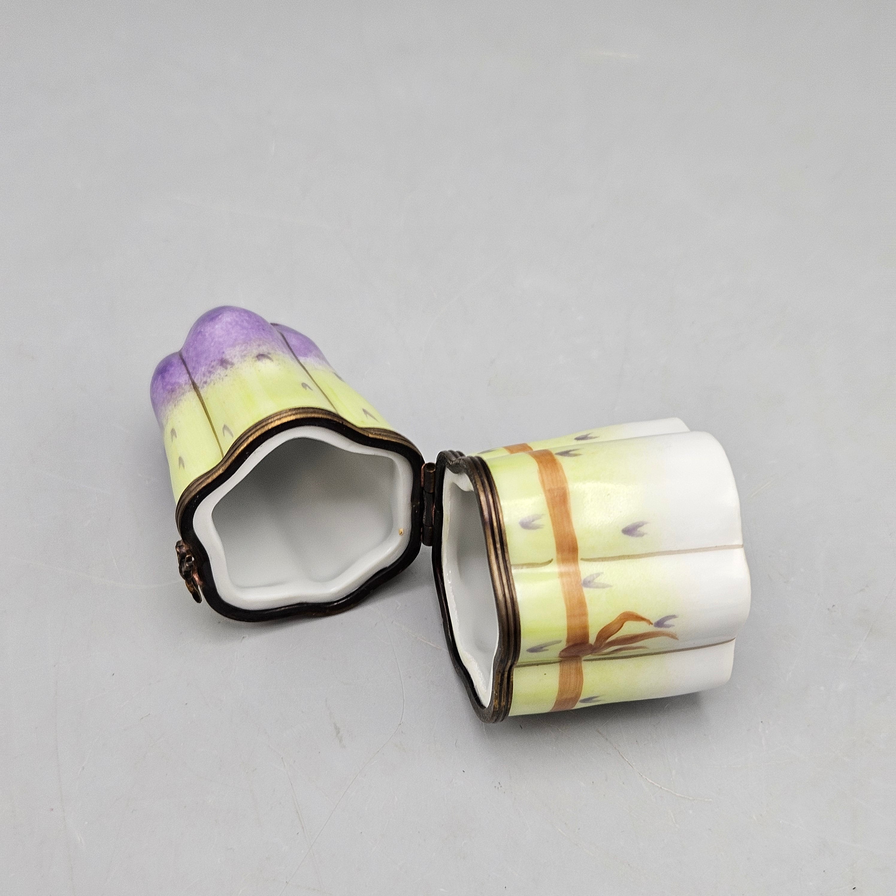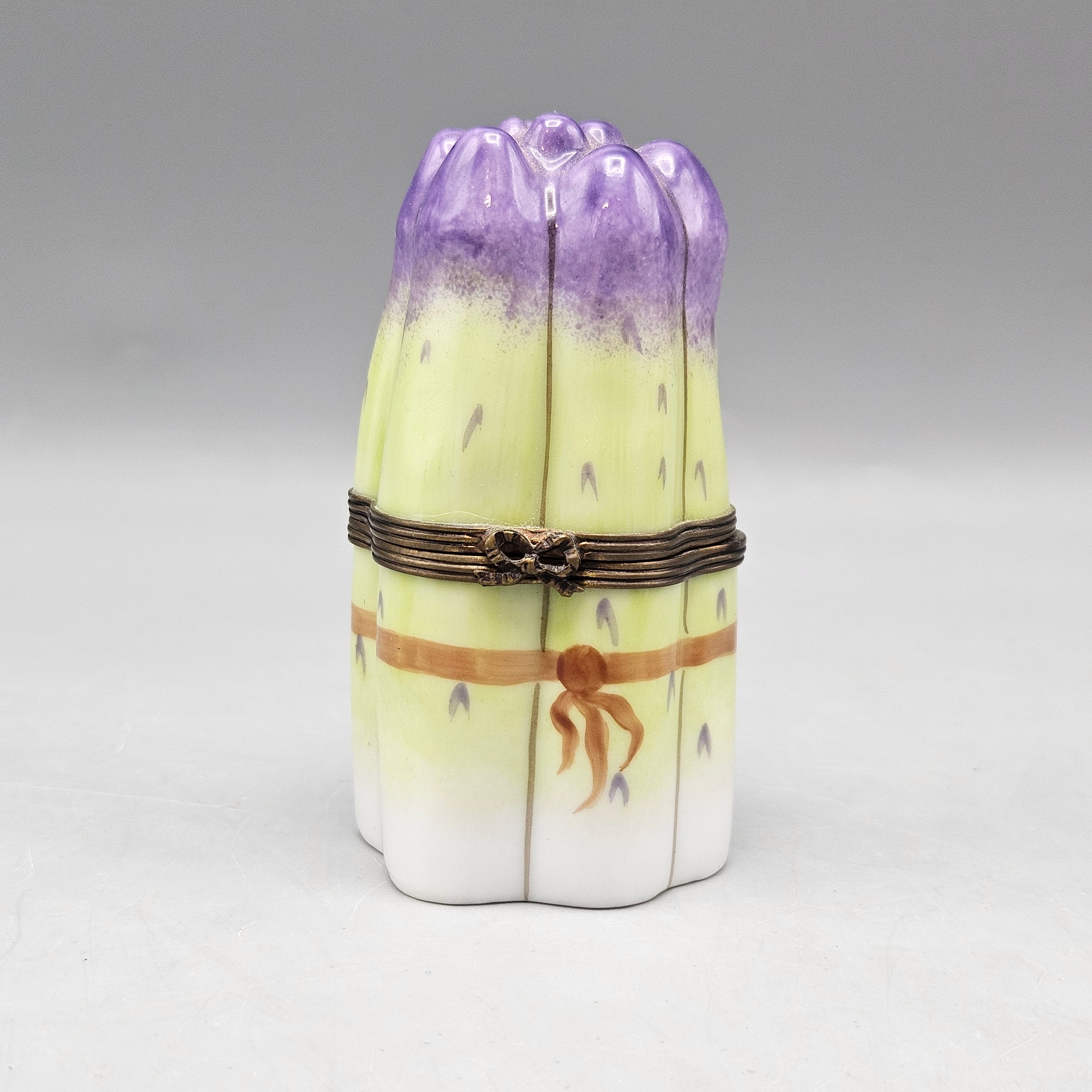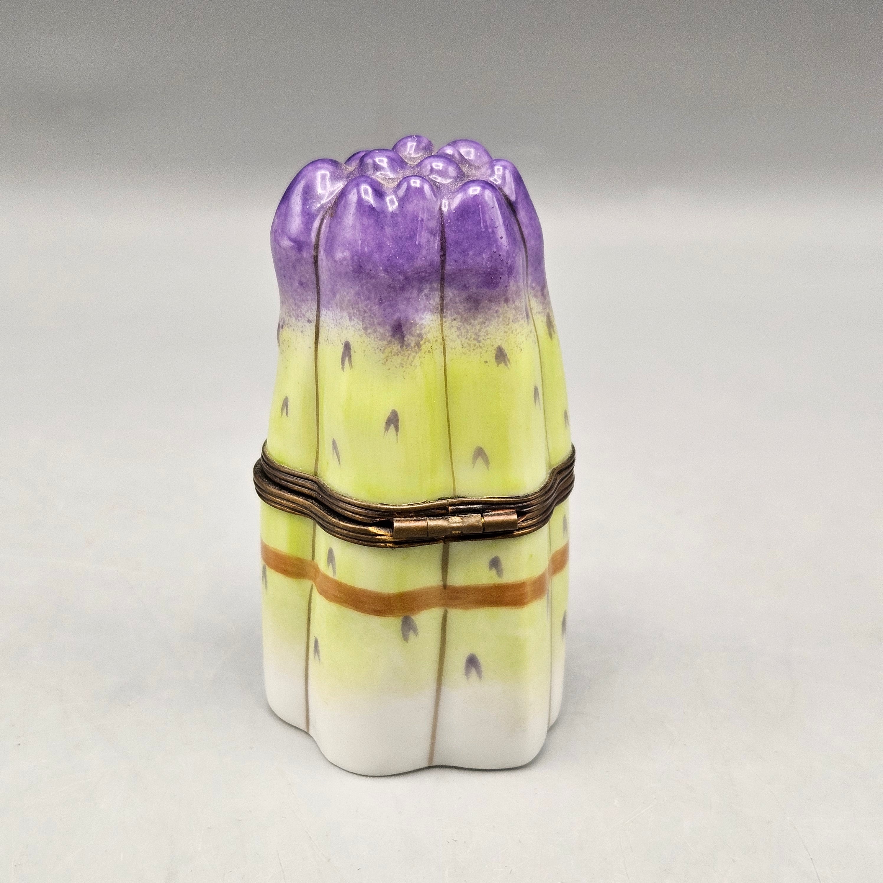 Vintage Porcelain Asparagus Trinket Box Decor Main F.A, Limoges France