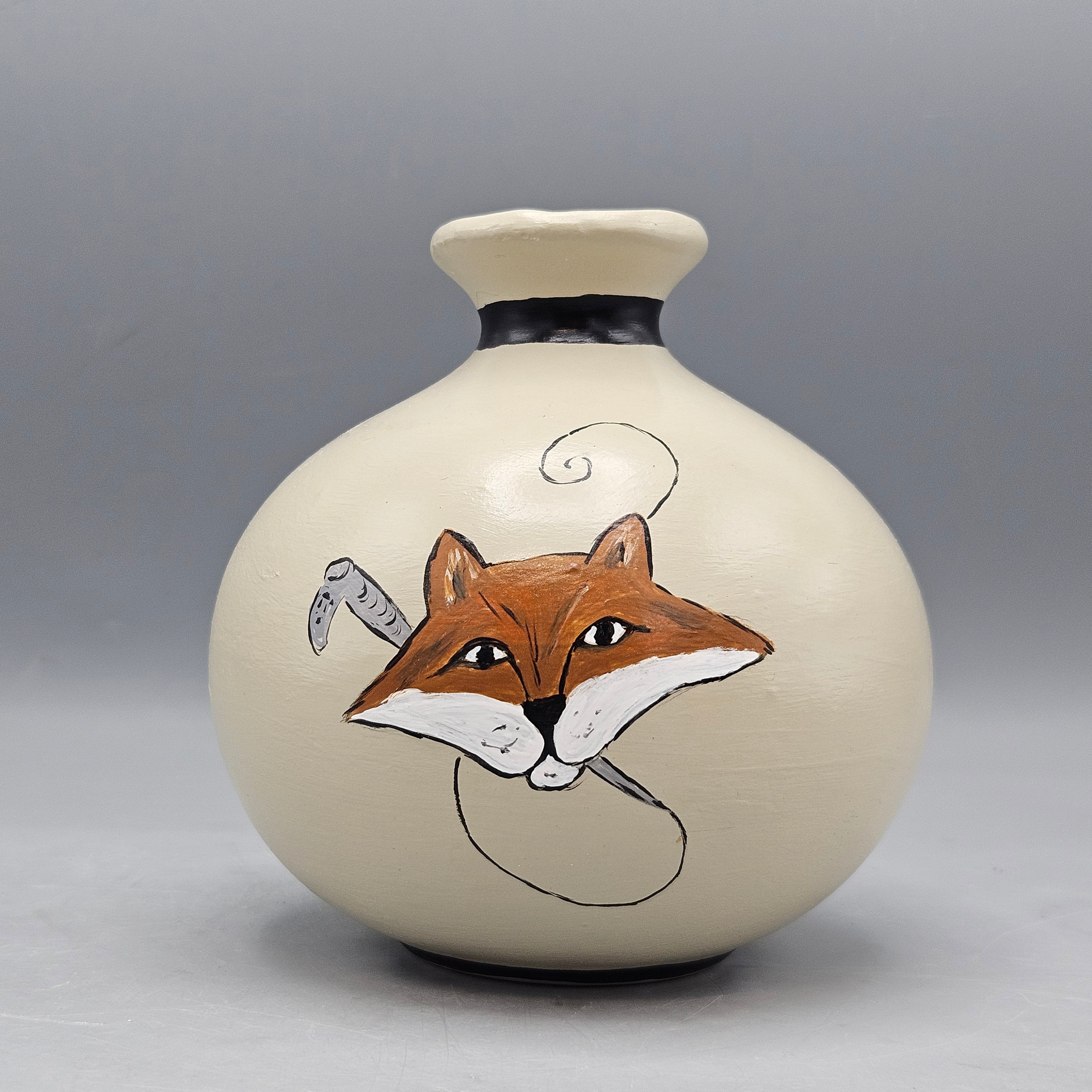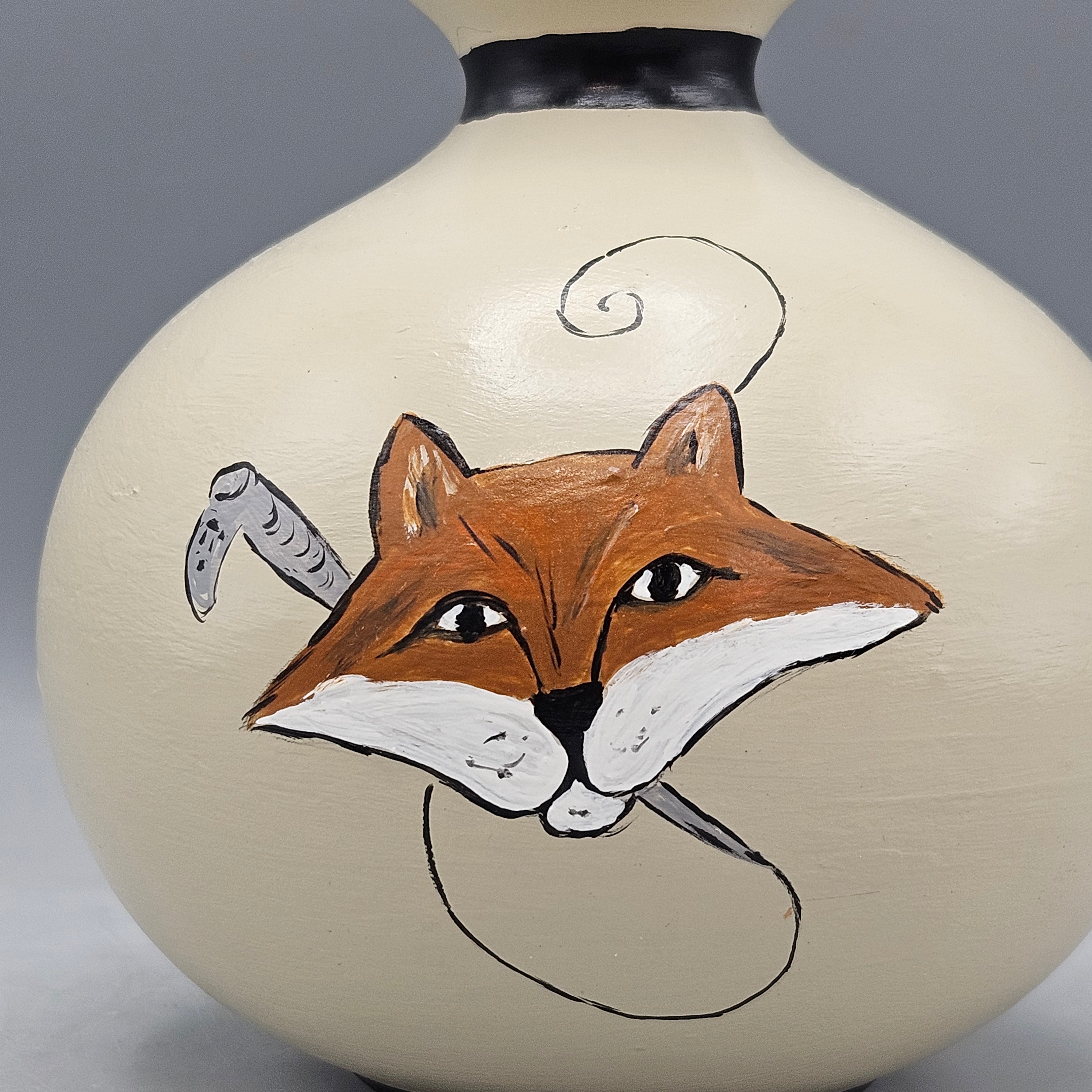 Hand-Painted Studio Pottery Vase with Fox Head and Whip Signed Donovan