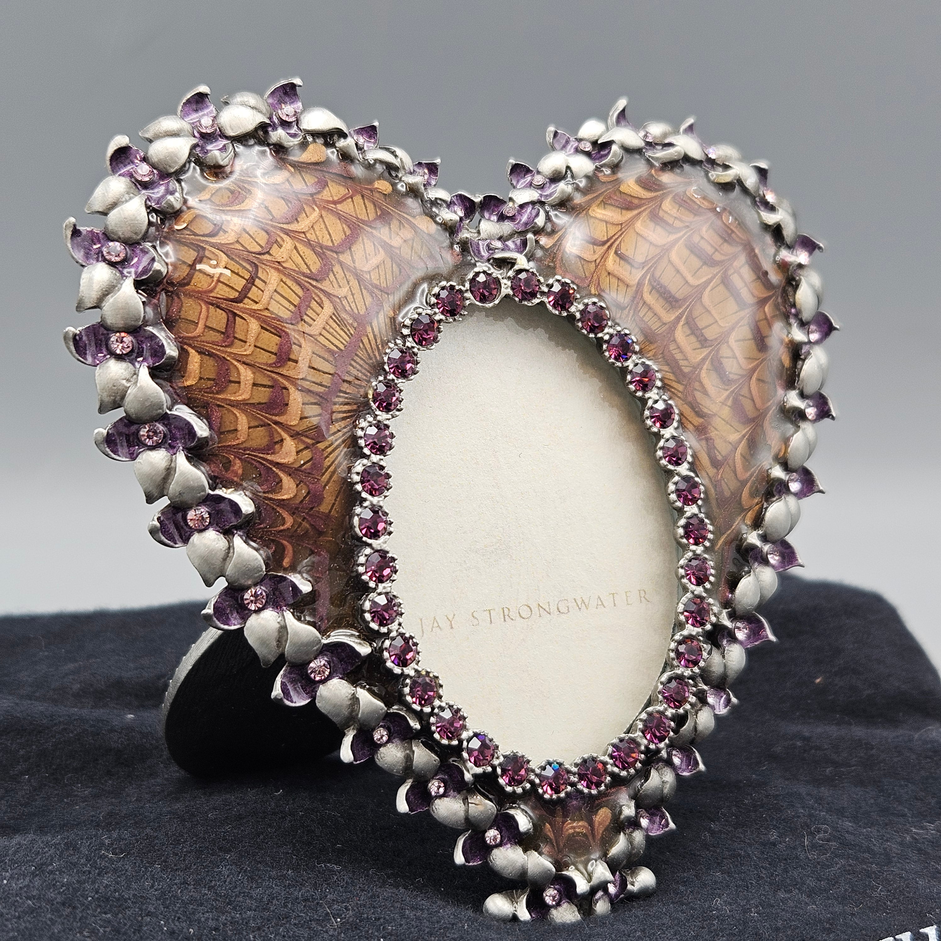 Jay Strongwater Purple Enamel and Crystal Heart Picture Frame