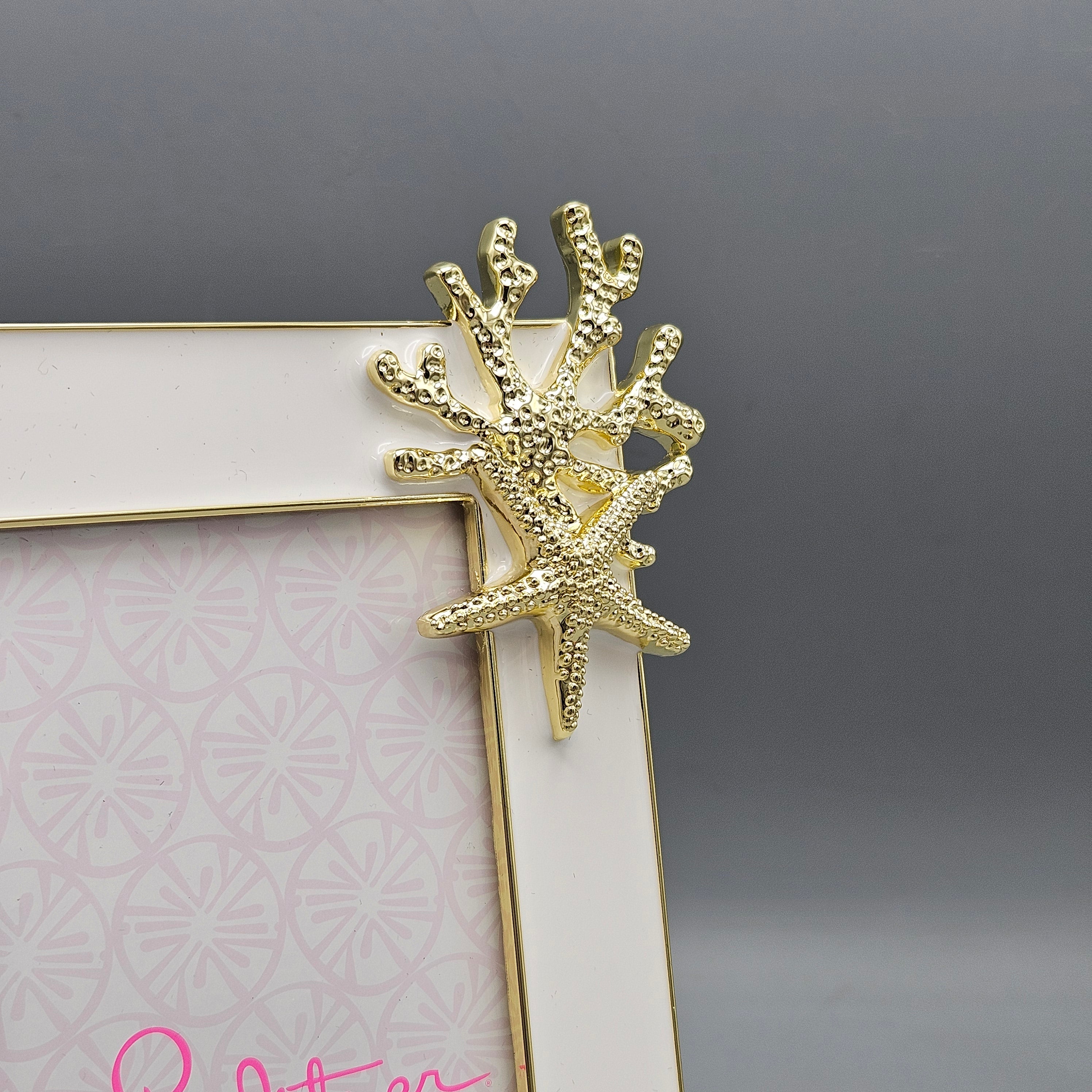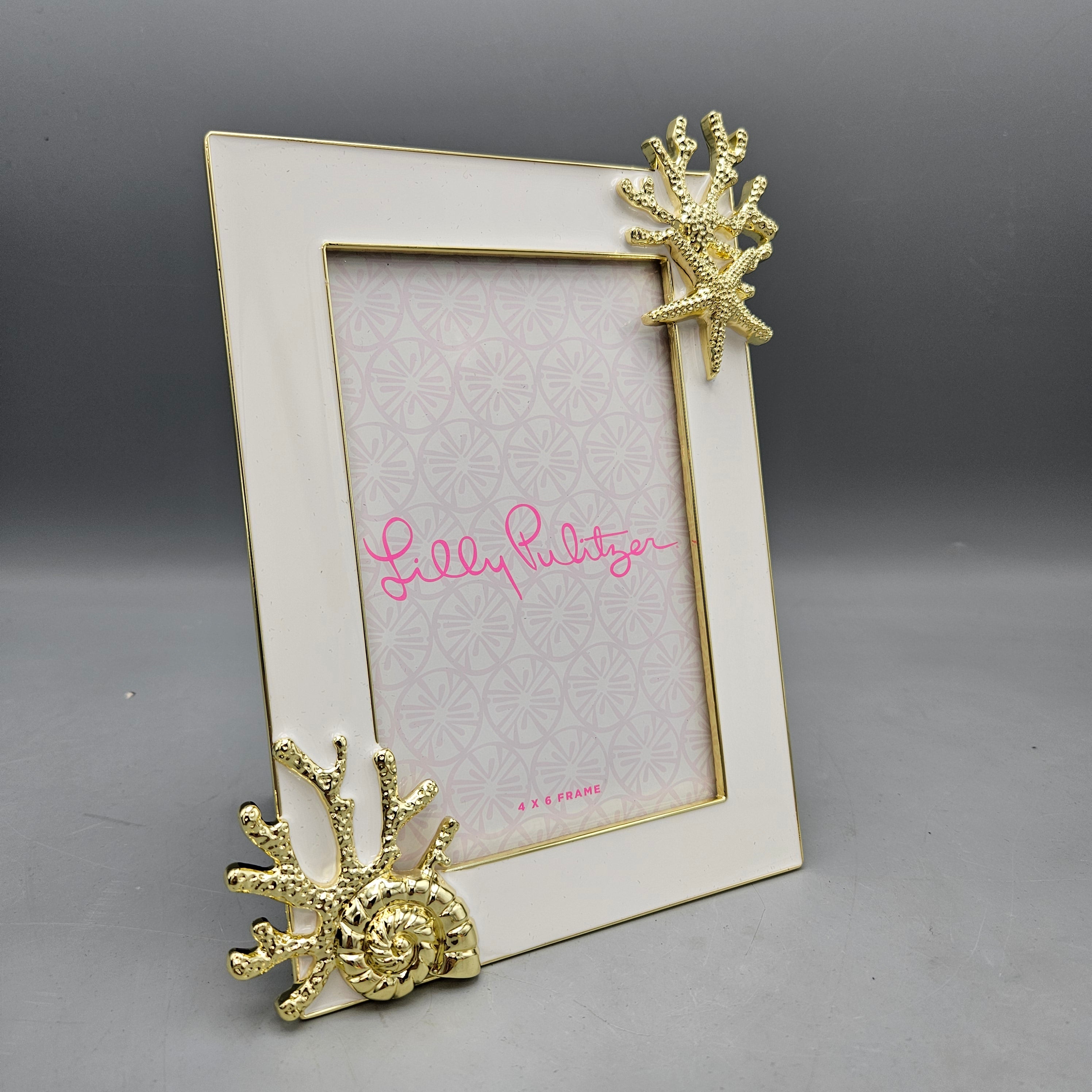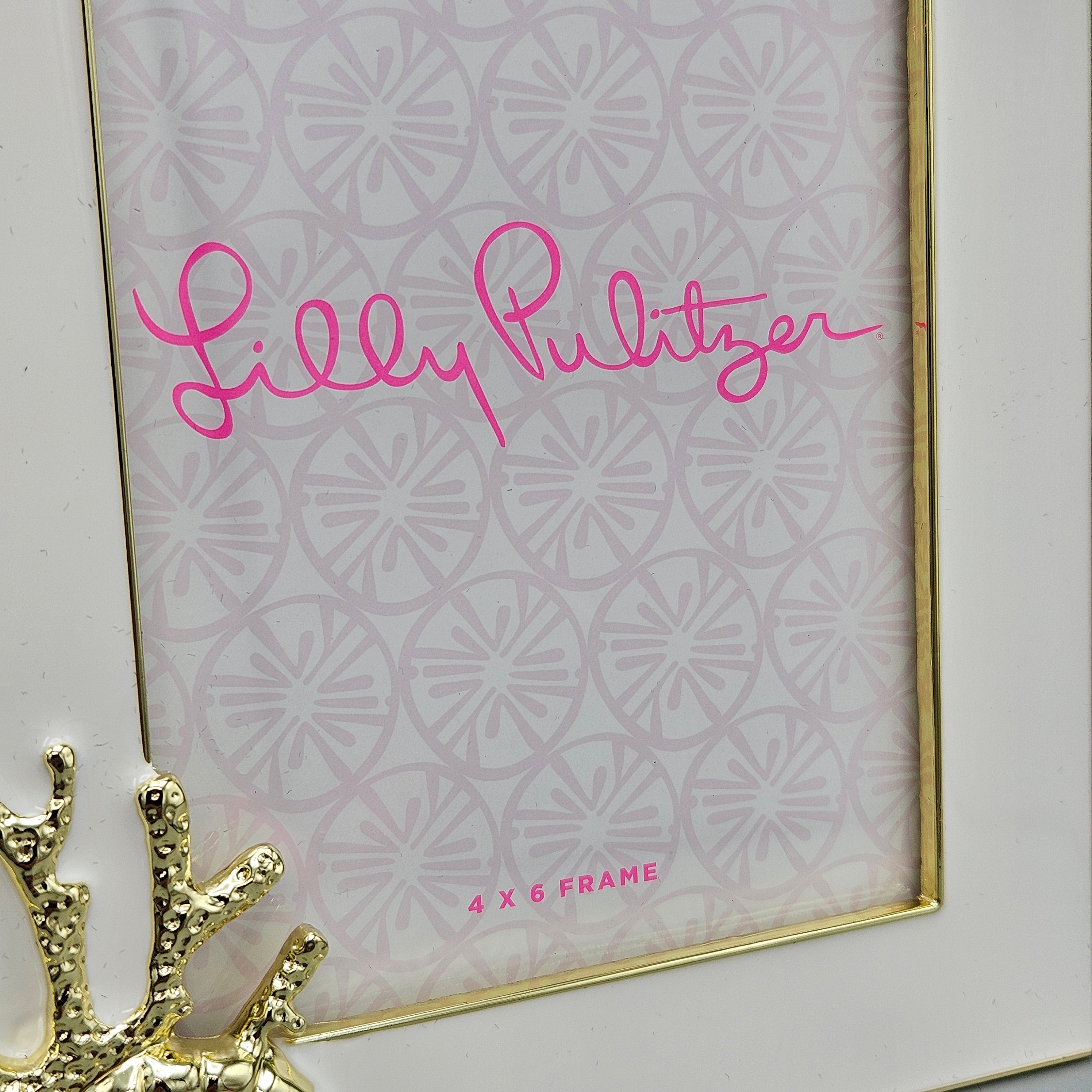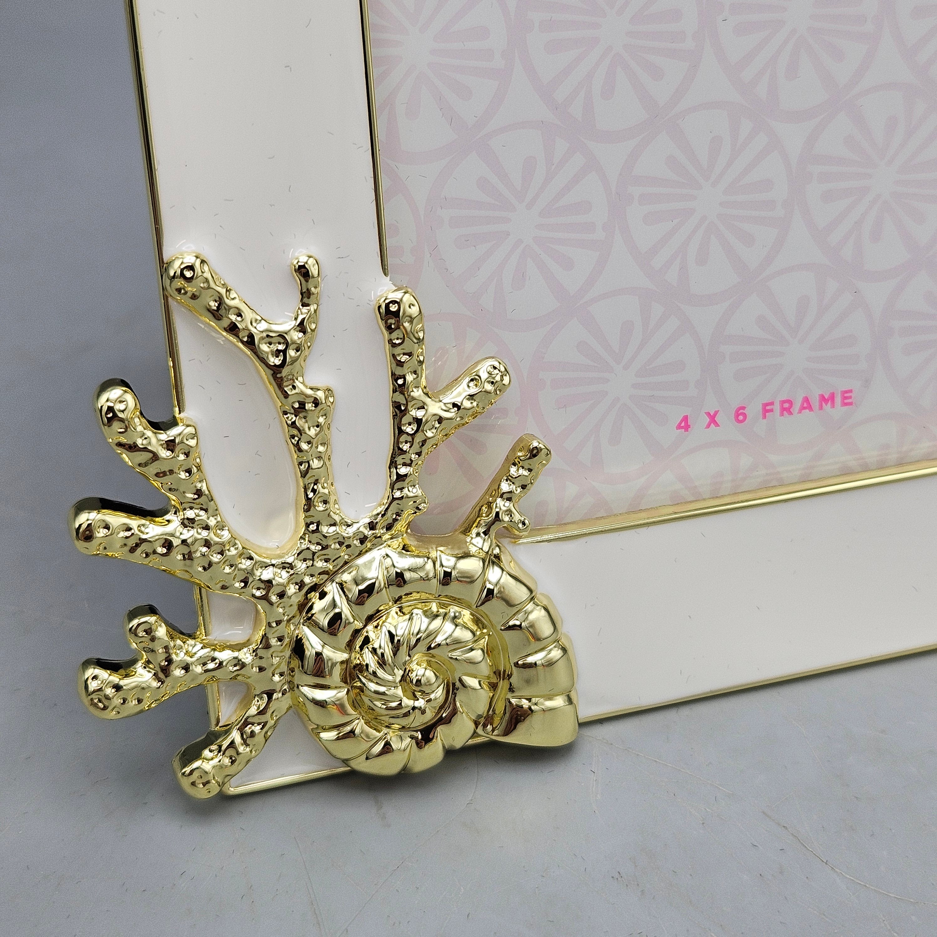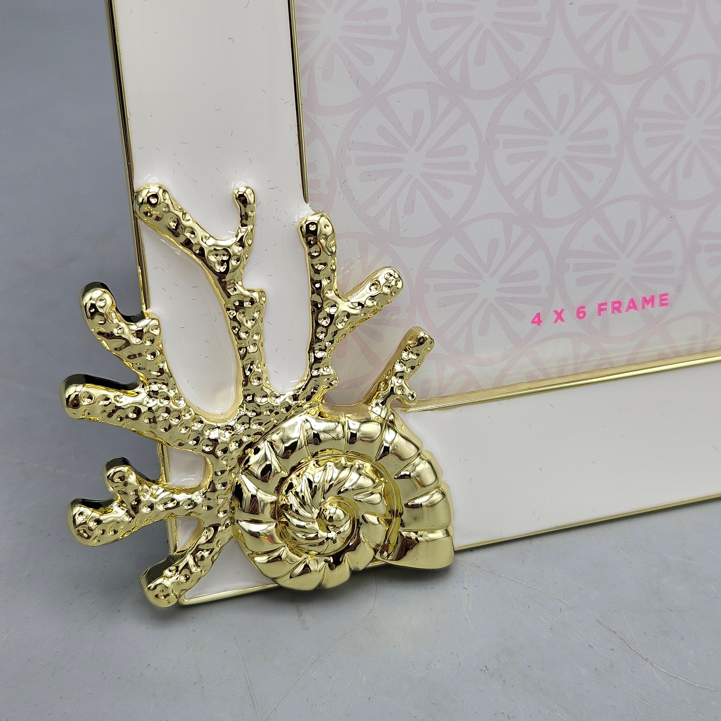 Lilly Pulitzer Gold and White Picture Frame with Coral Starfish and Shells
