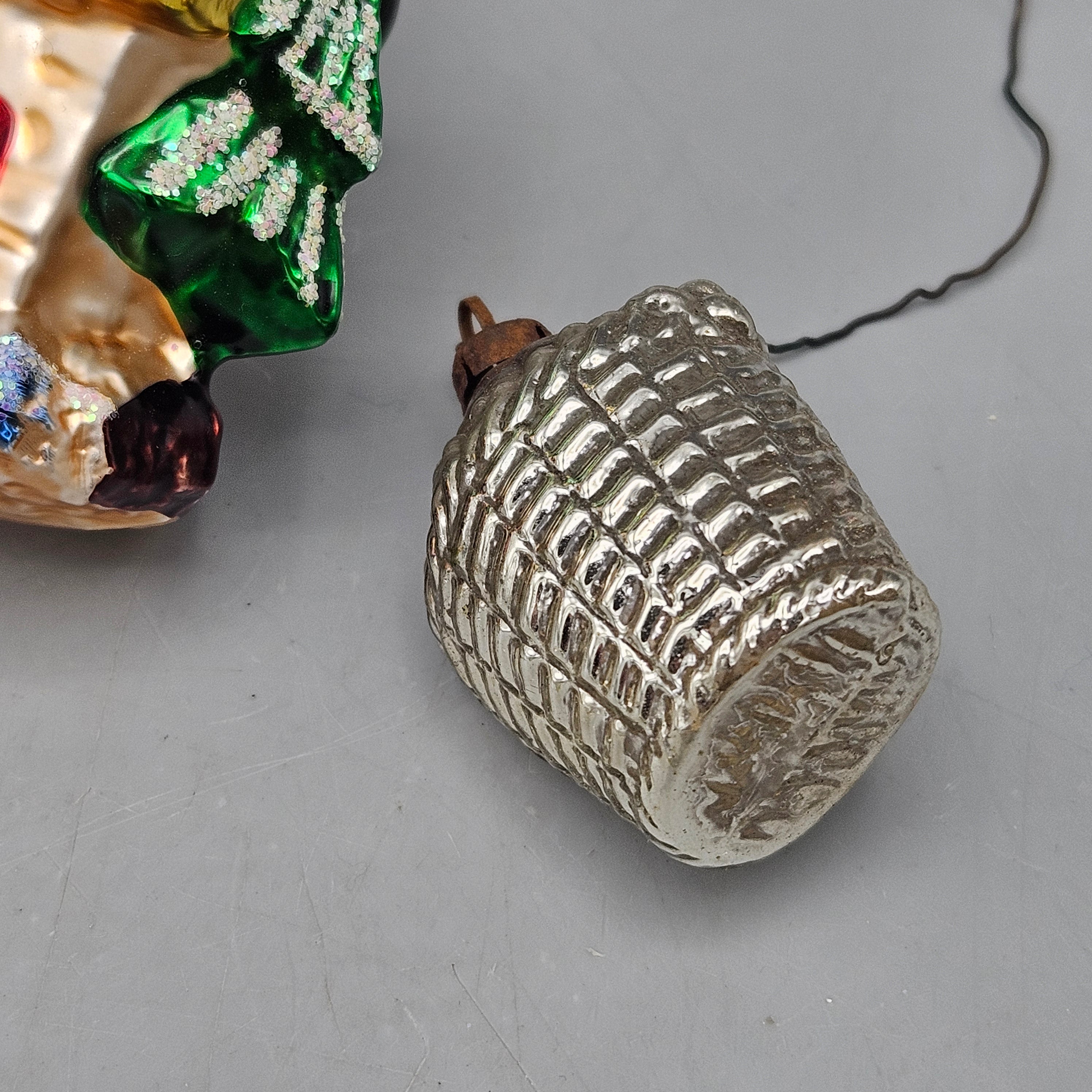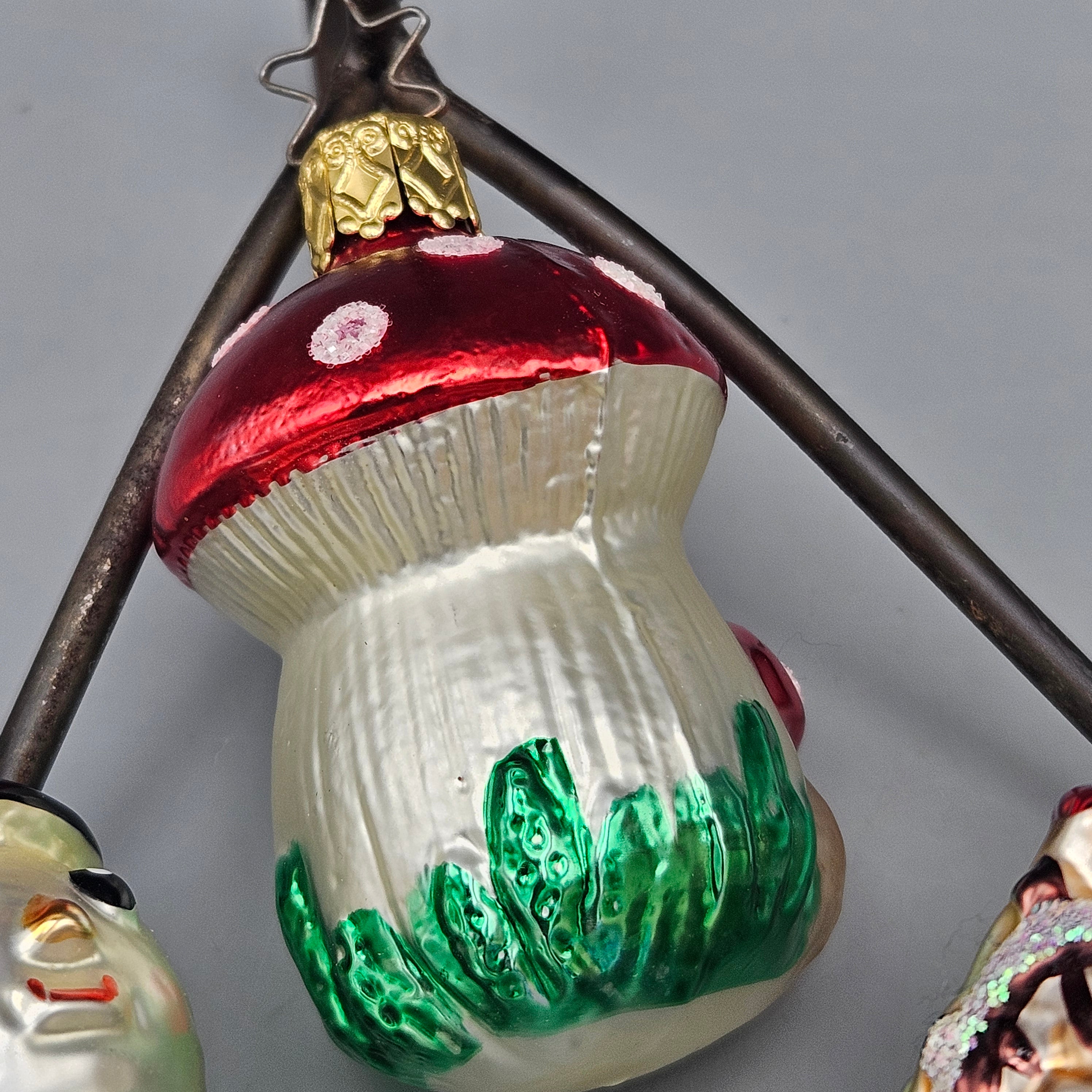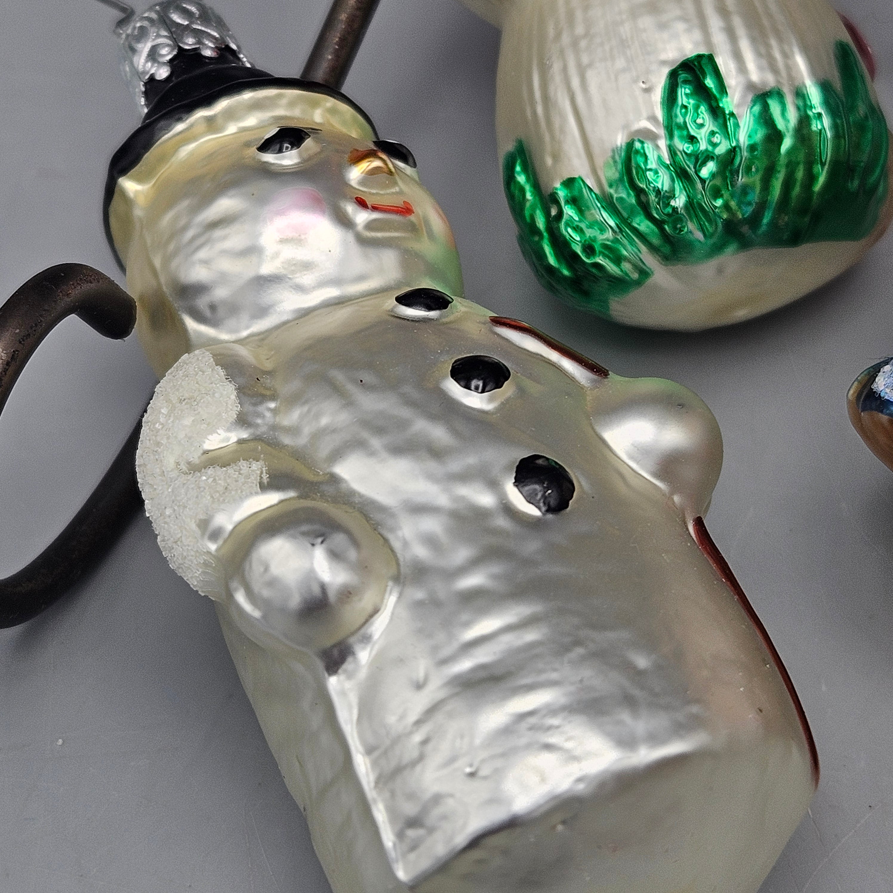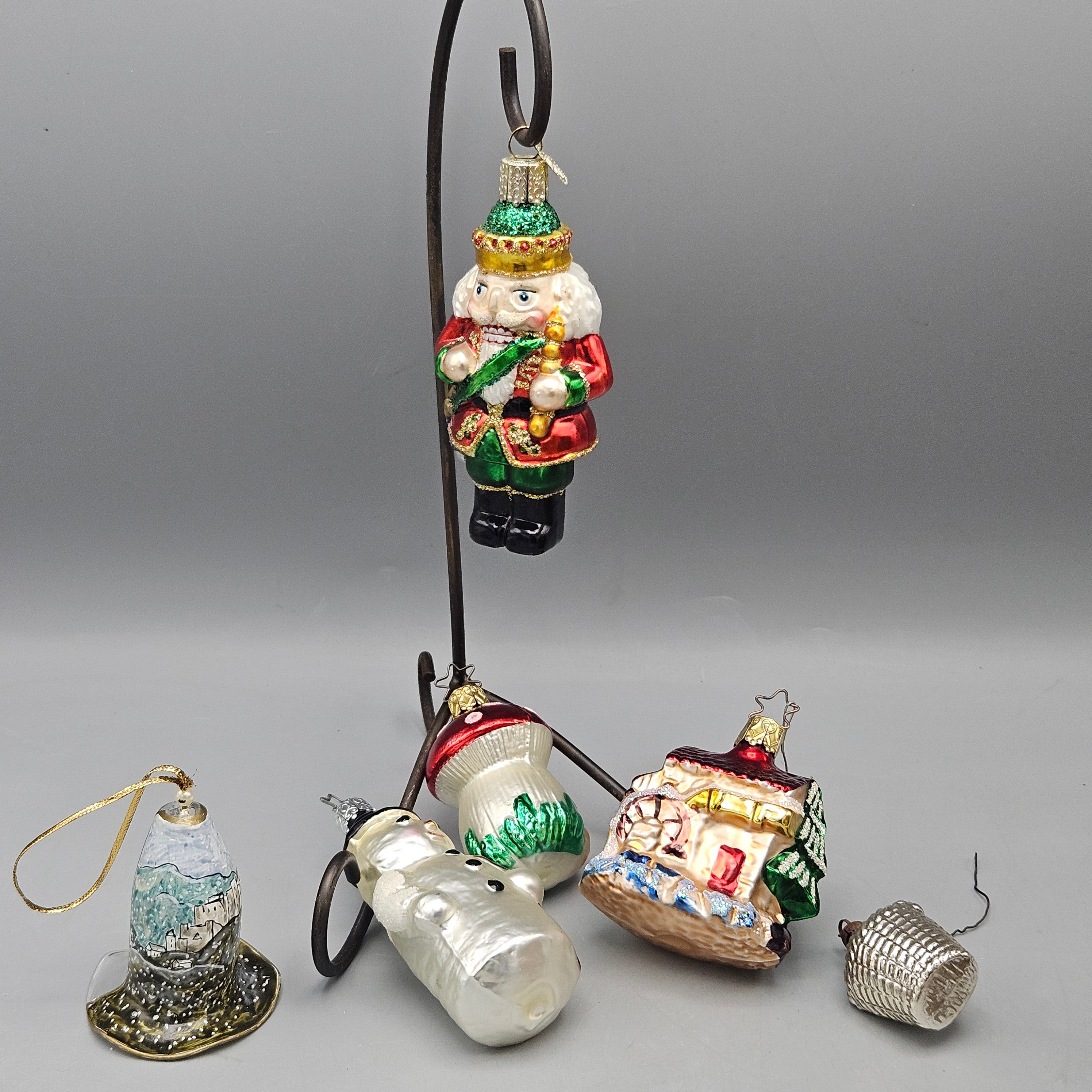 Lot of Blown Glass Christmas Ornaments including Nutcracker, Mushroom, House, Snowman