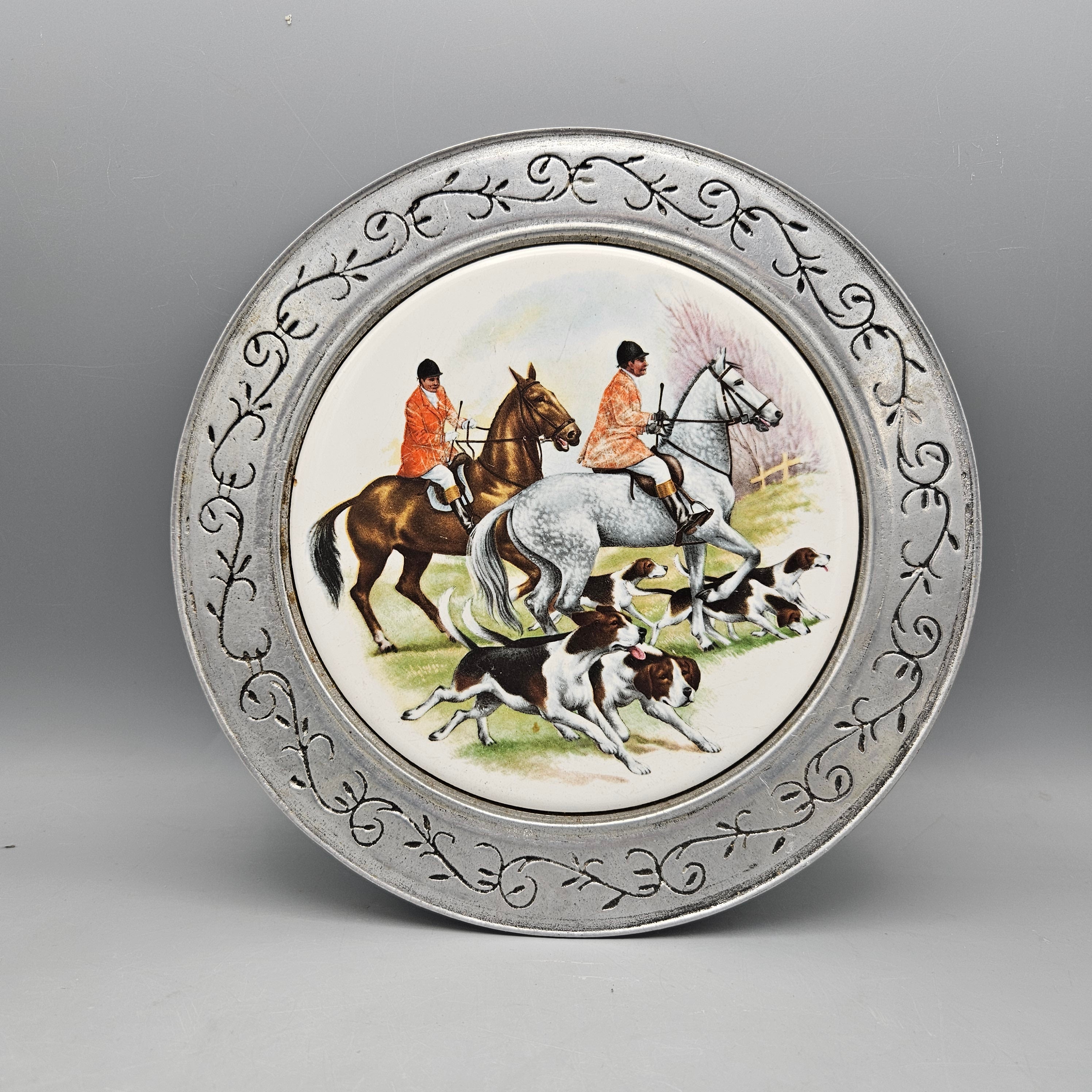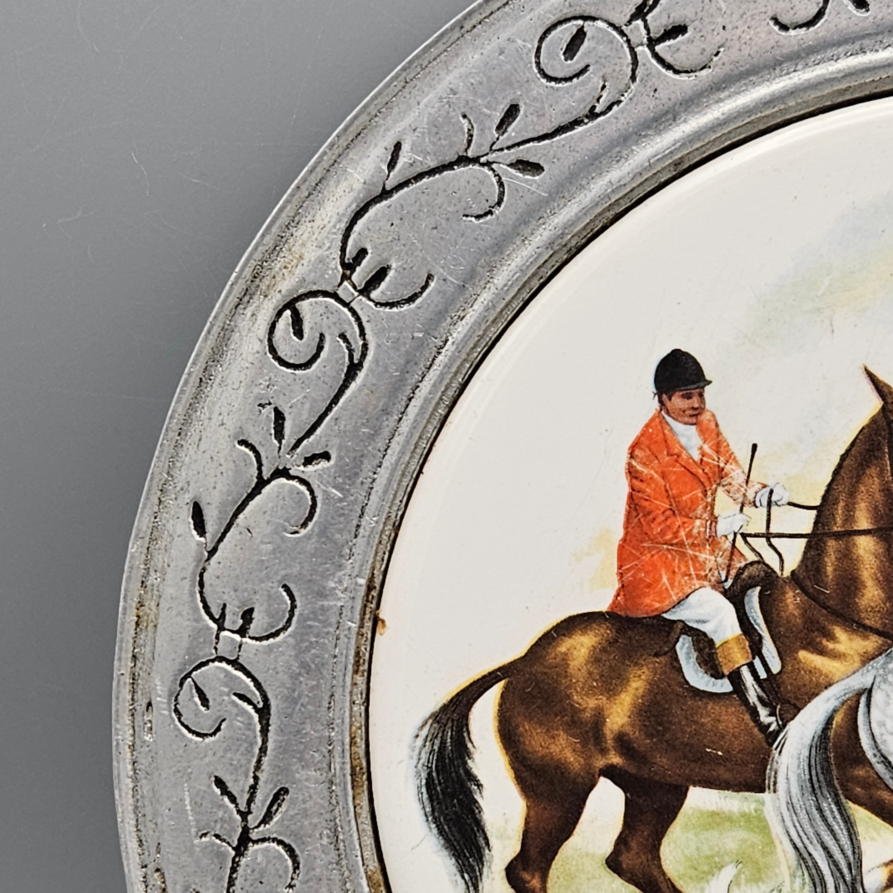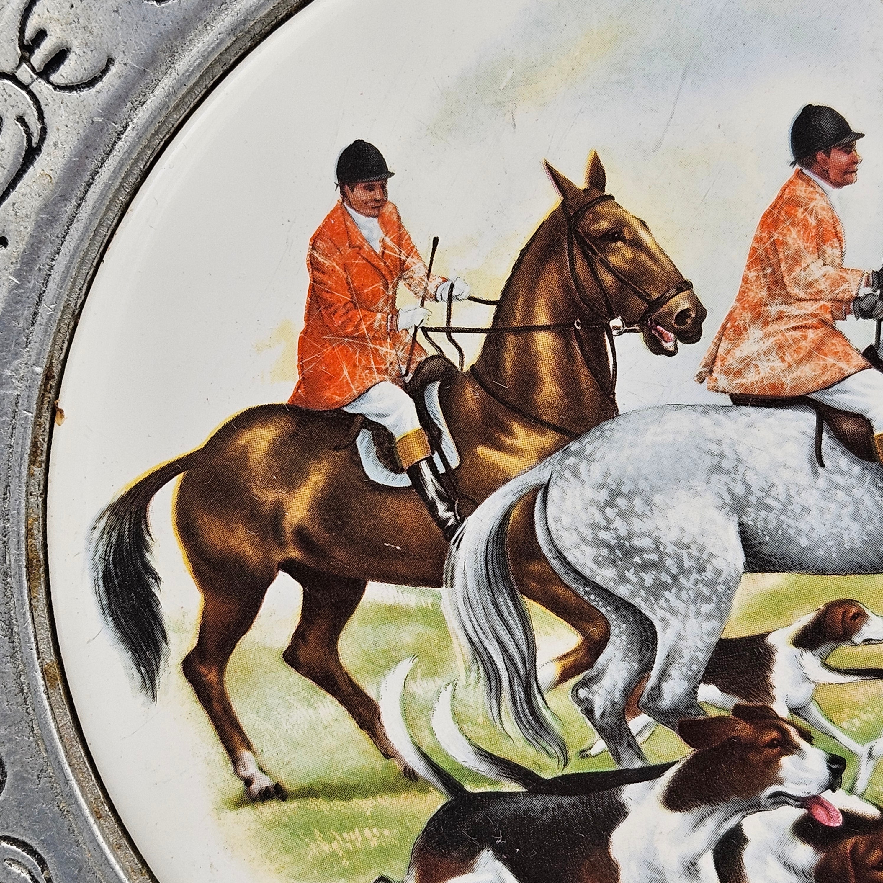 Metal and Porcelain Cheese Board with Hunt Scene