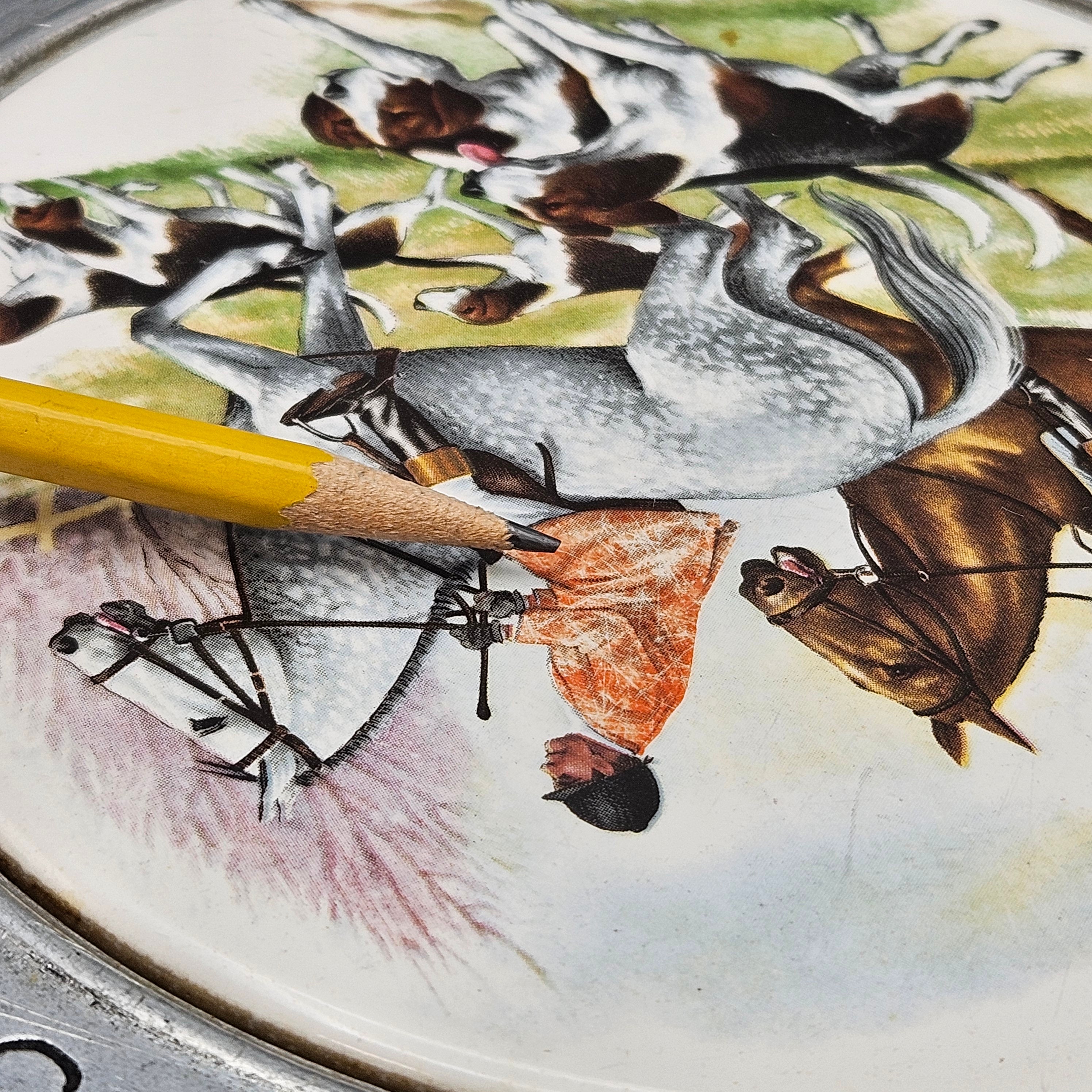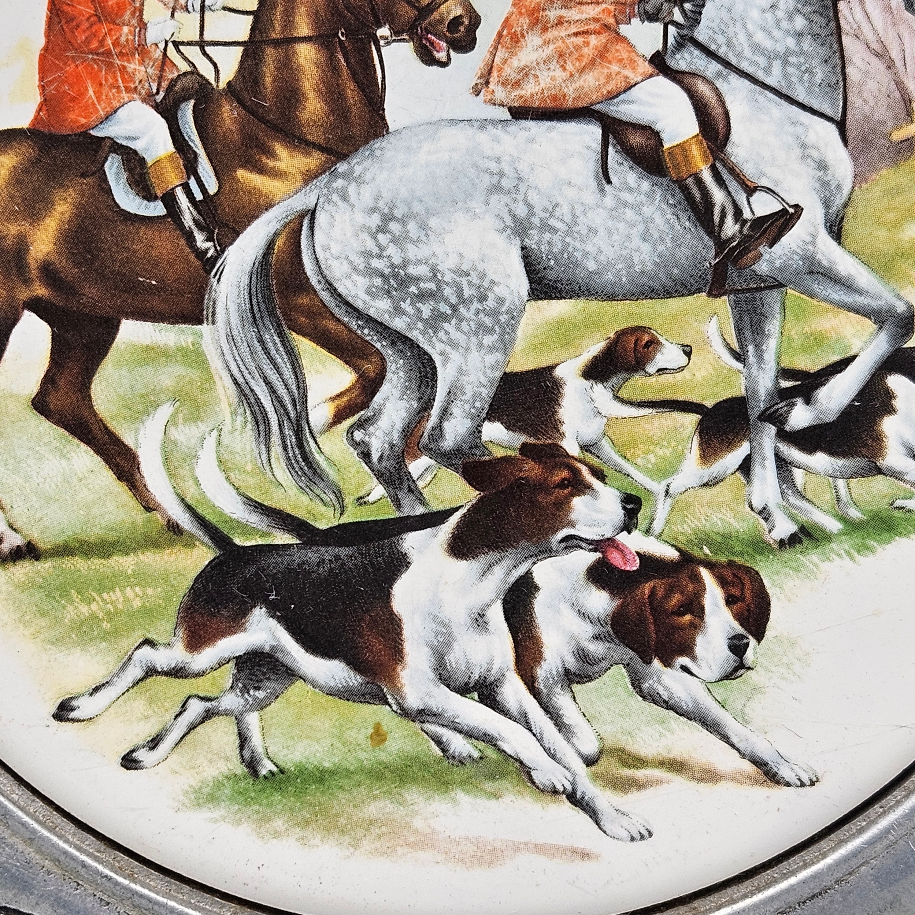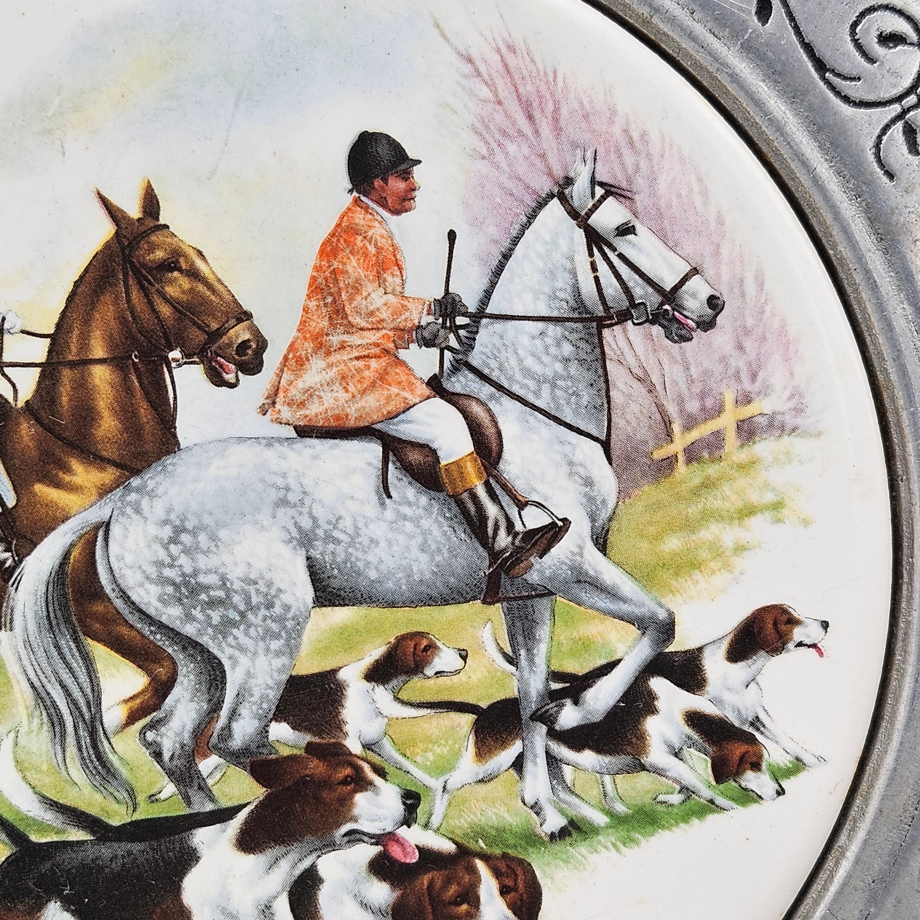 Metal and Porcelain Cheese Board with Hunt Scene