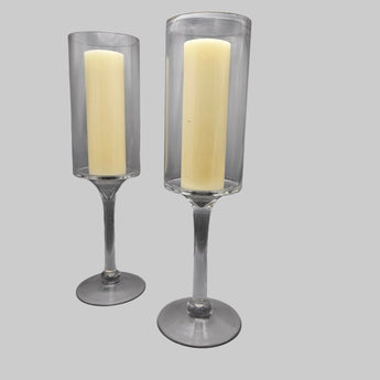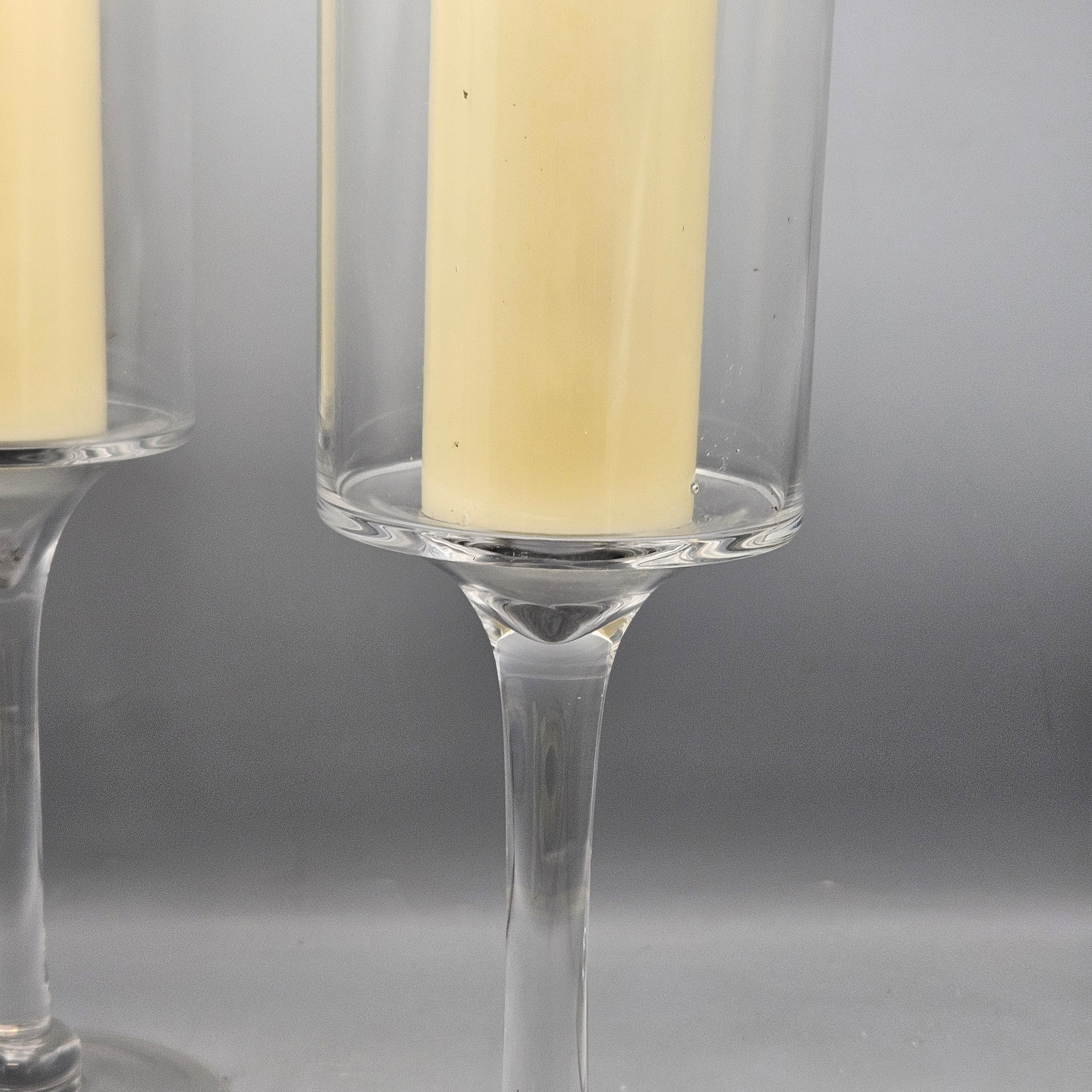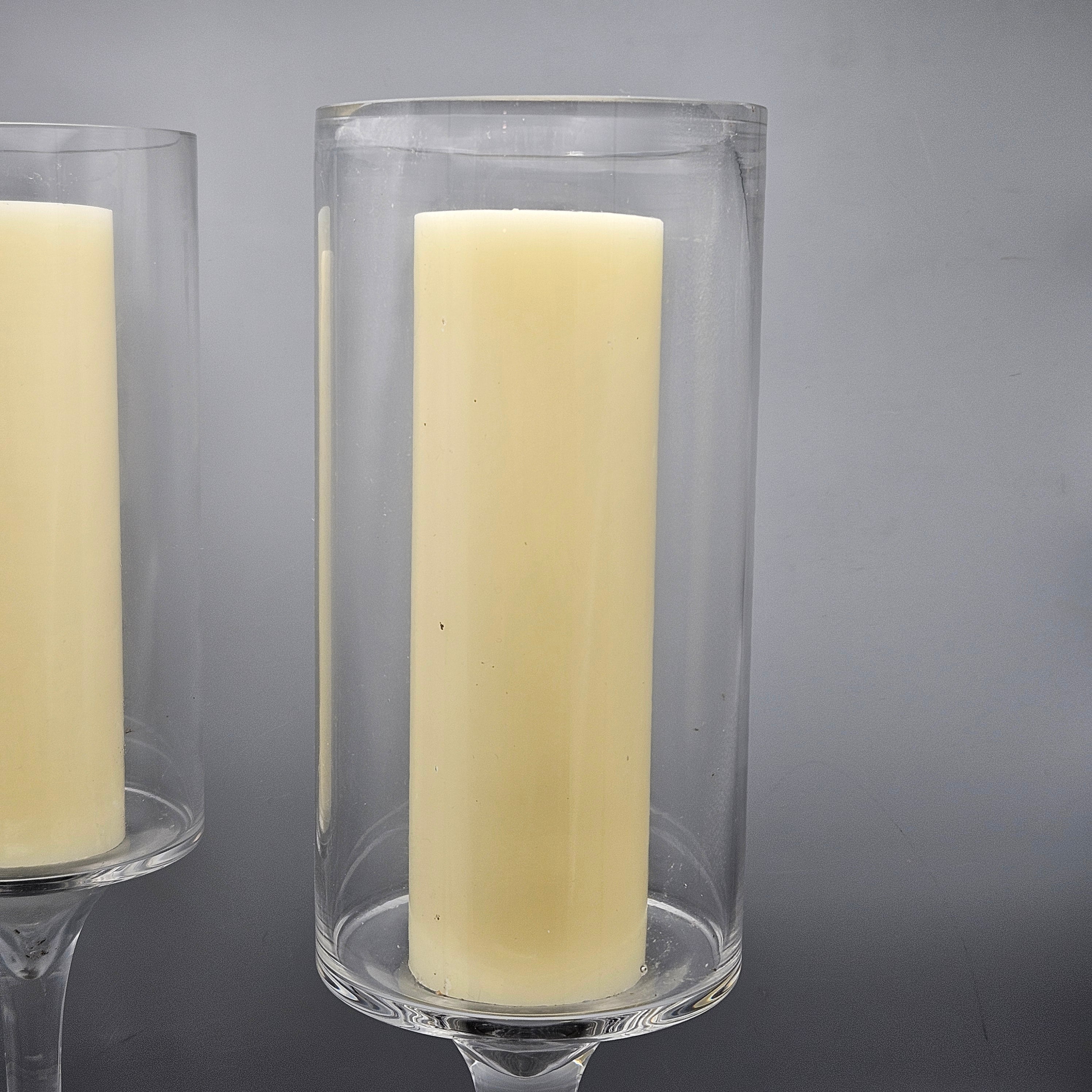 Pair Blown Glass Pillar Candle Holder Hurricanes