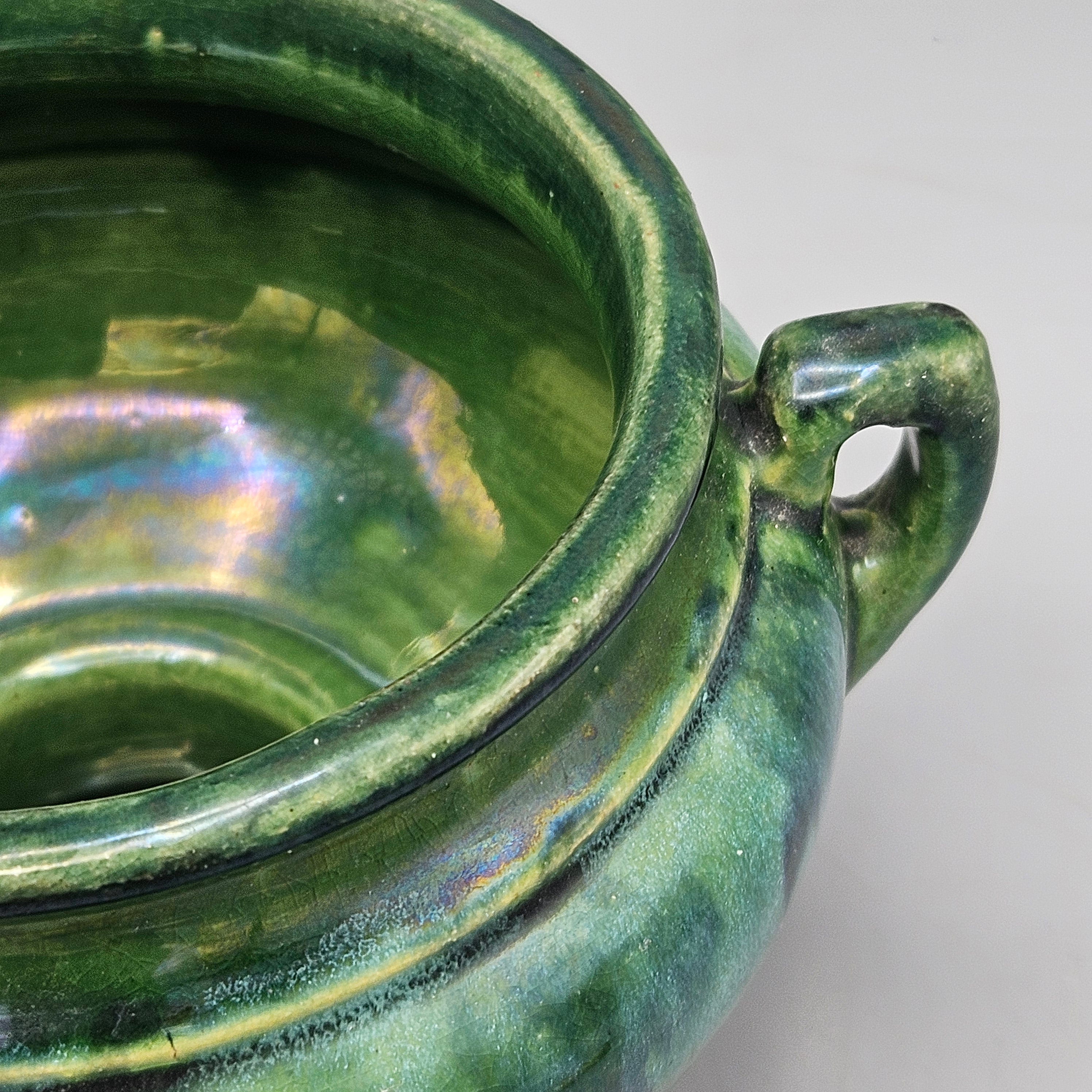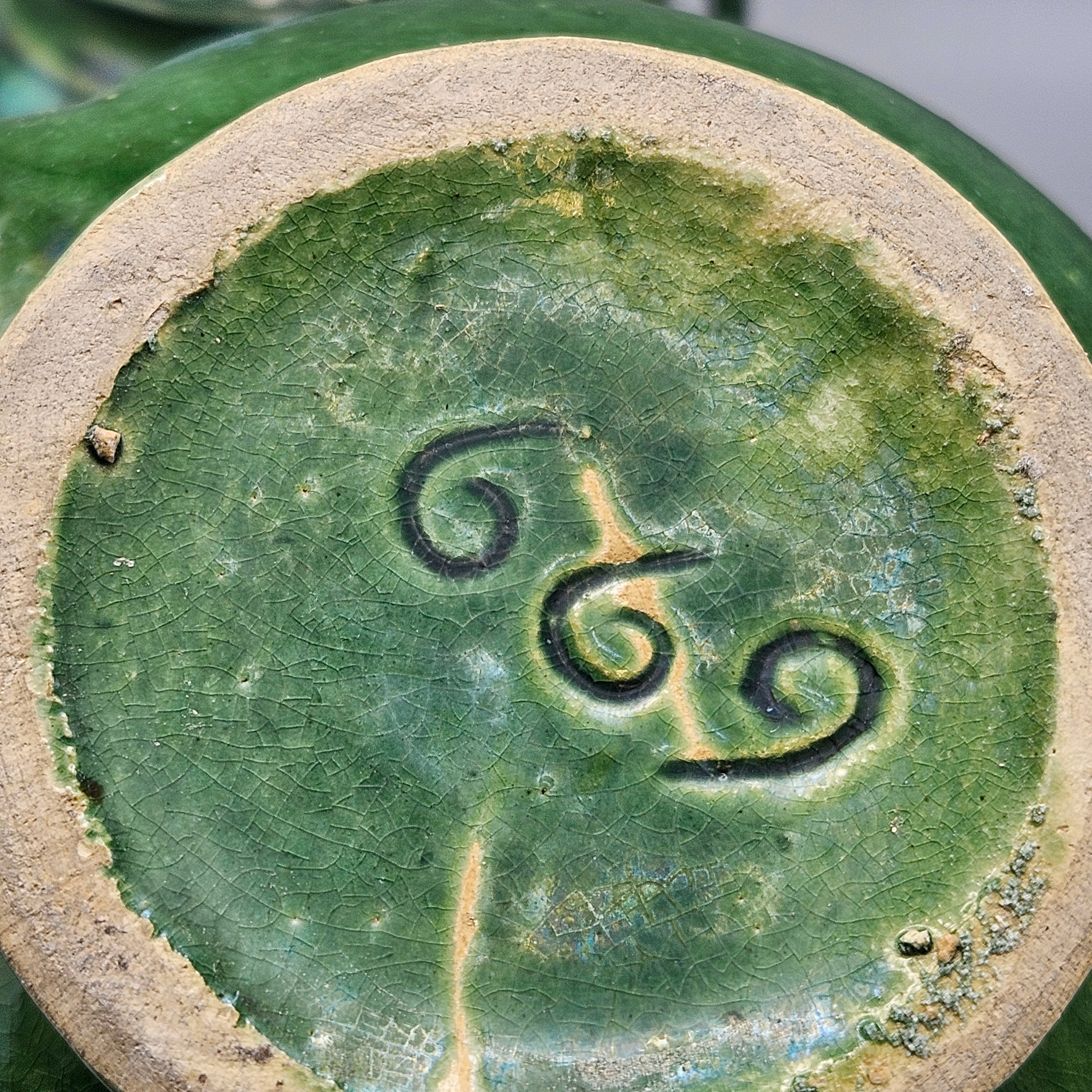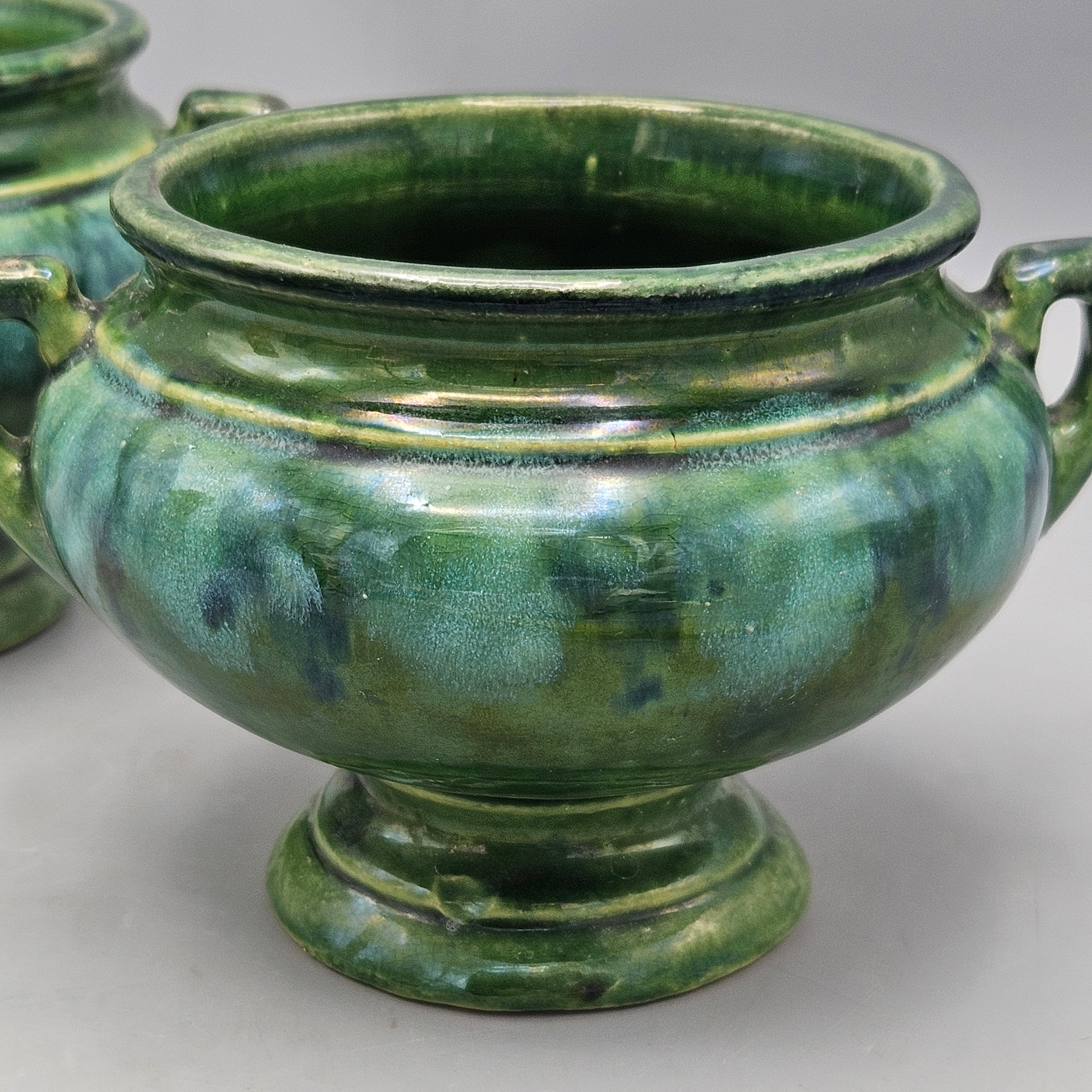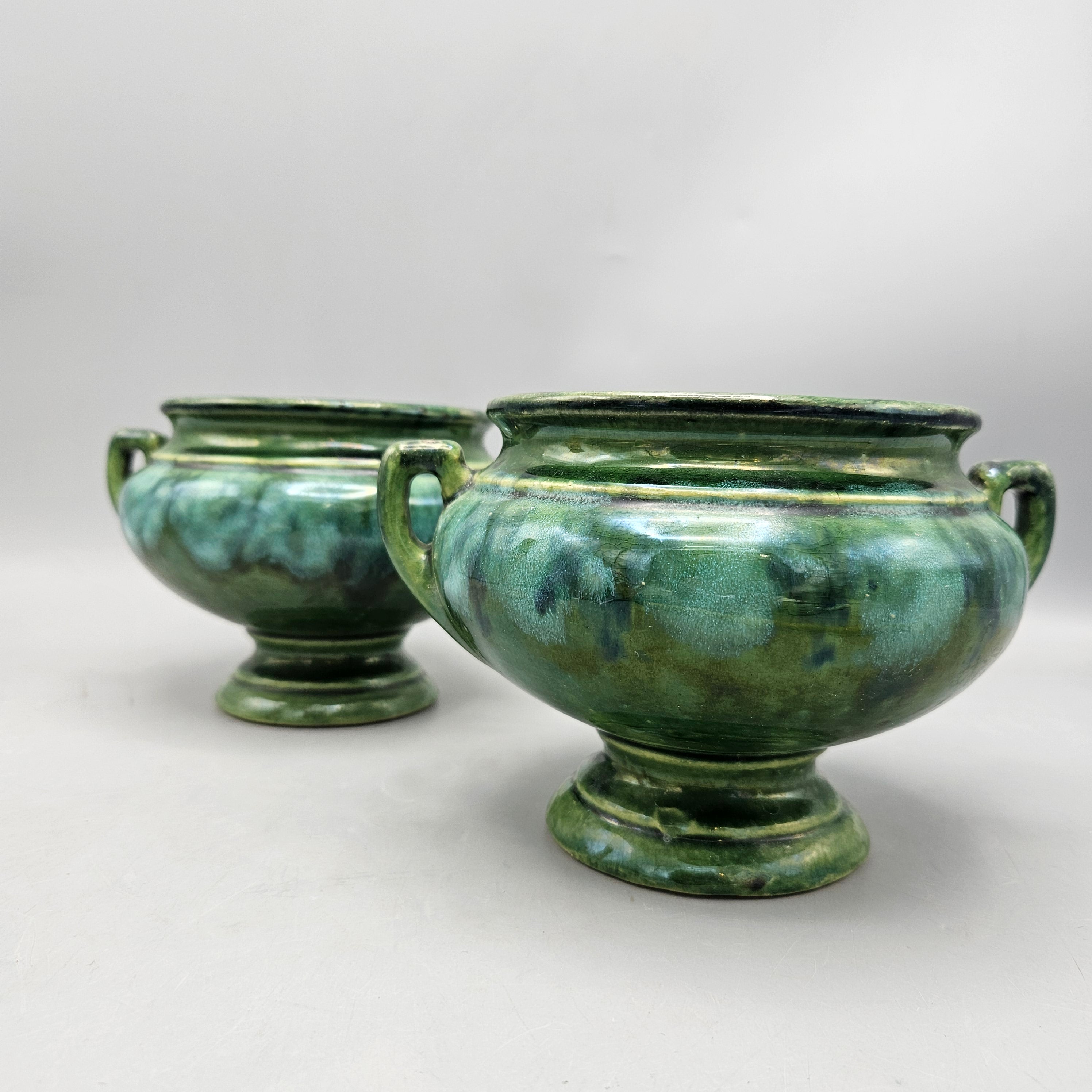 Pair Brush Pottery Green Onyx Cache Pots
