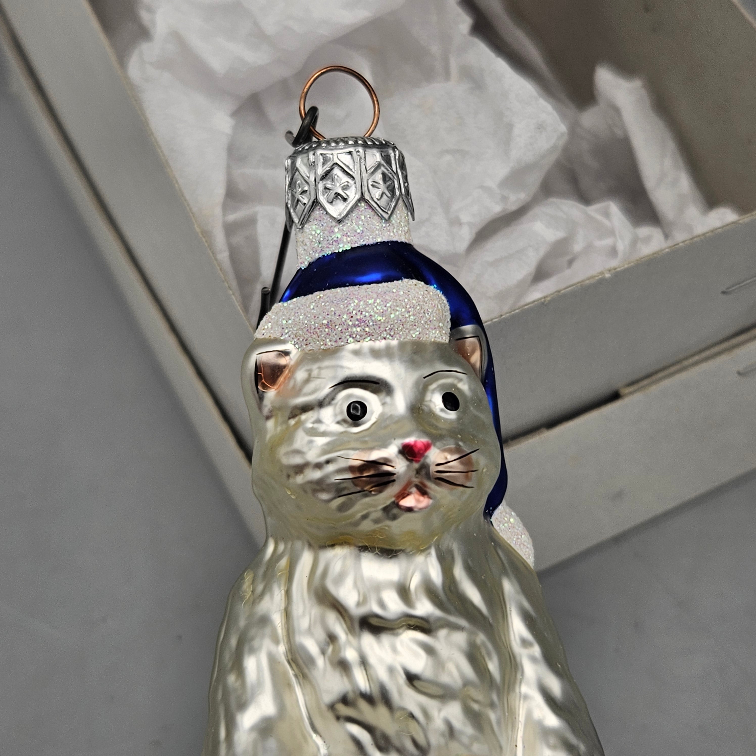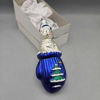 Patricia Breen Designs "Kitten in a Mitten" Blown Glass Christmas Ornament.