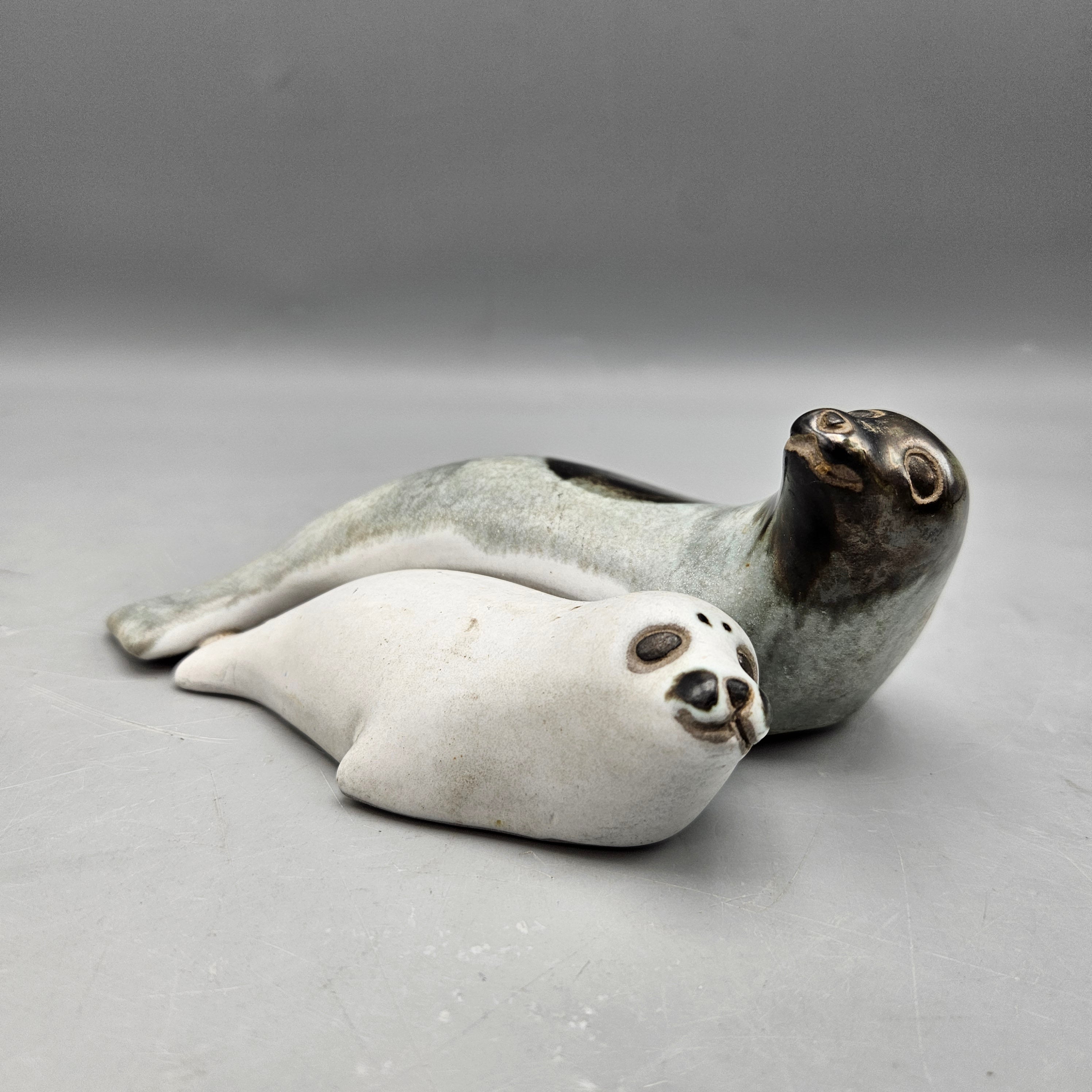 Pod of Edgecomb Pottery Maine Studio Art Figurine Harp Seals Mother and Baby Pup