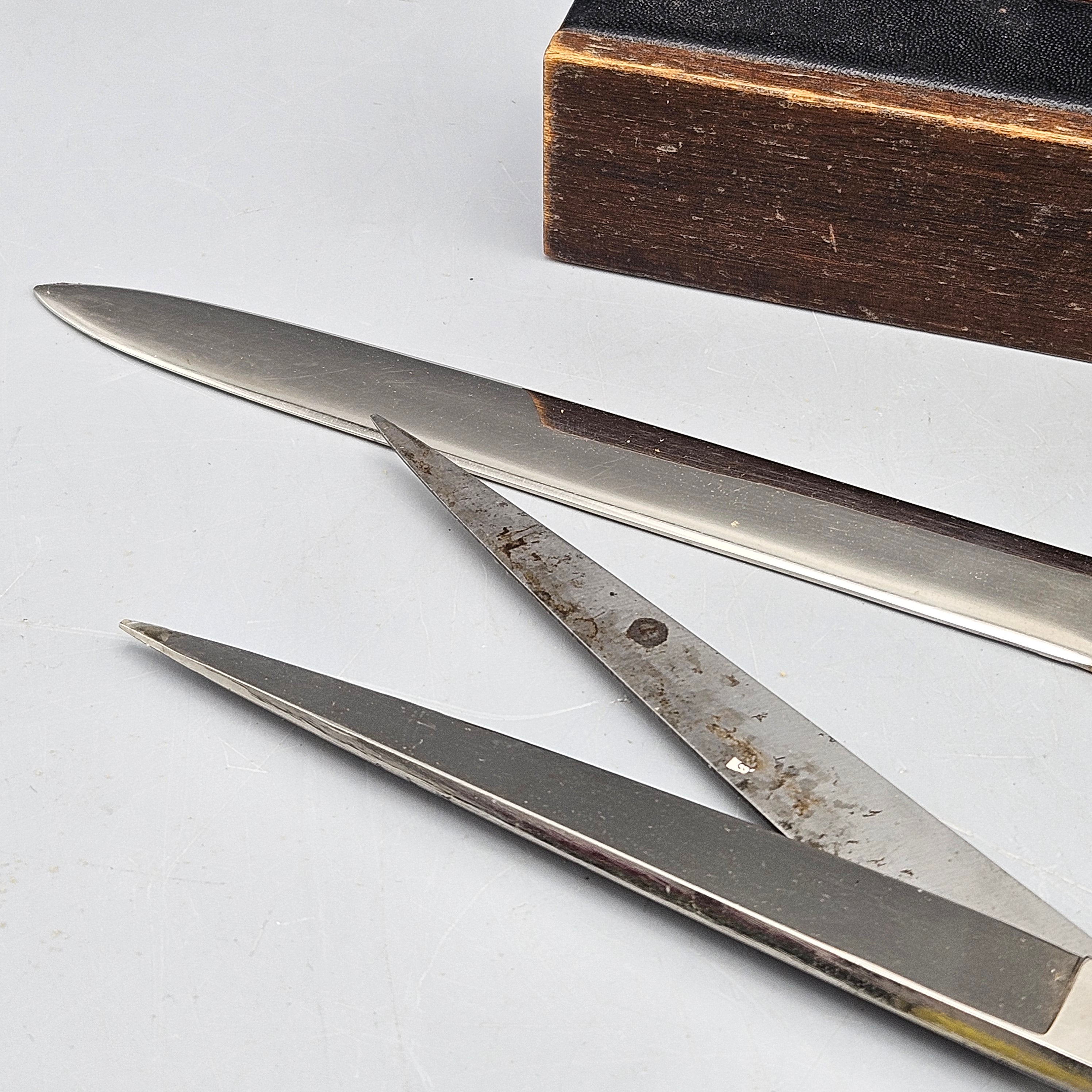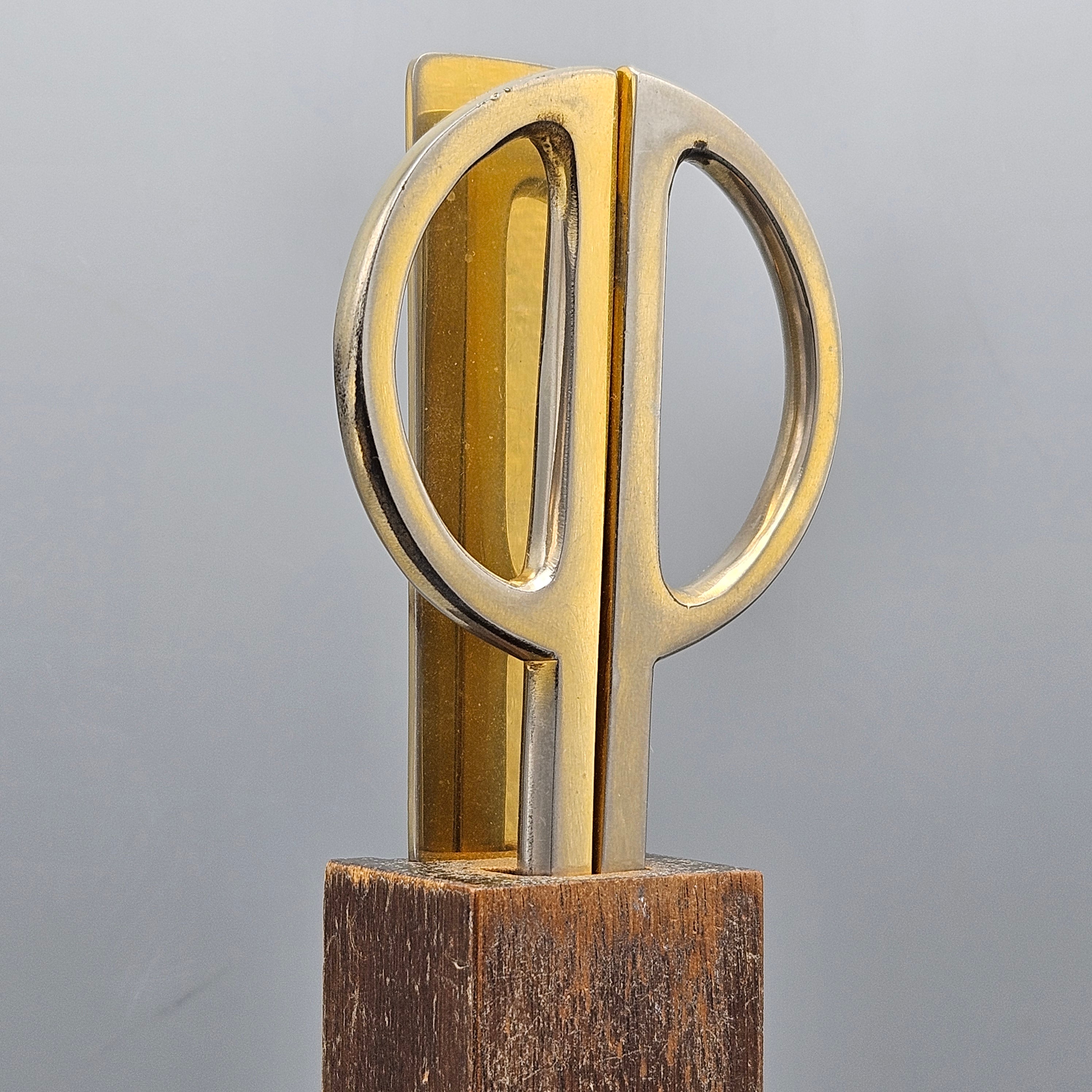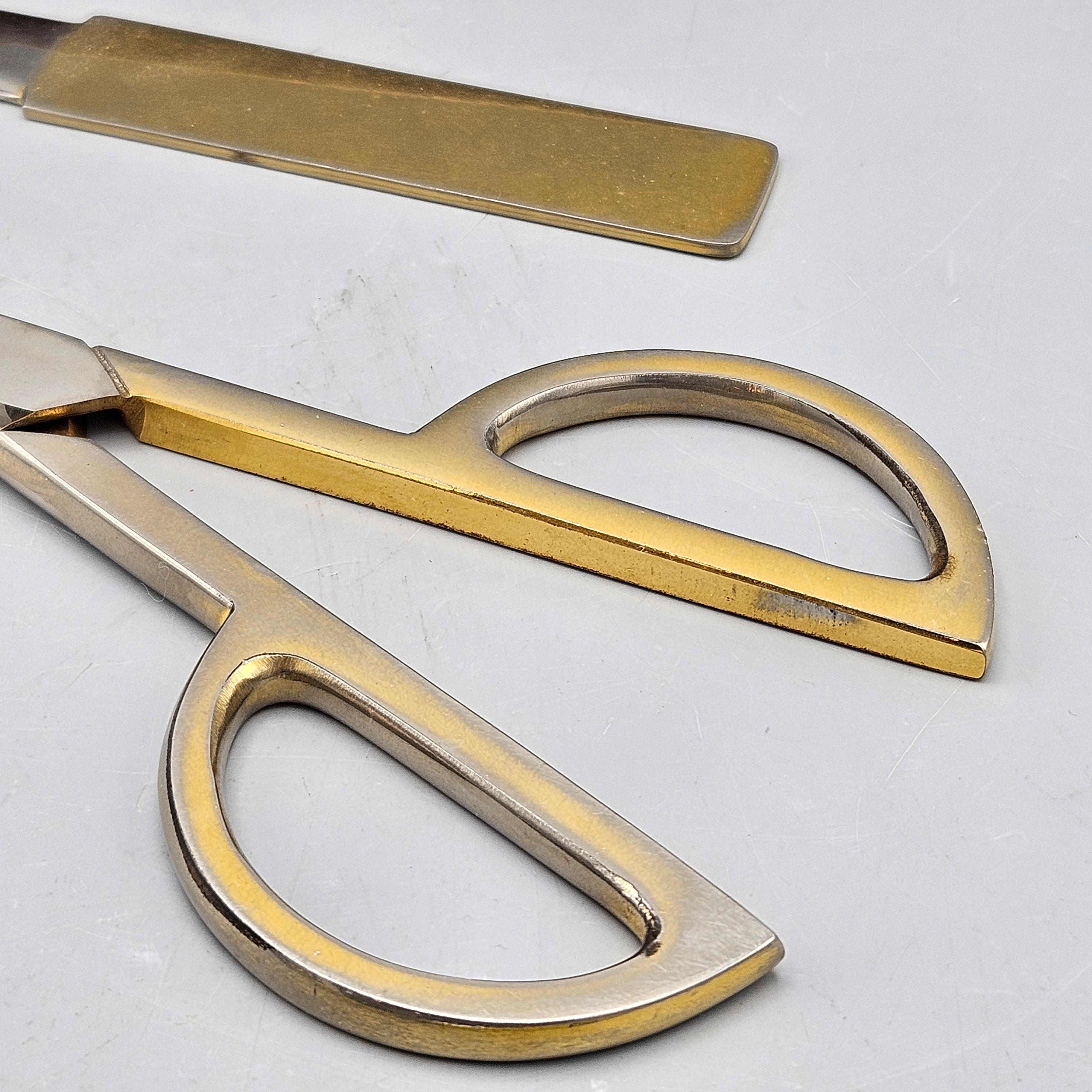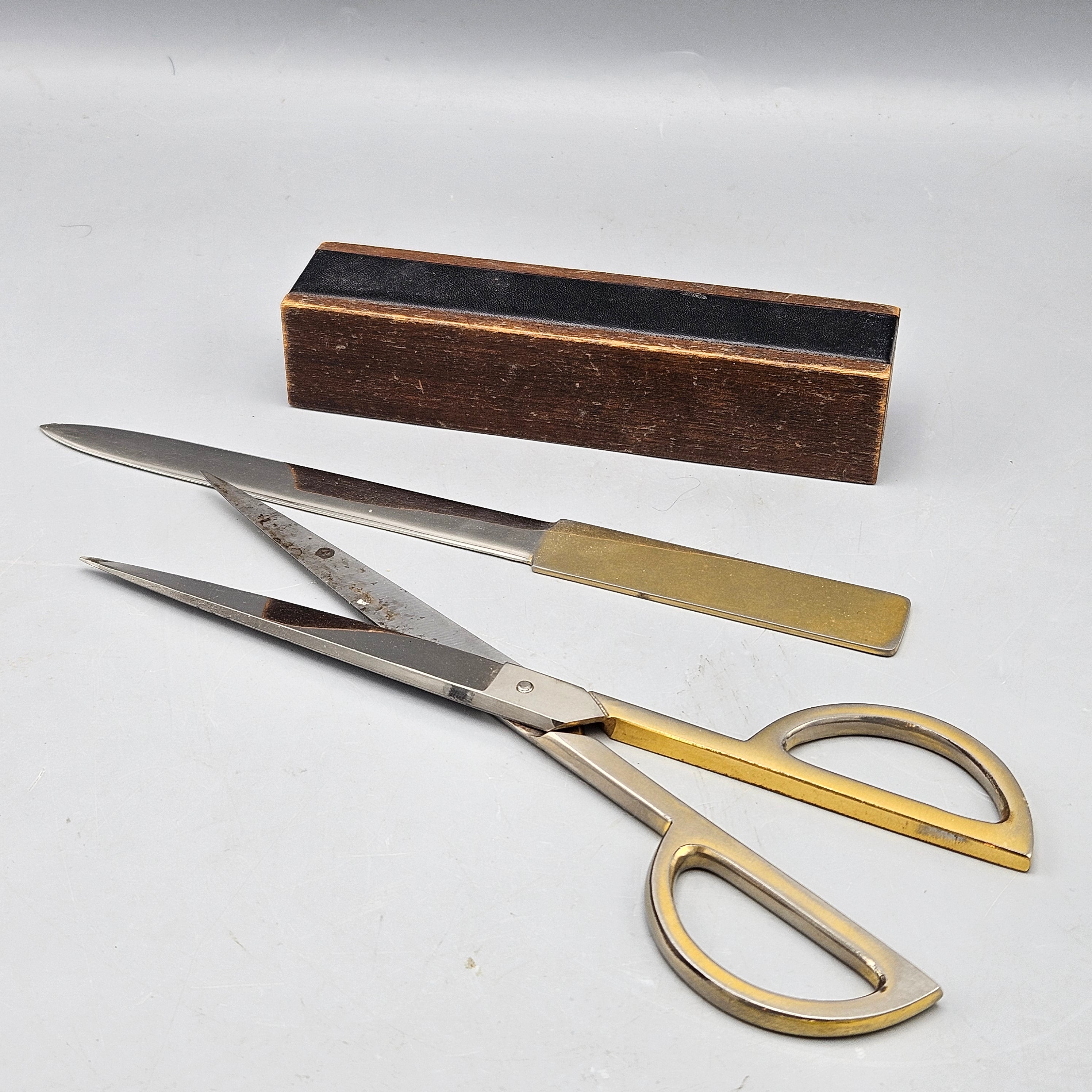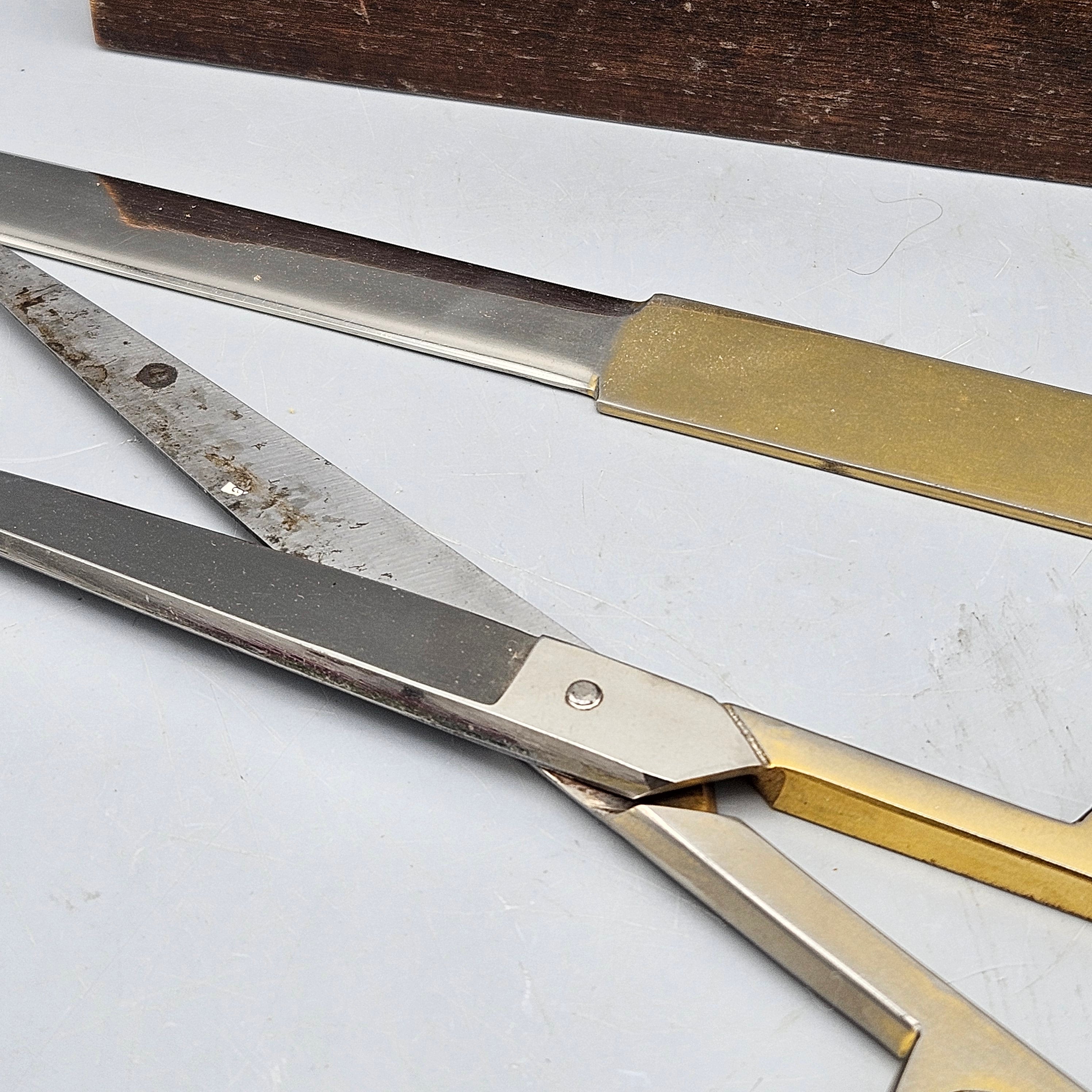 1970s Italian Brass and Wood Scissor and Letter Opener Desk Set