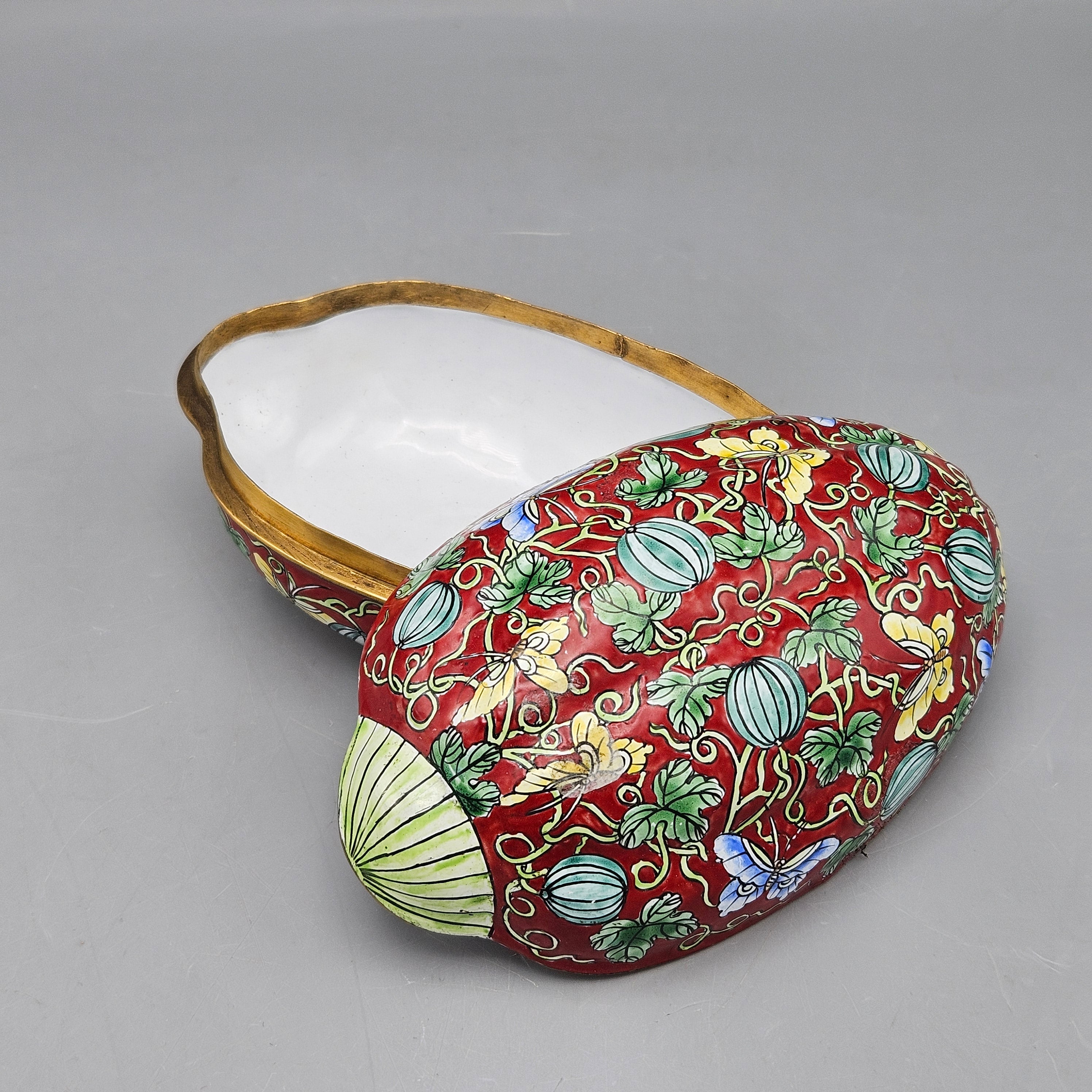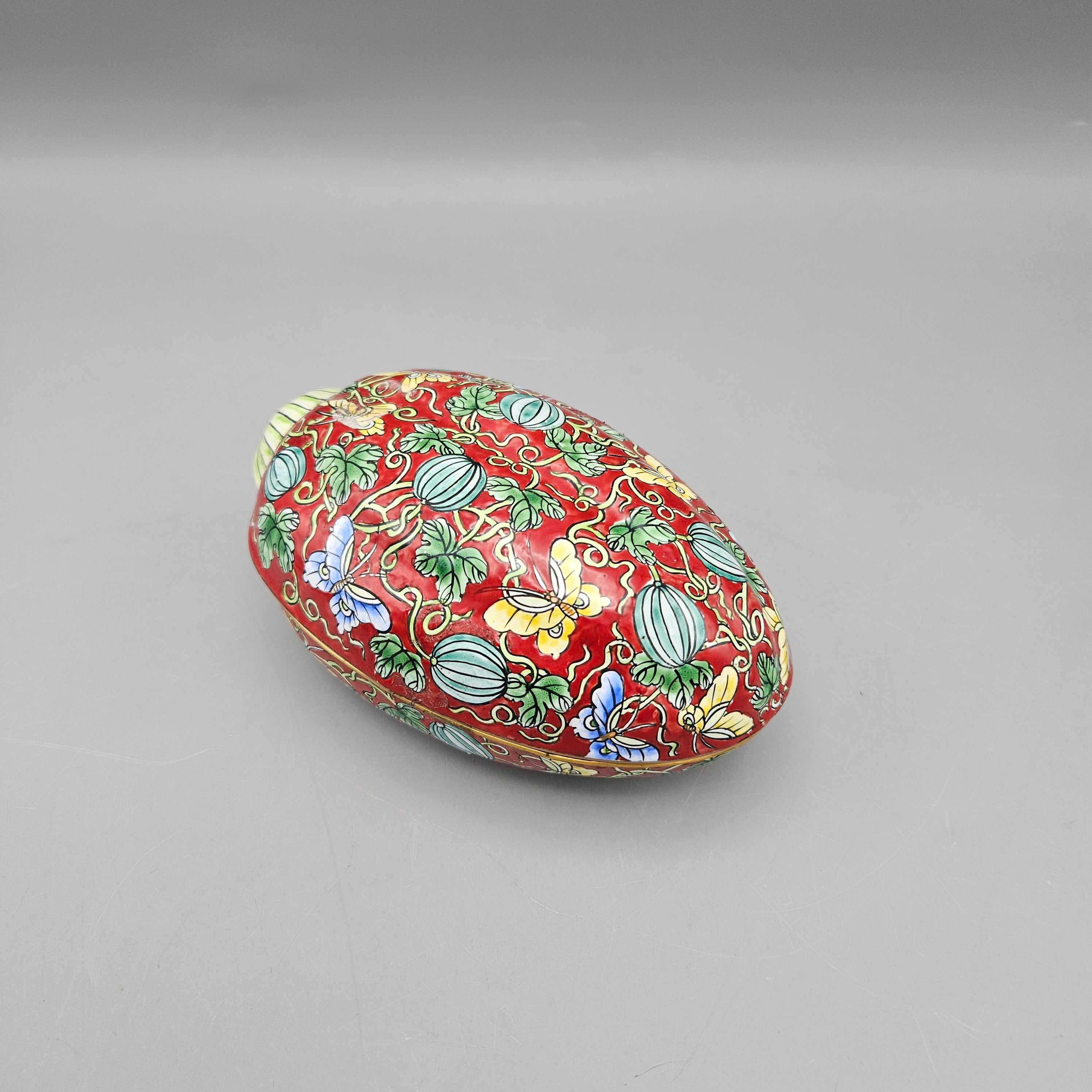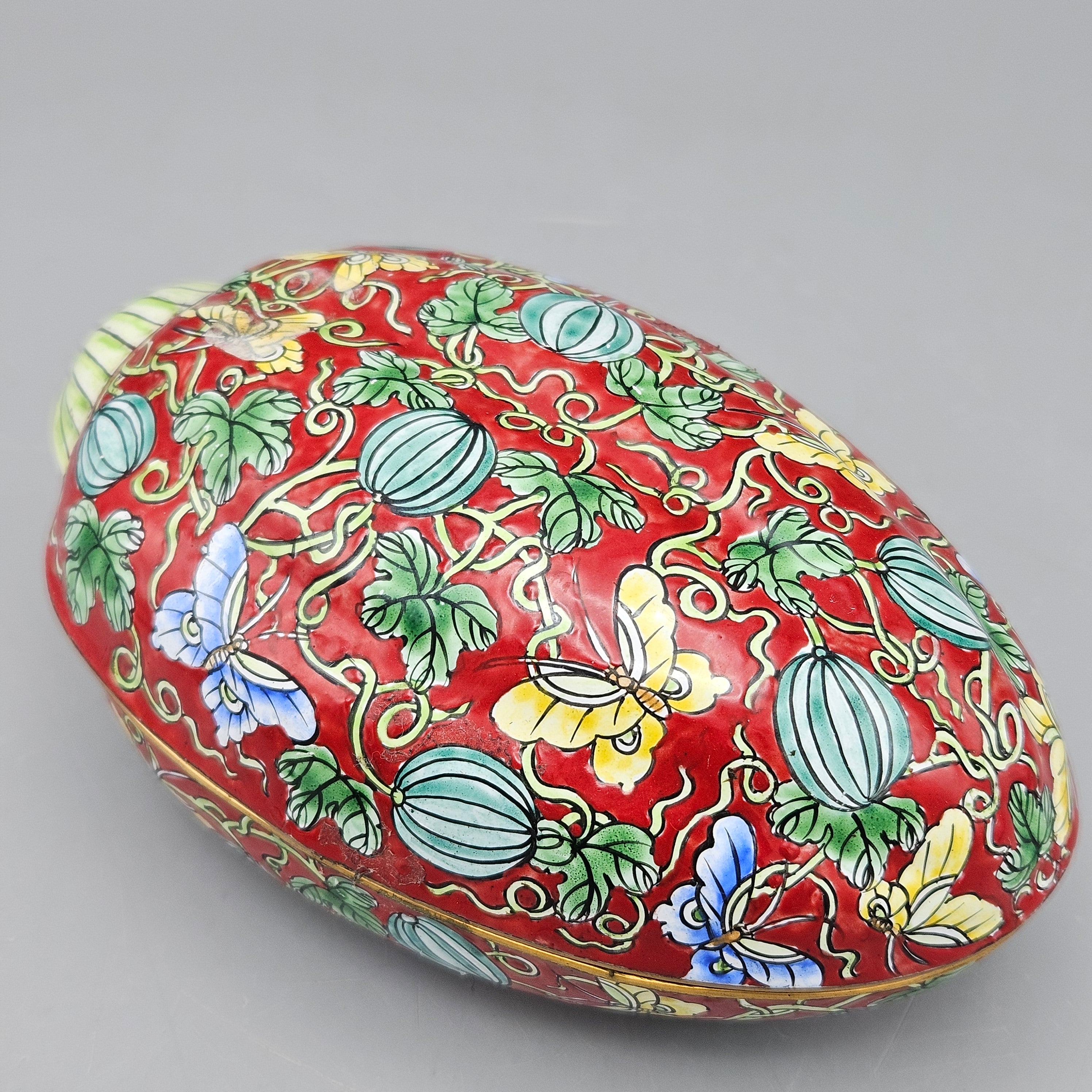 Vintage Chinese Enamel Egg Trinket Box - Gourde and Butterfly
