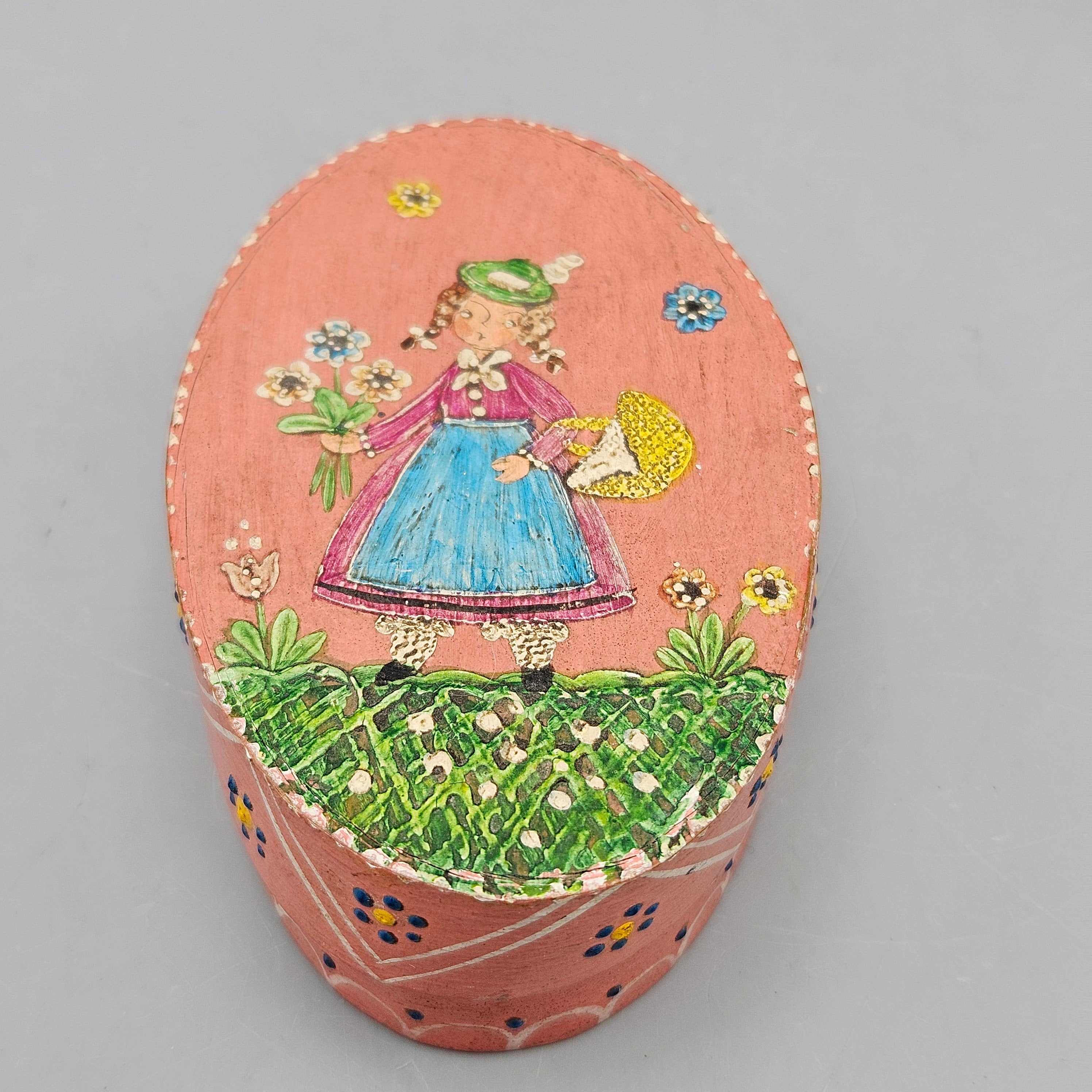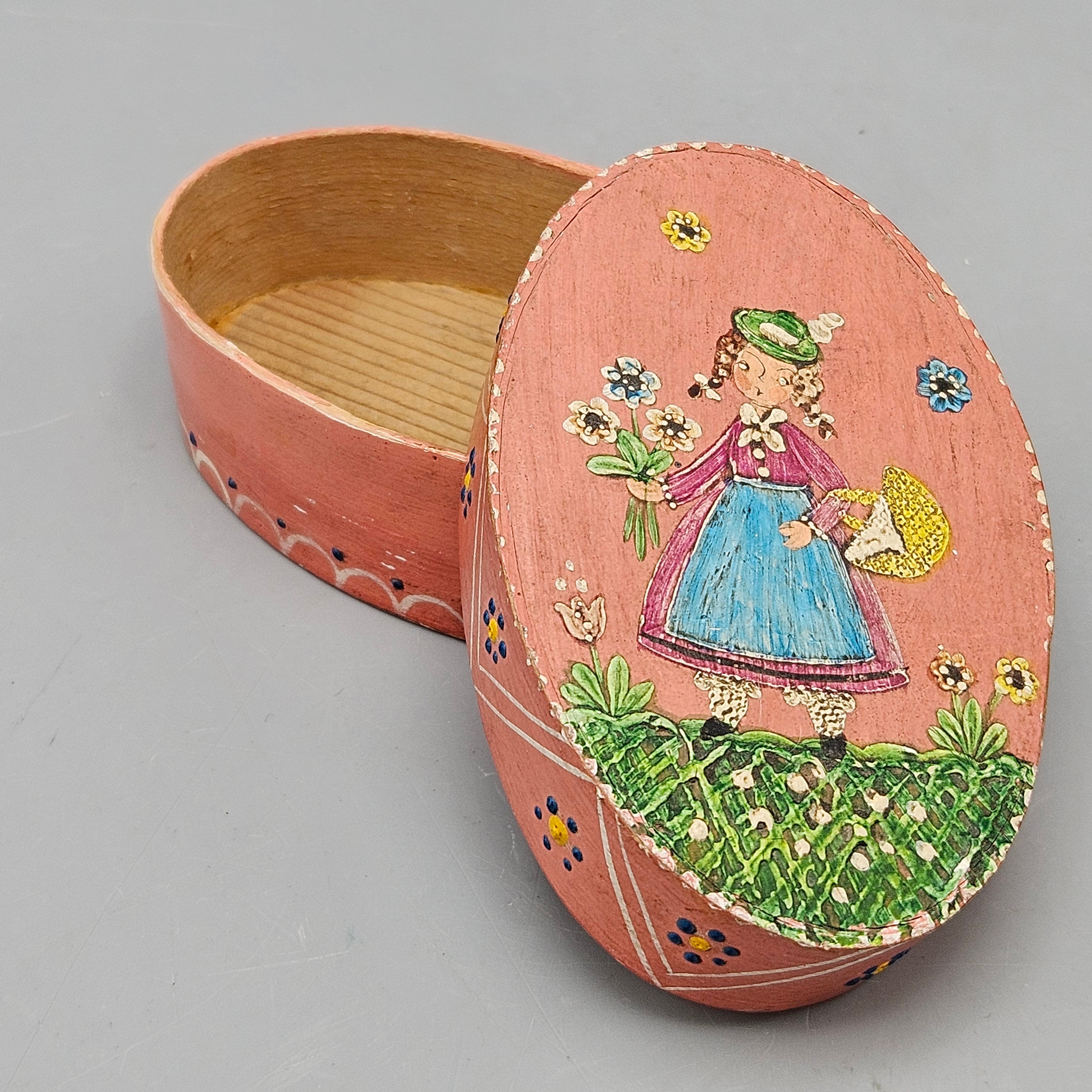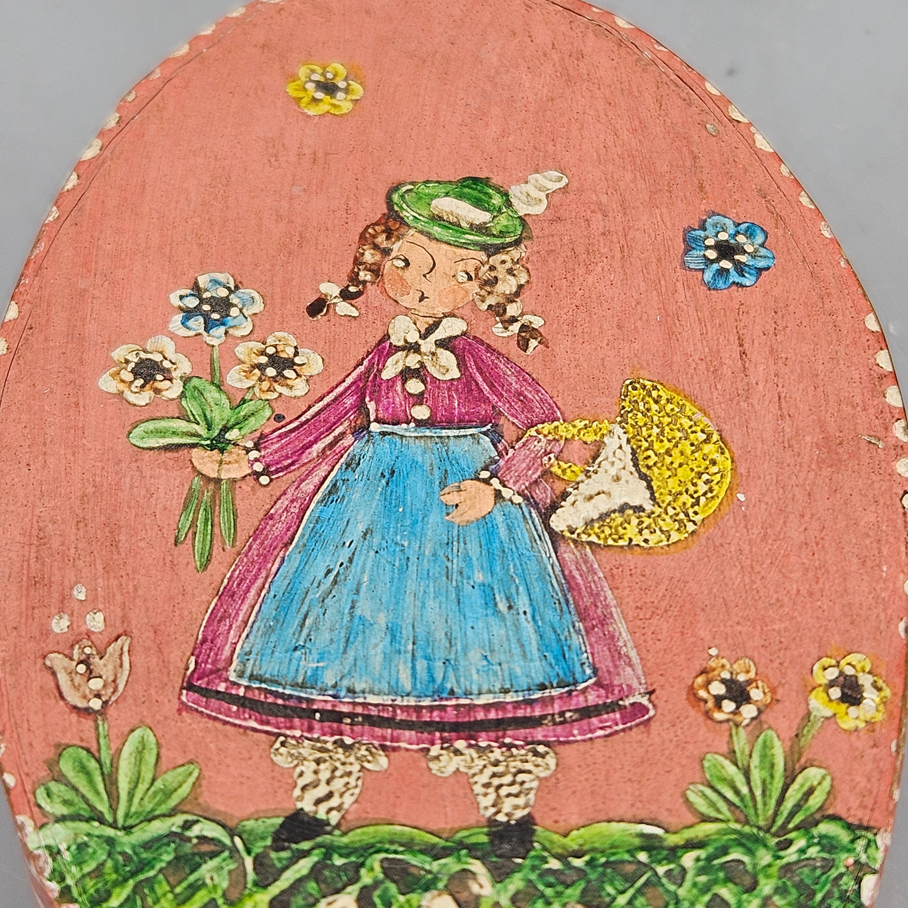 Volkskunst Wallach Hand-Painted Wooden Folk Art Box - Oval