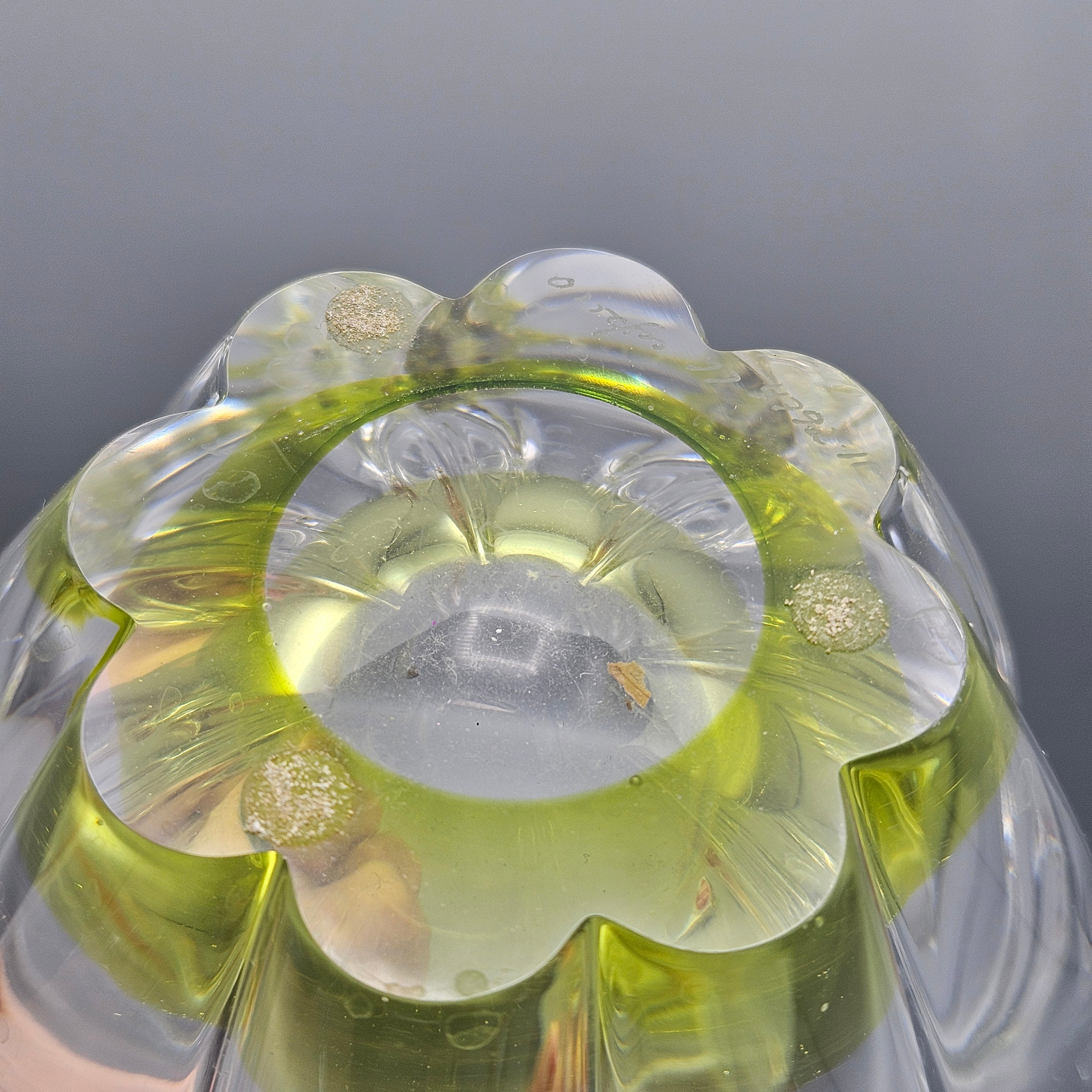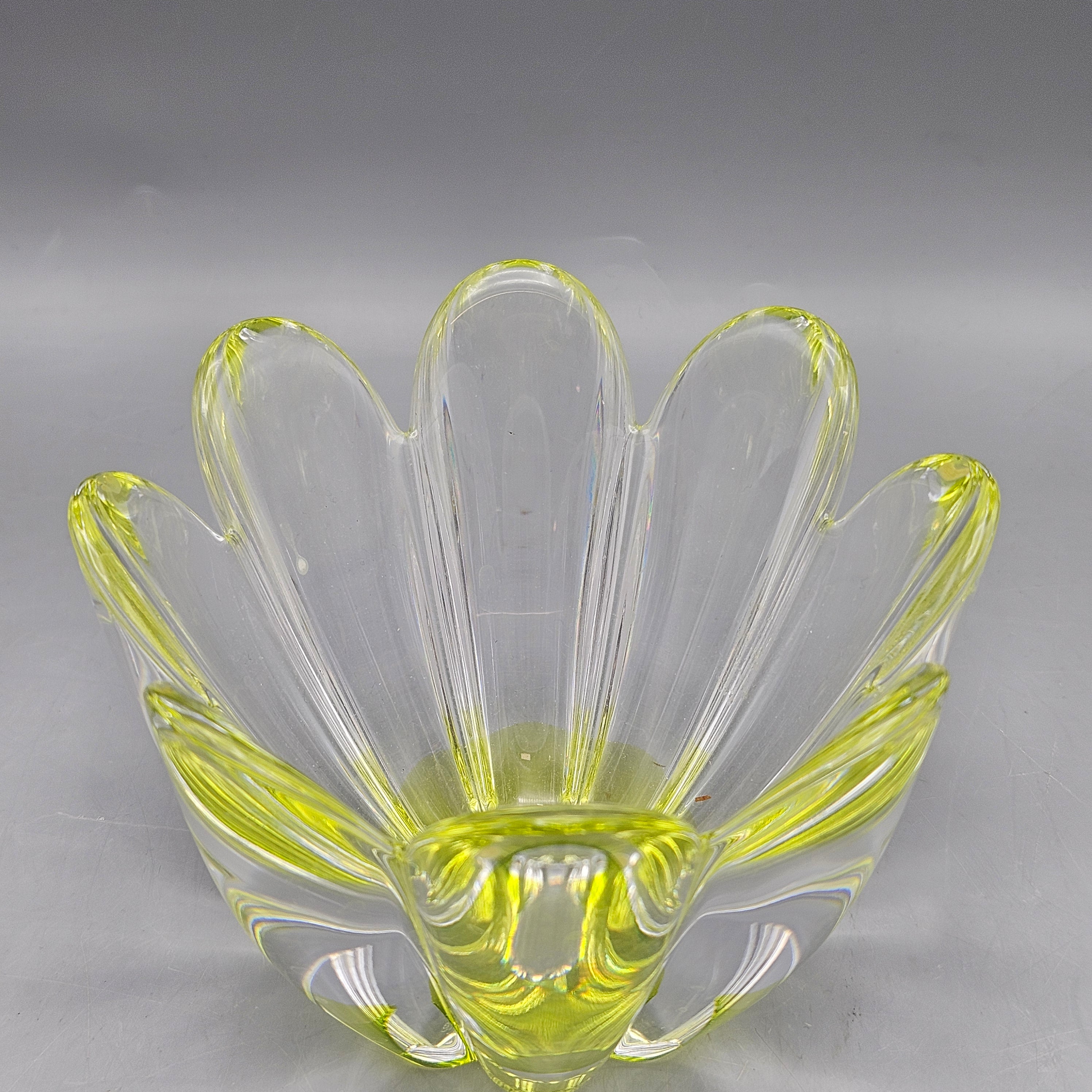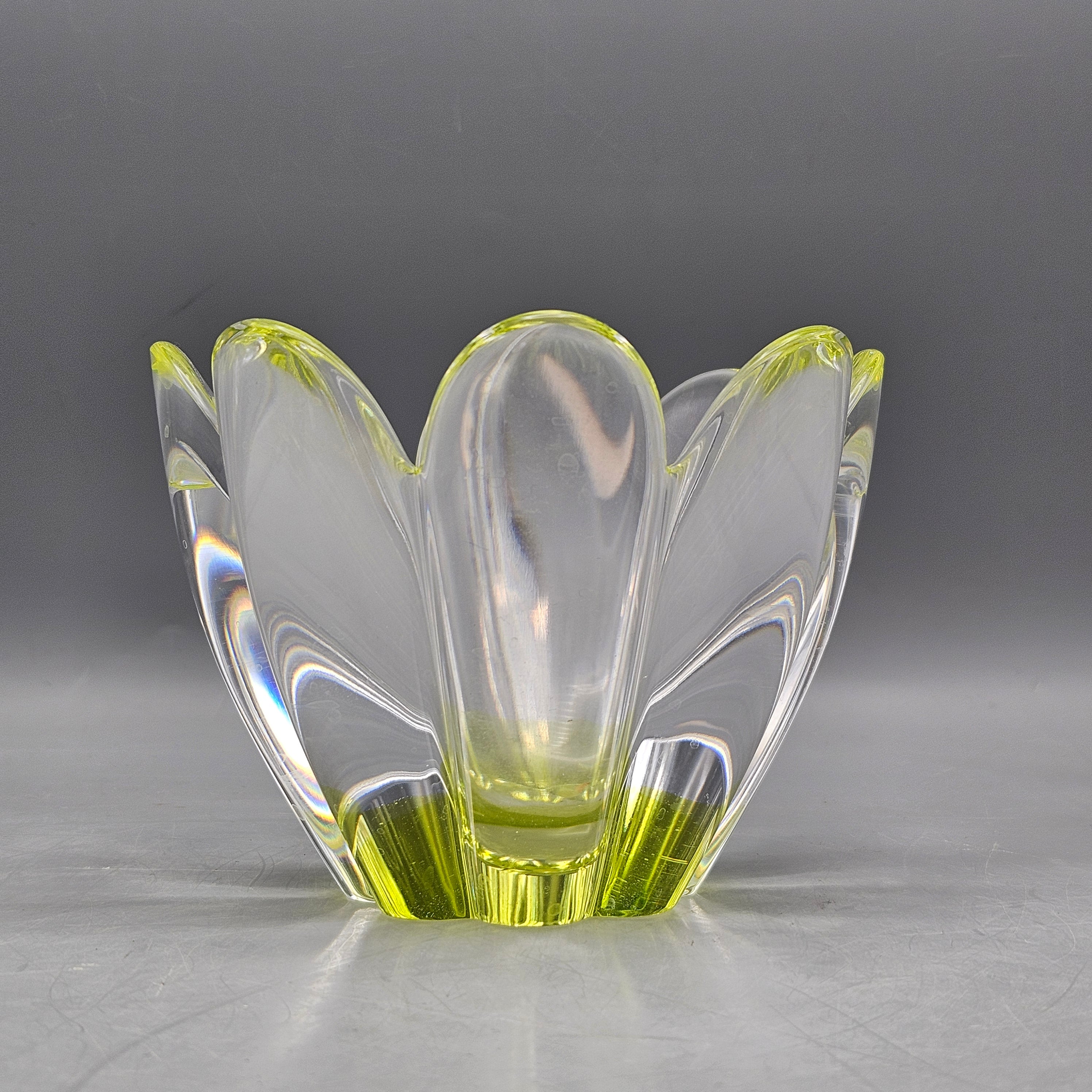 Jan Johansson for Orrefors Crystal Mayflower Bowl with Yellow Highlight