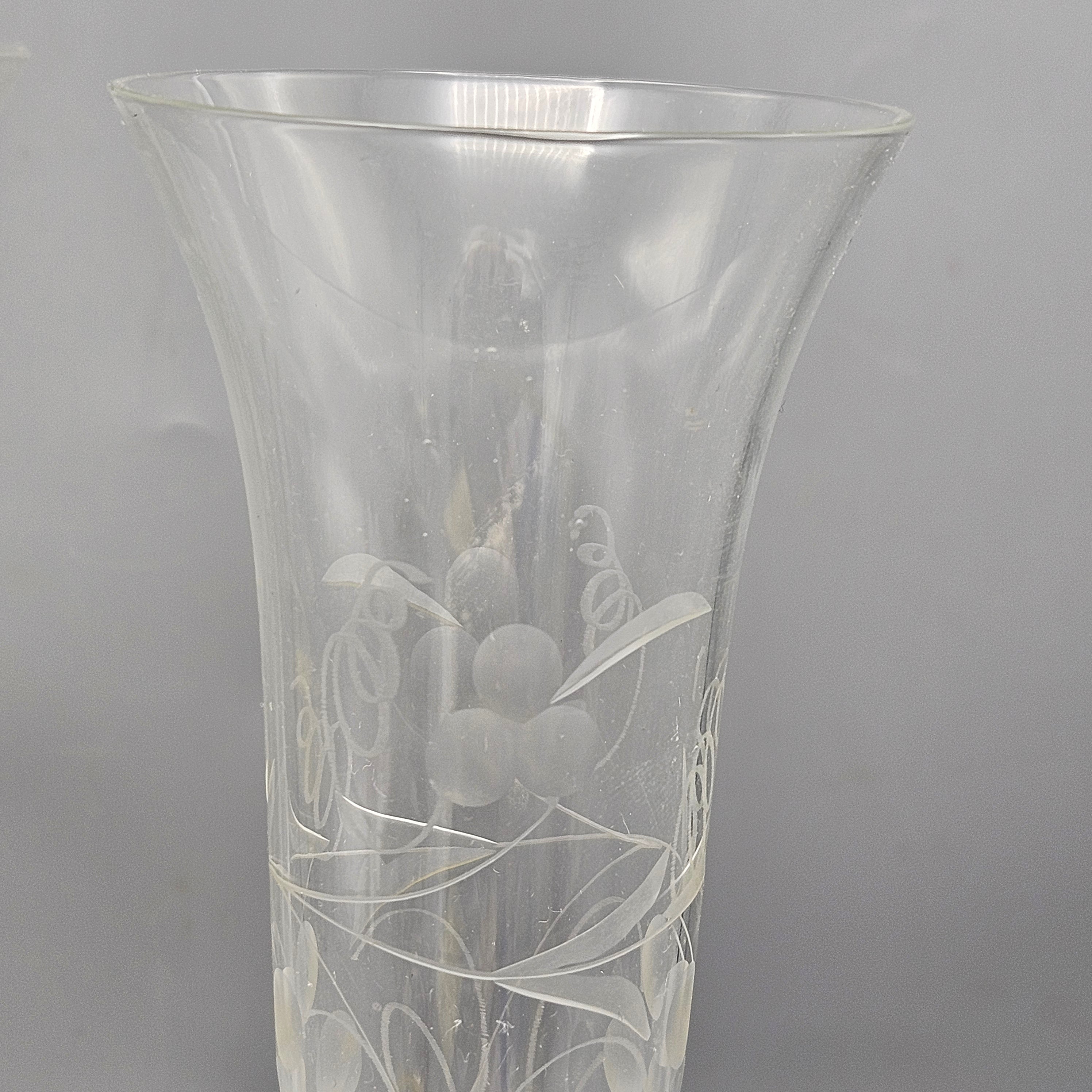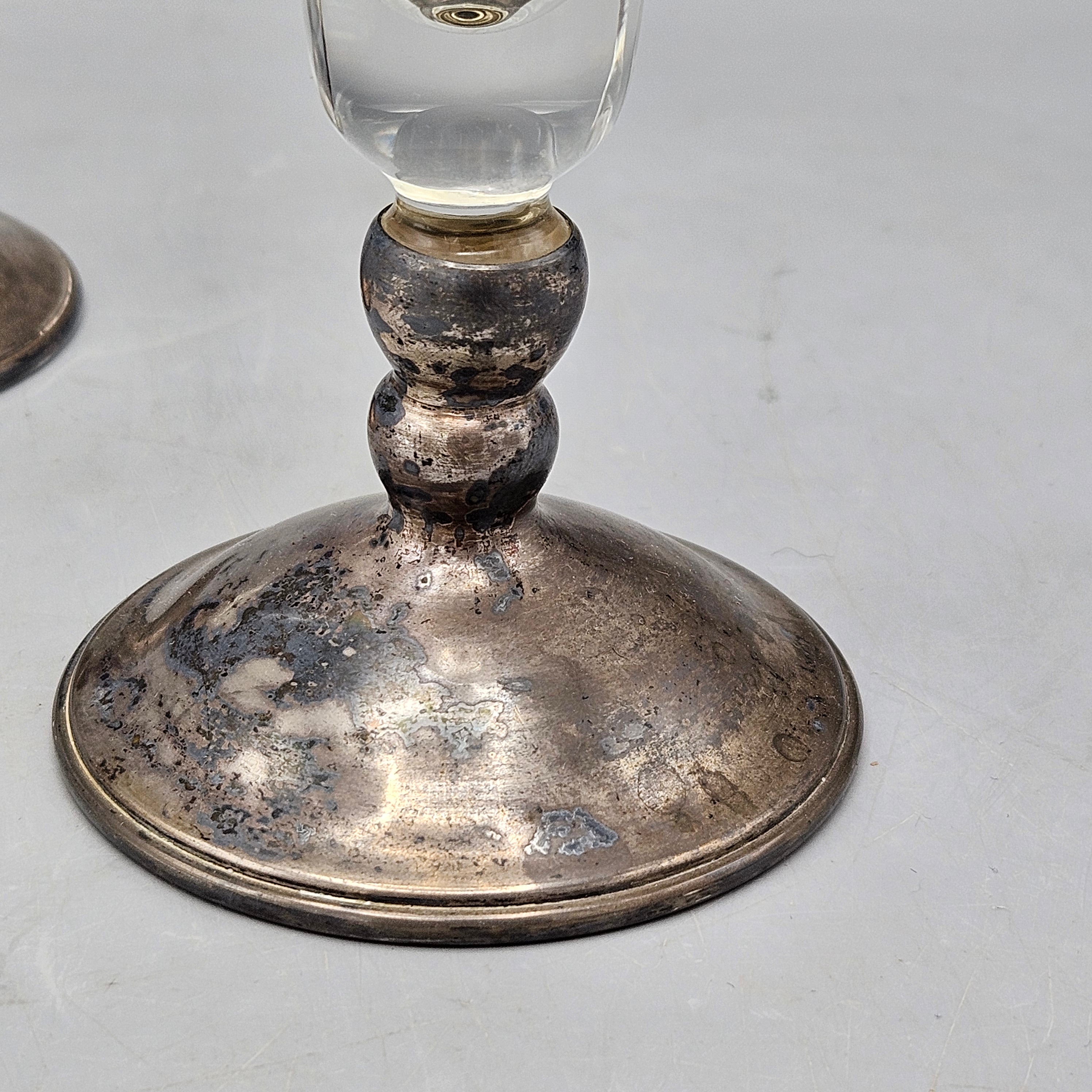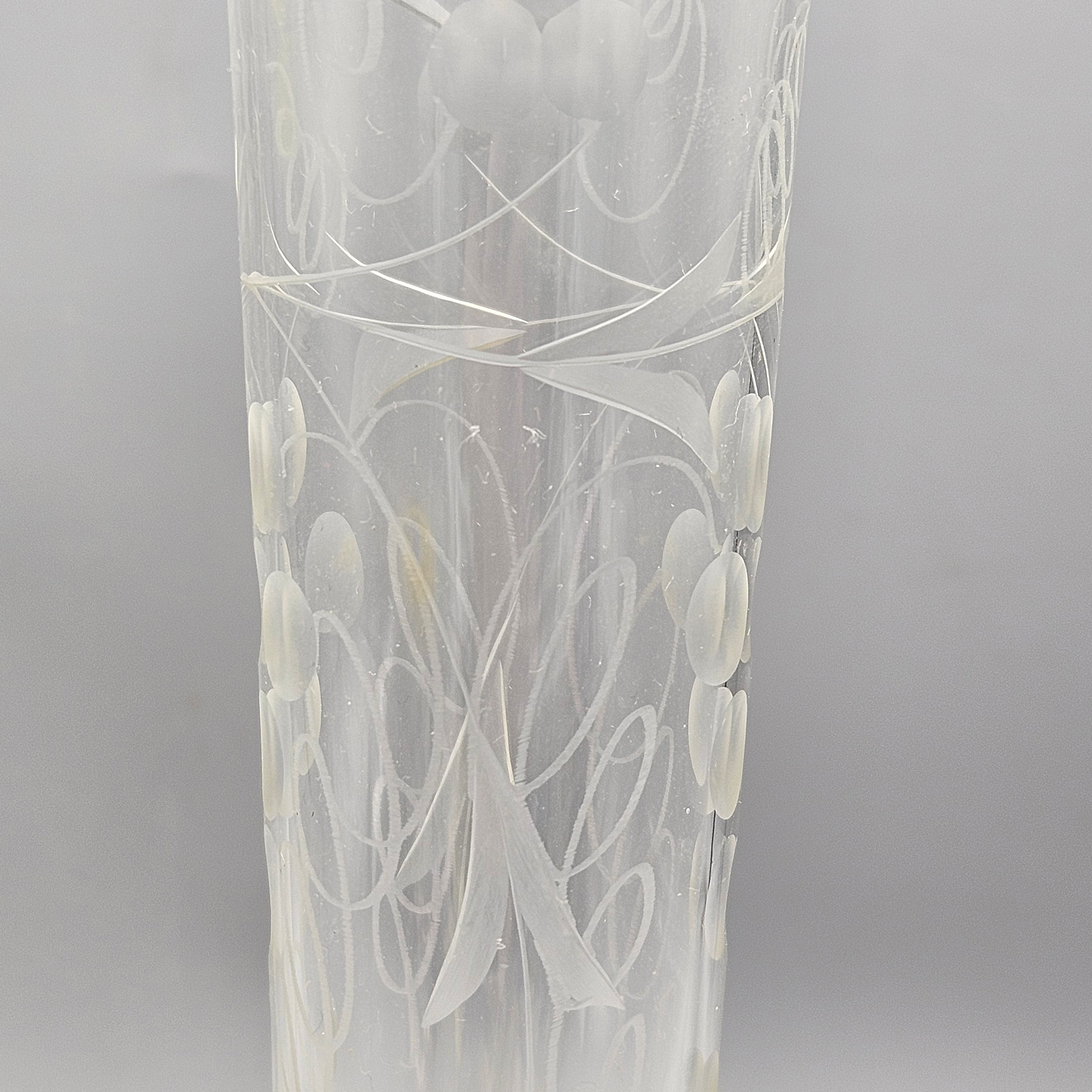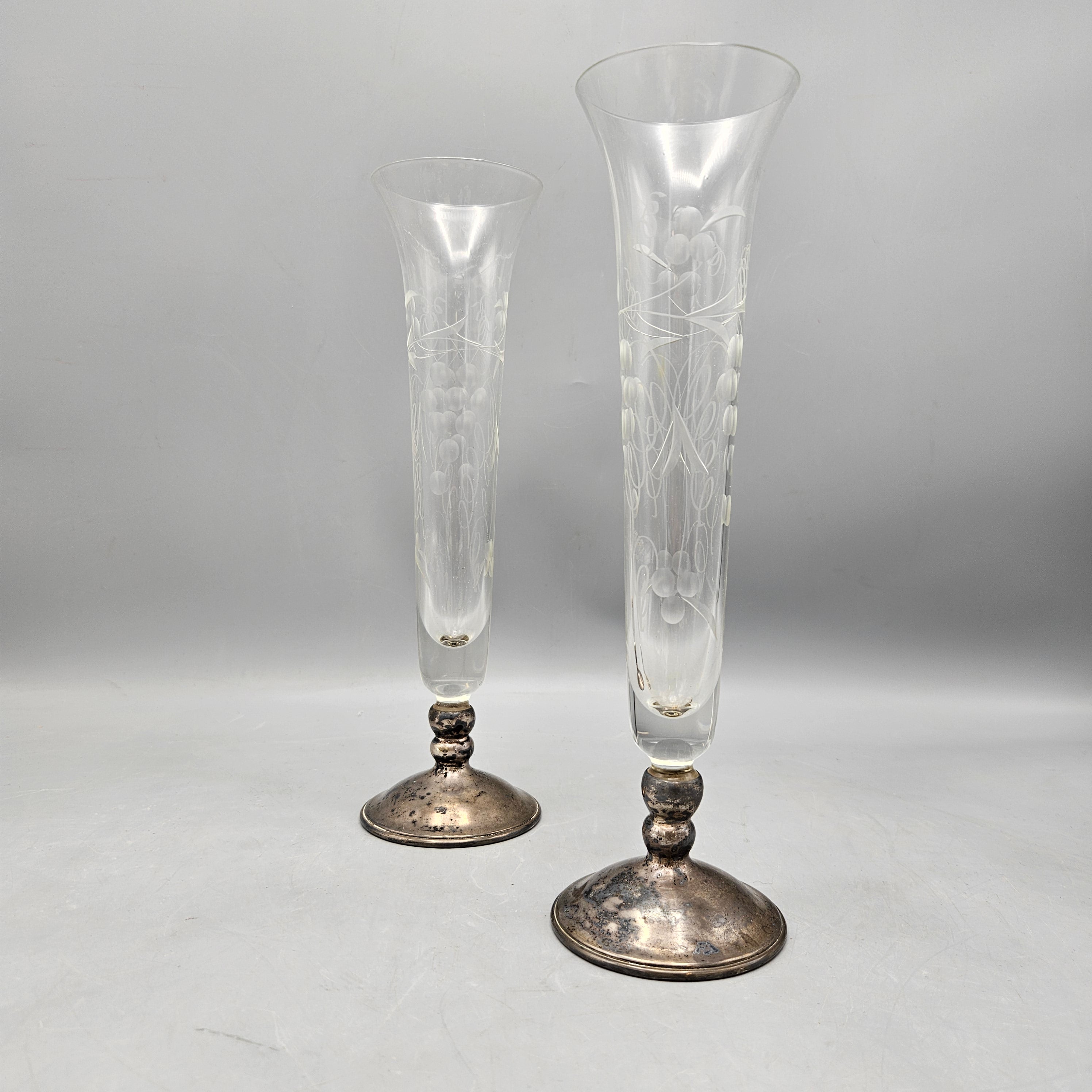 Pair Crystal Bud Vases with Engraved Decoration and Sterling Silver Bases