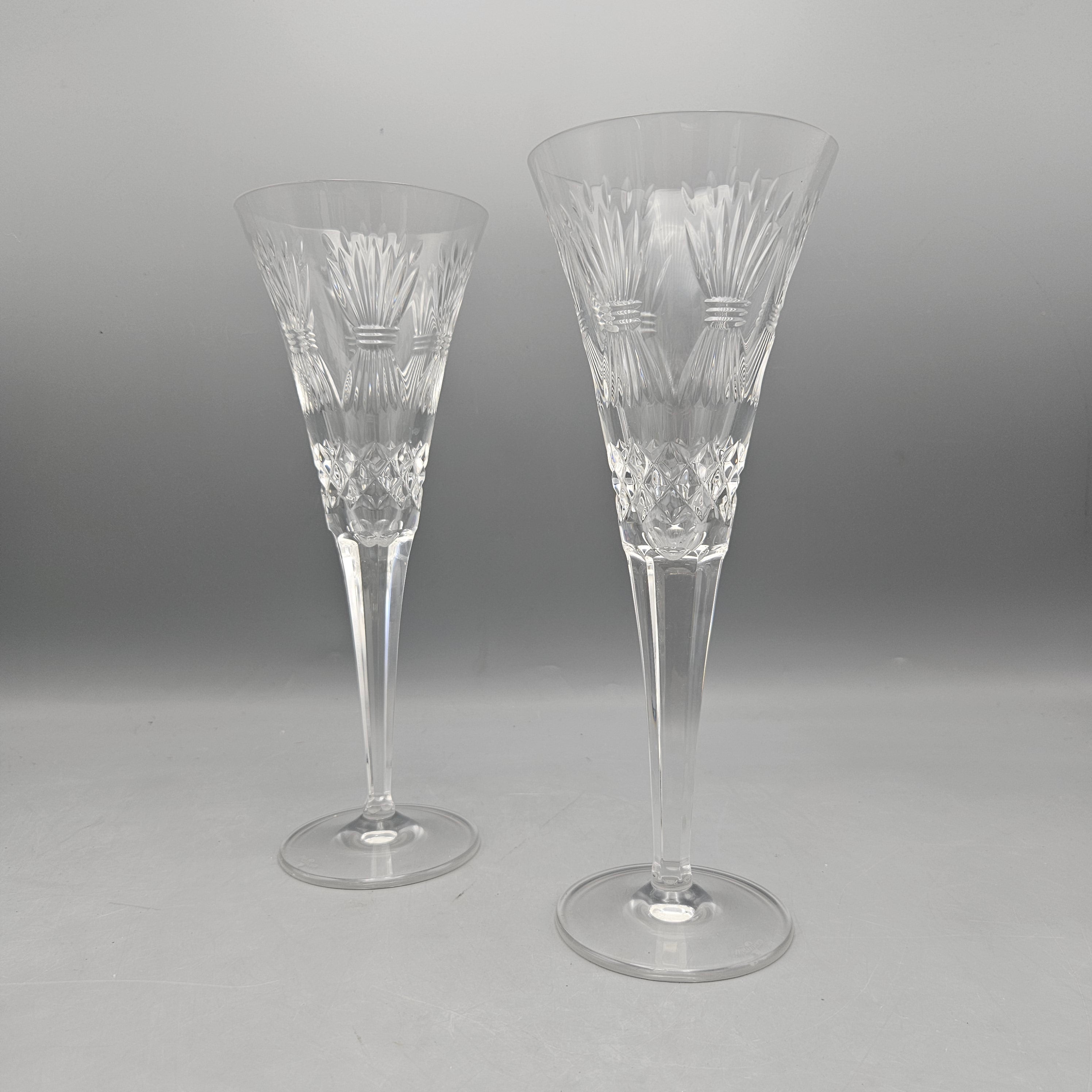 Pair Waterford Crystal Millenium Collection Prosperity Champagne Flutes