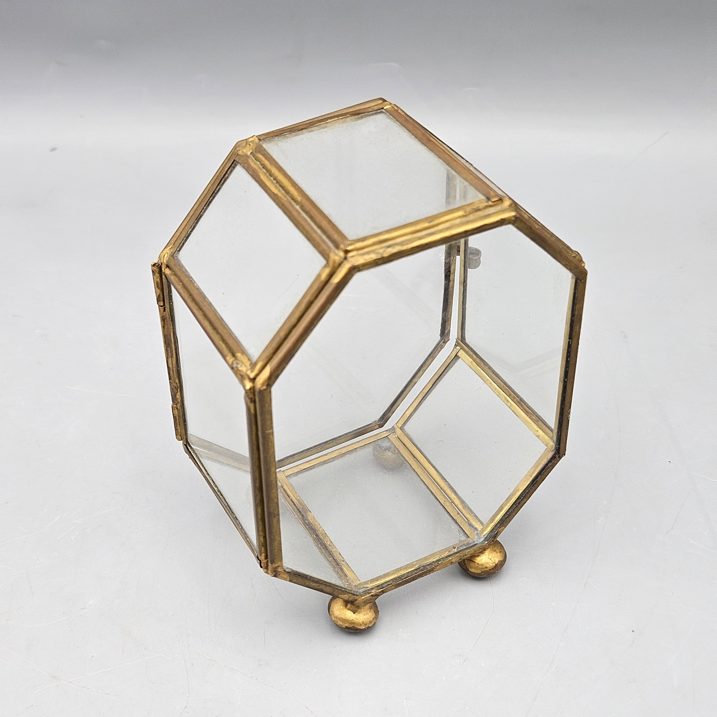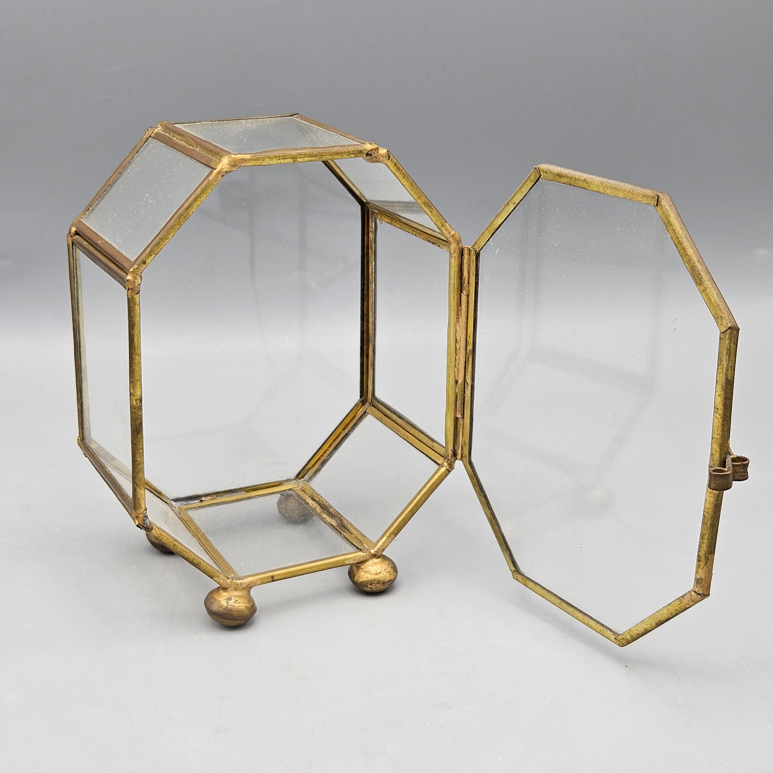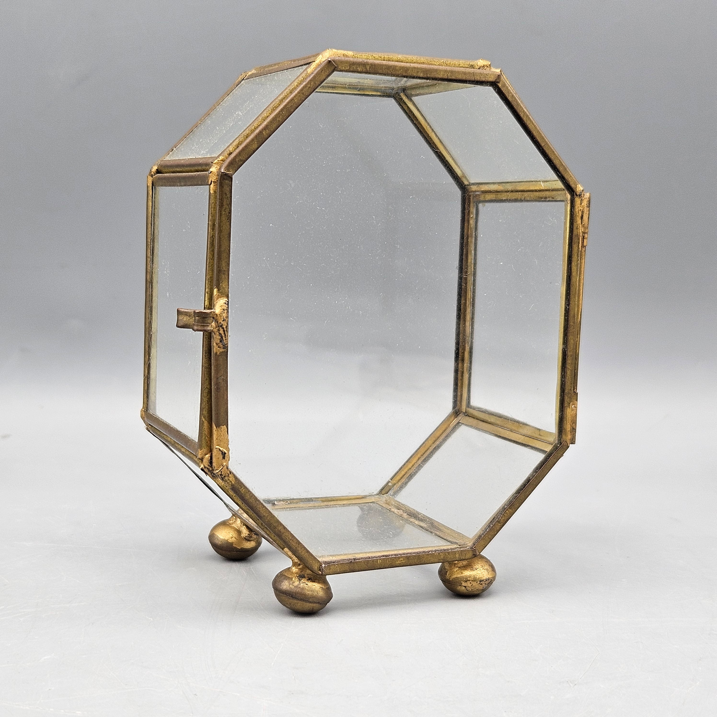 Vintage Brass and Glass Octagonal Display Case