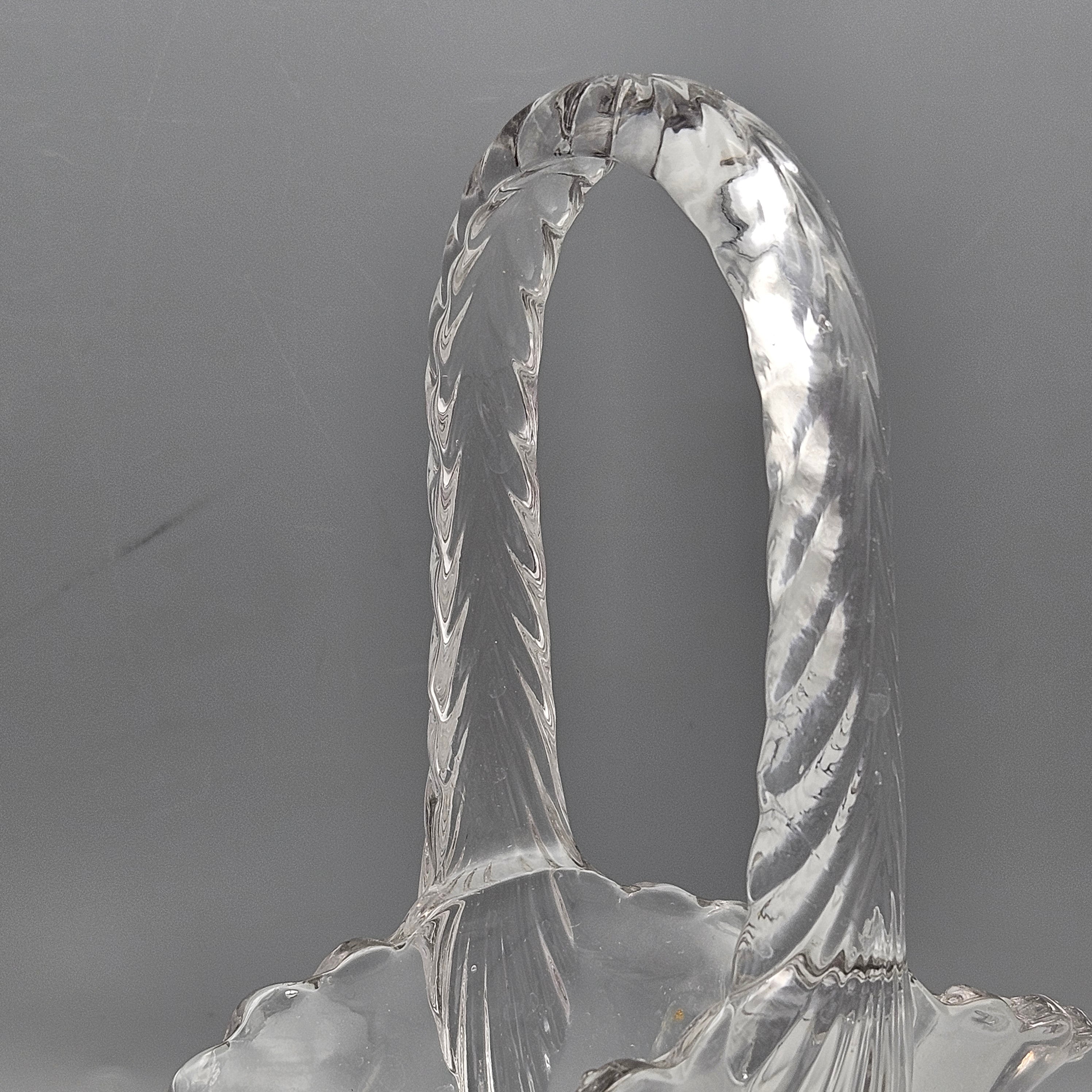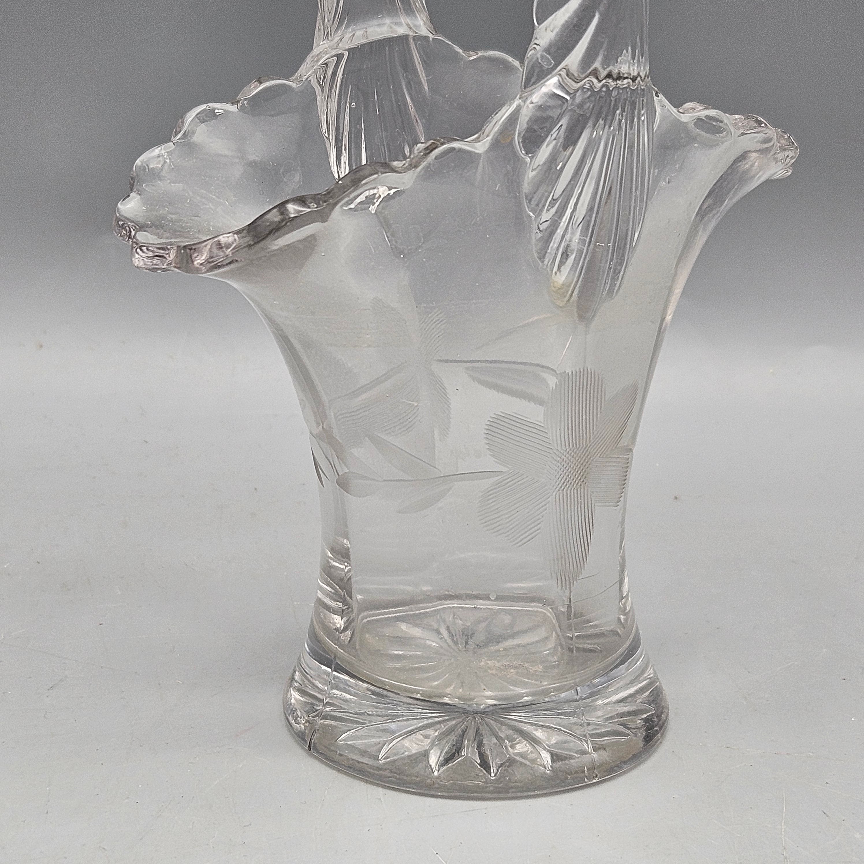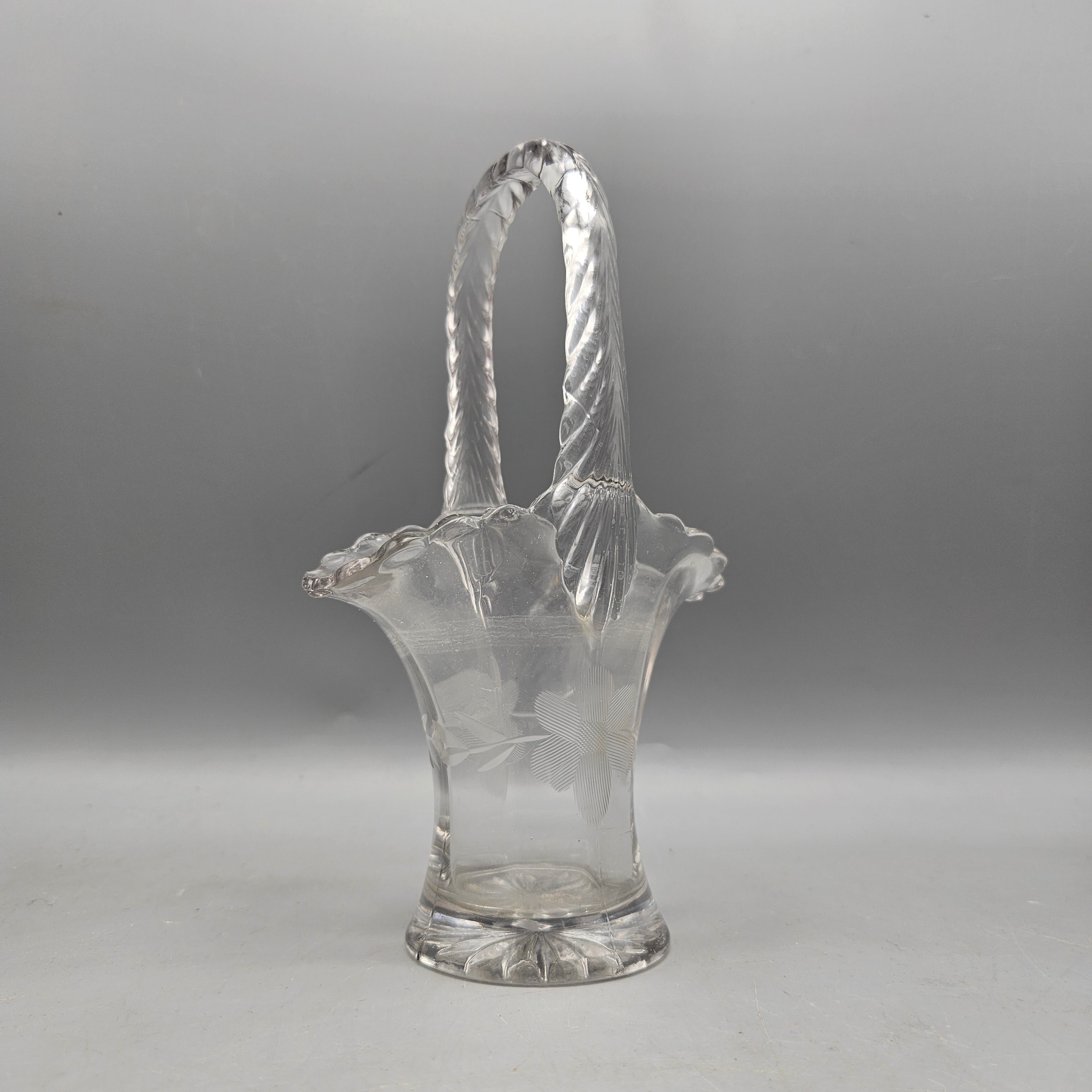 Vintage Duncan & Miller Handled Crystal Basket with Engraved Flowers