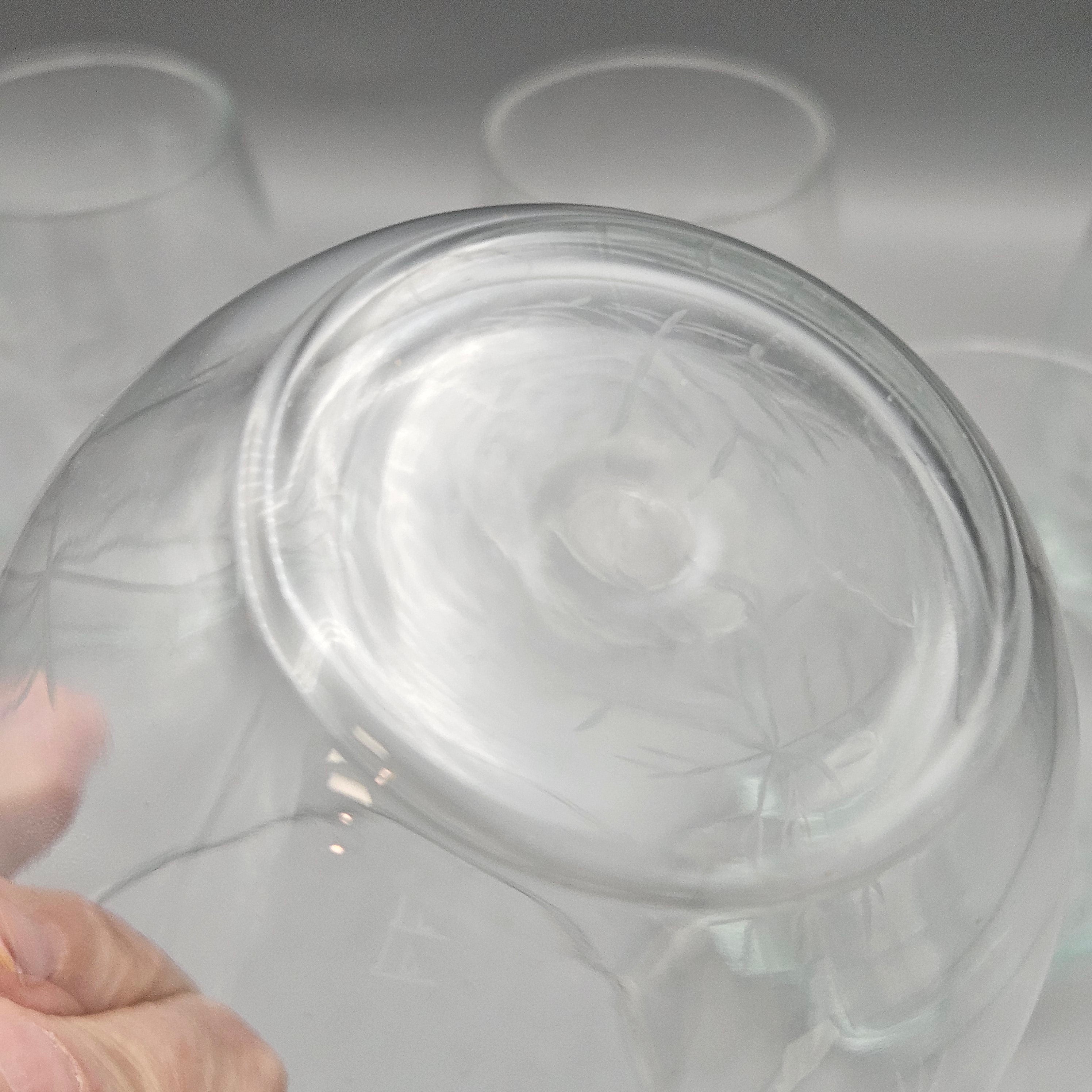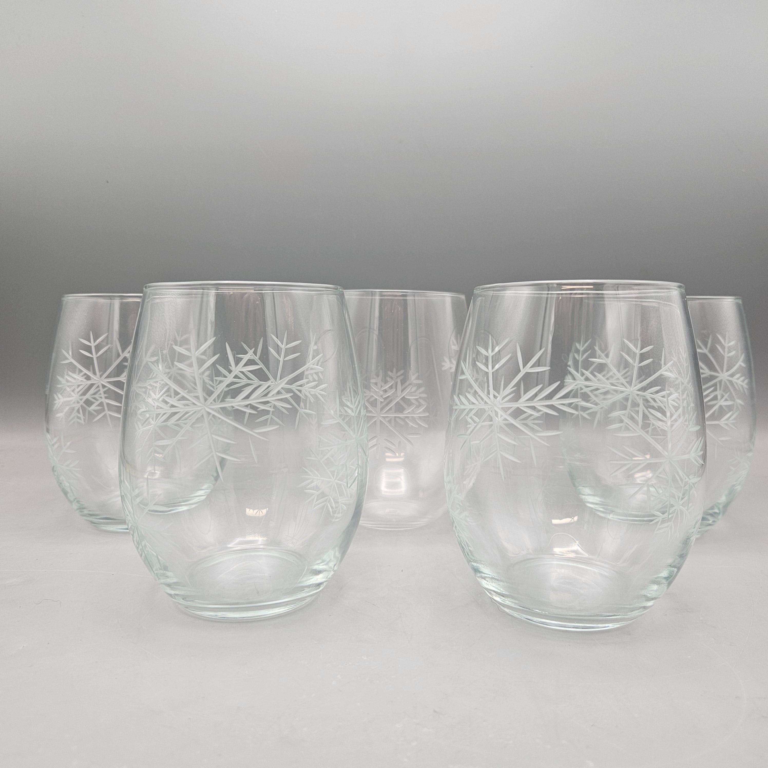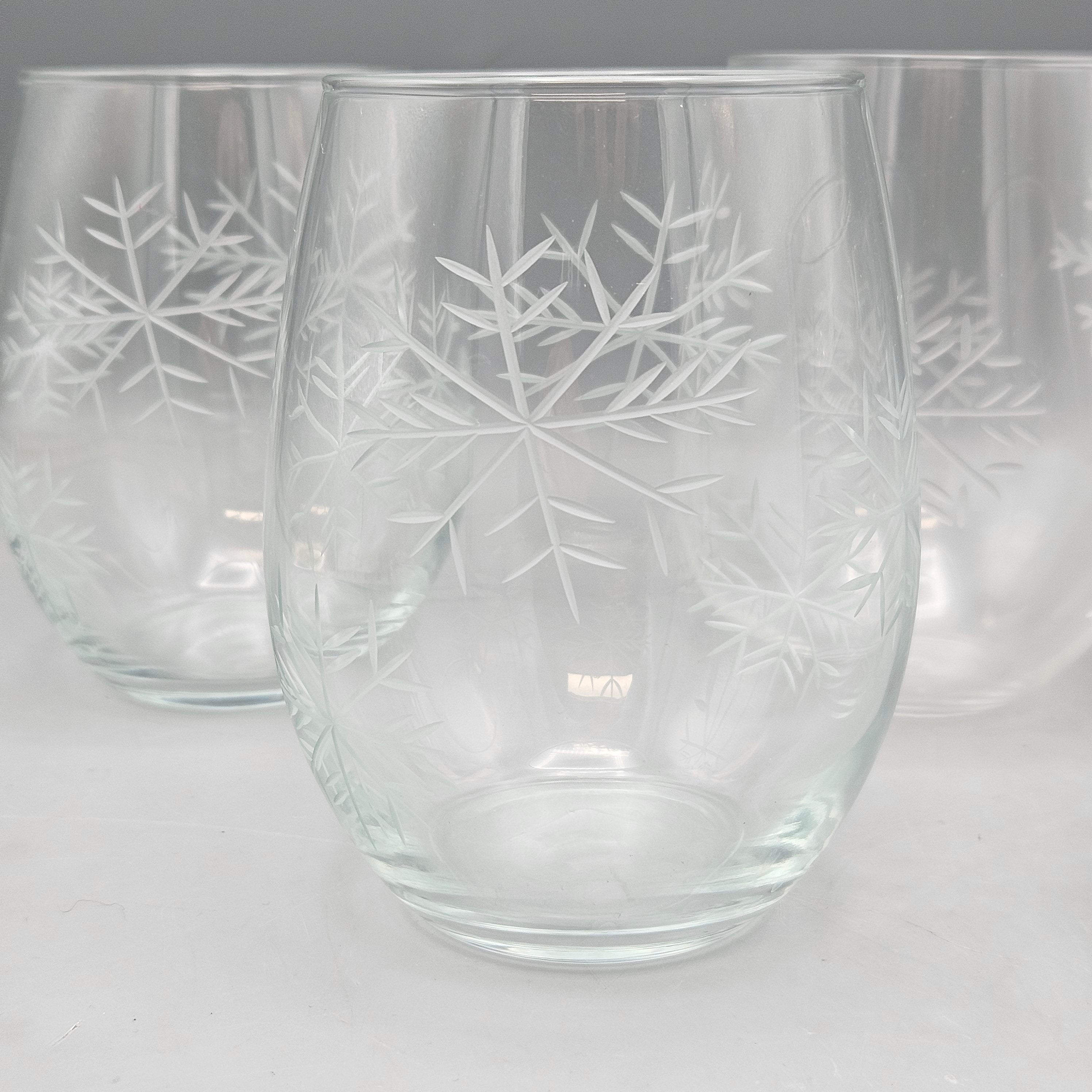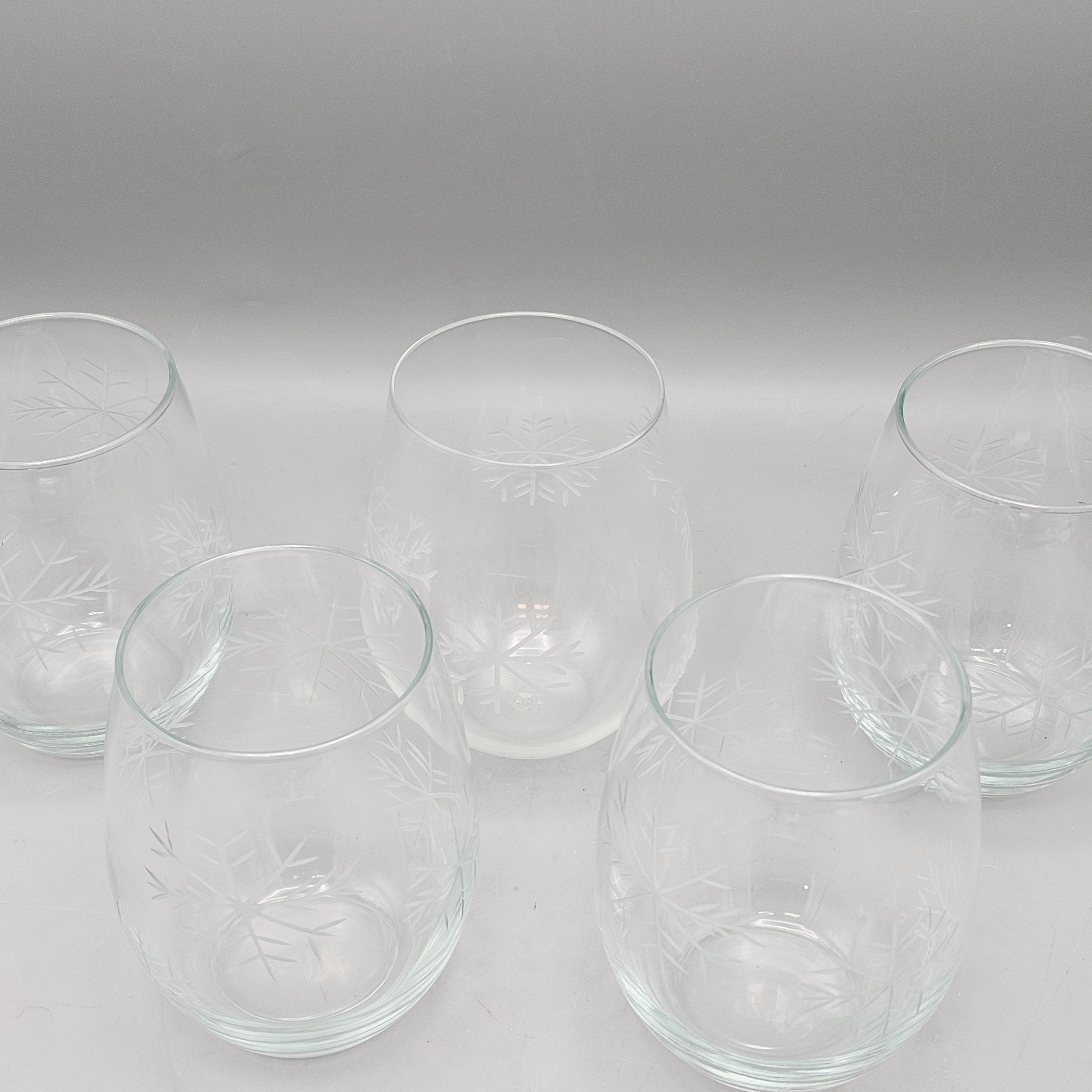 Set of 5 Vintage Roly Poly Glasses with Engraved Snowflakes