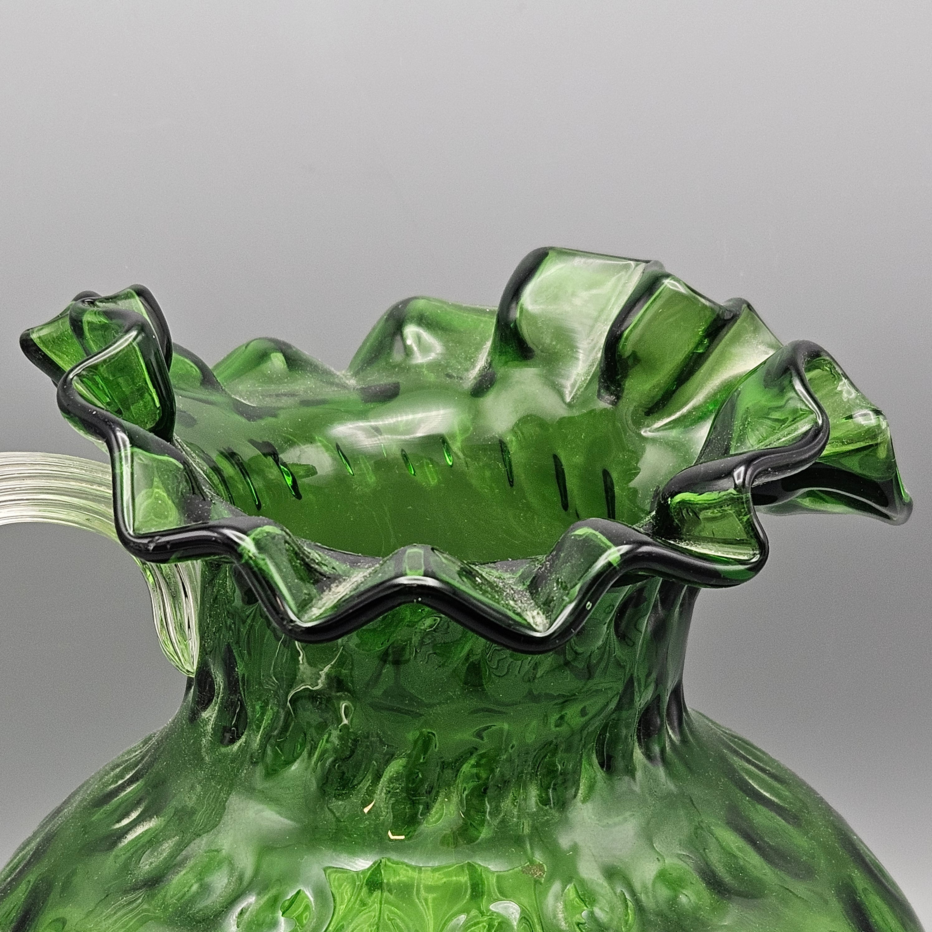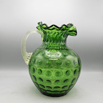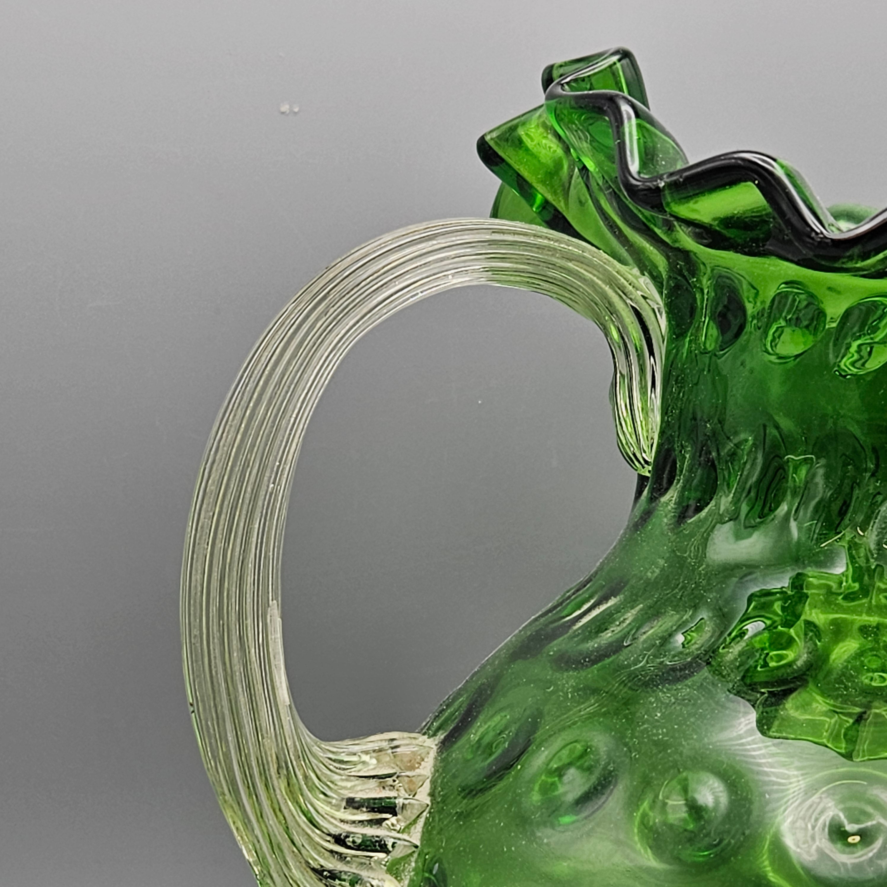 Vintage South Jersey Emerald Green And Crystal Glass Water Pitcher