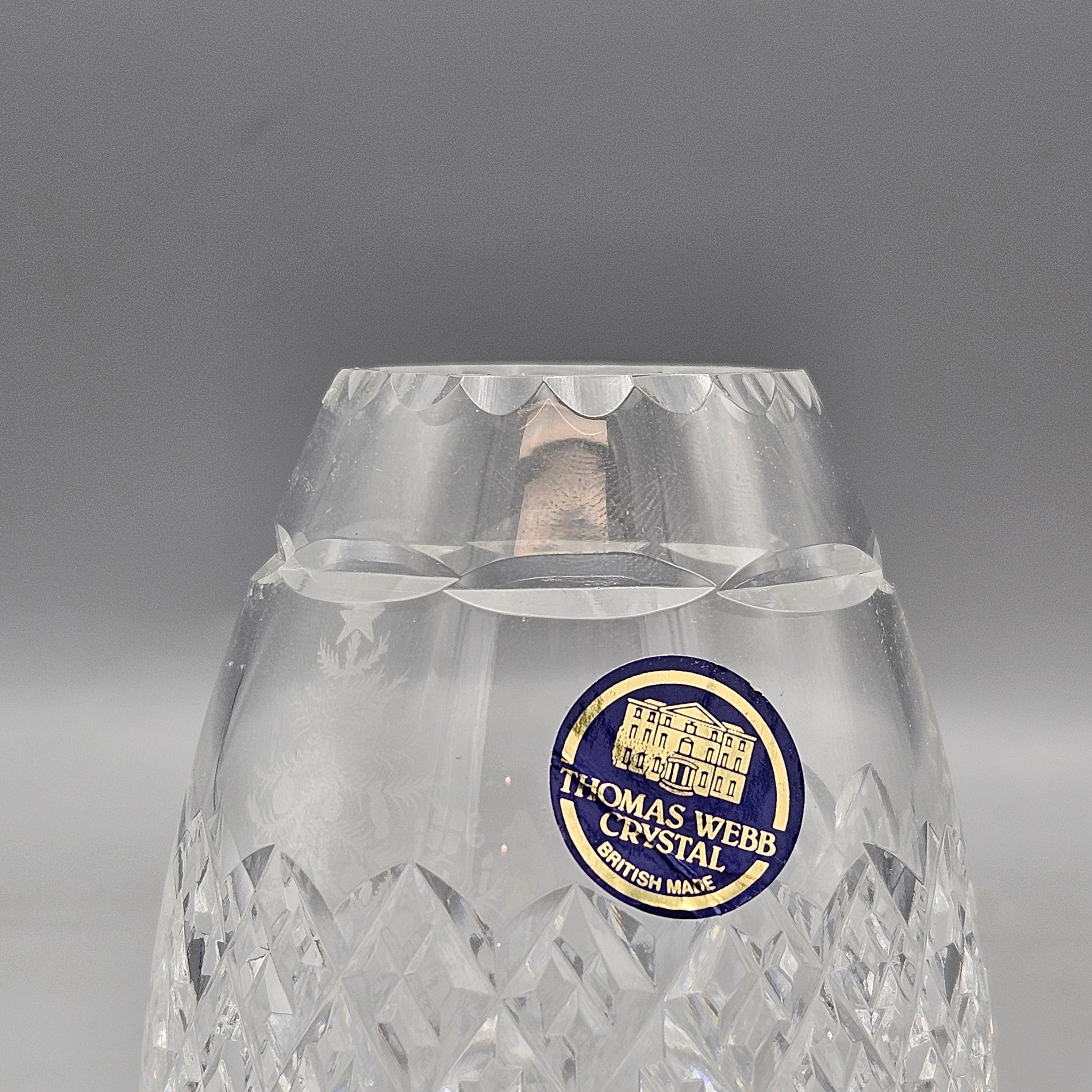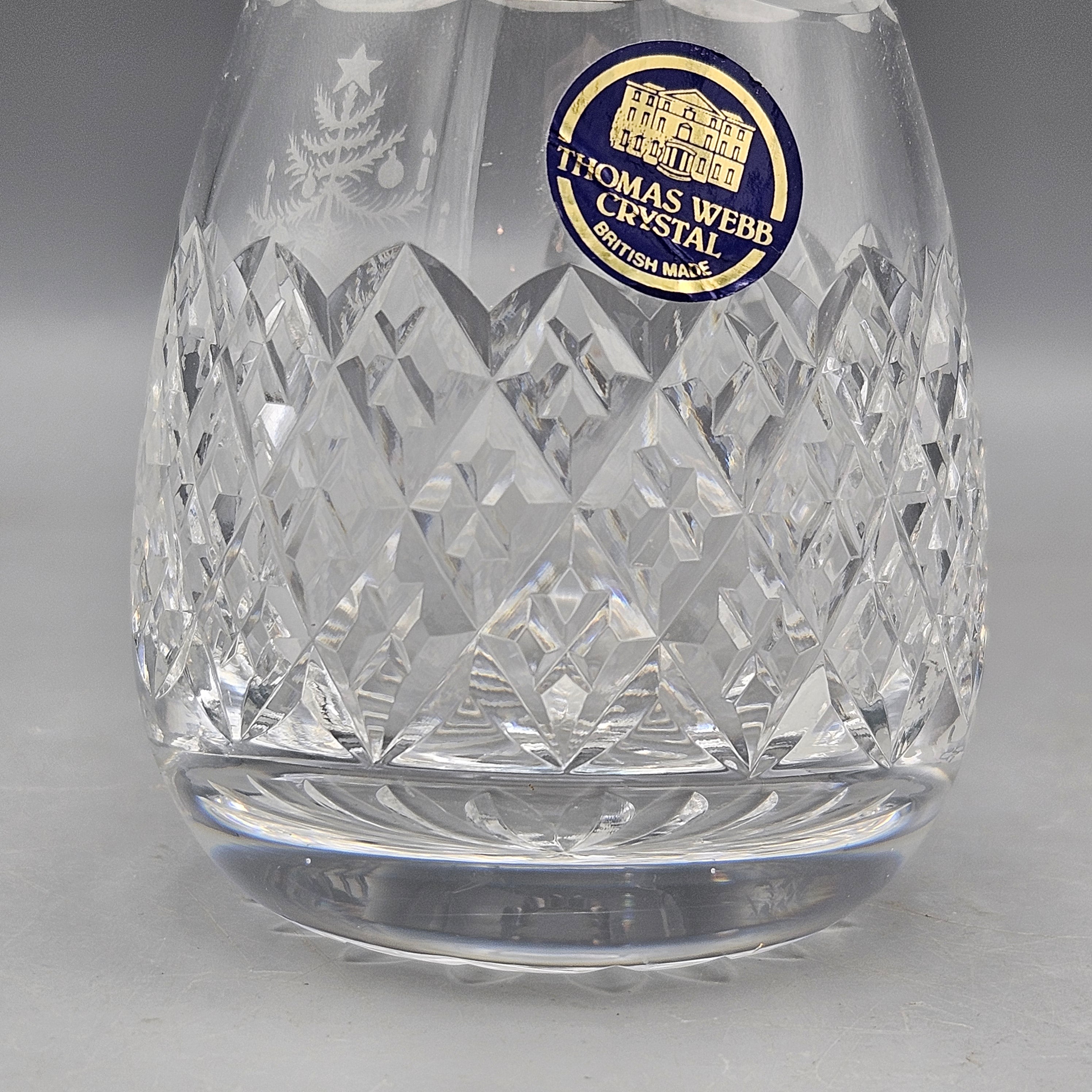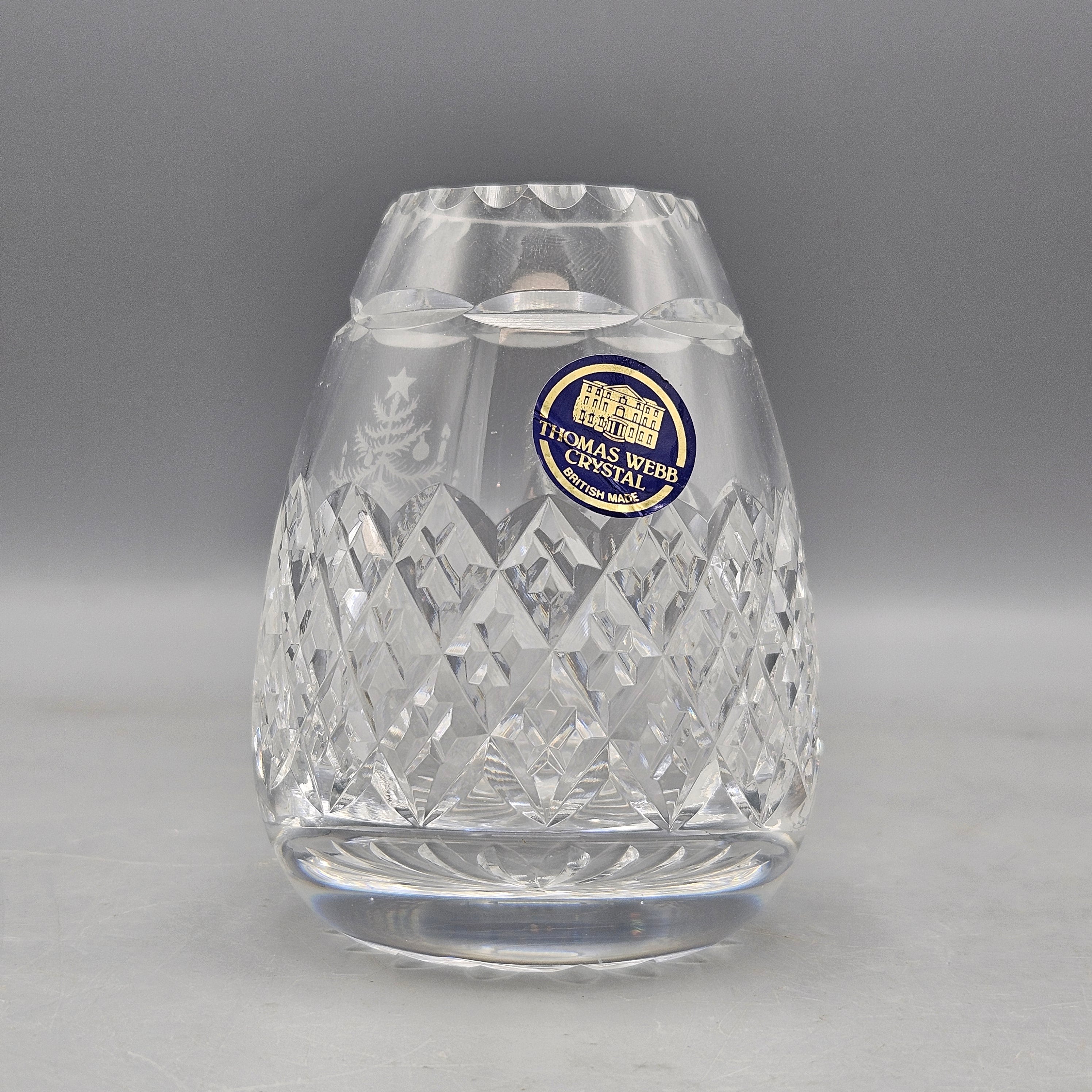 Vintage Thomas Webb Cut Crystal Vase with Engraved Christmas Tree