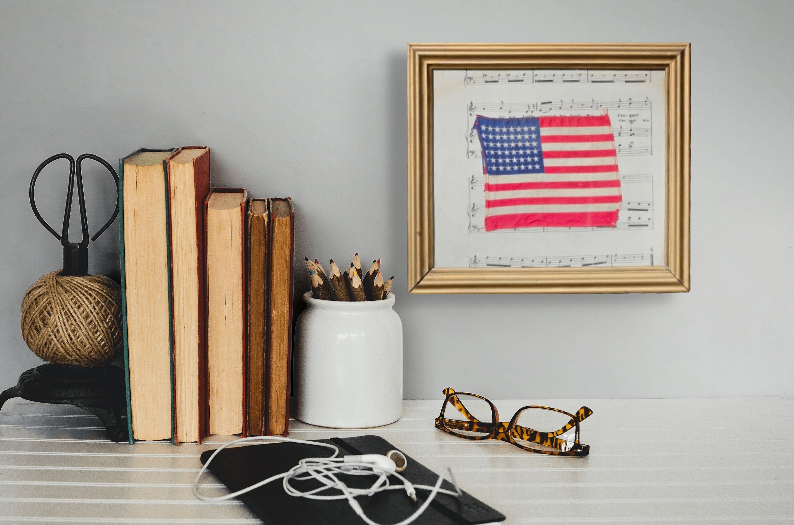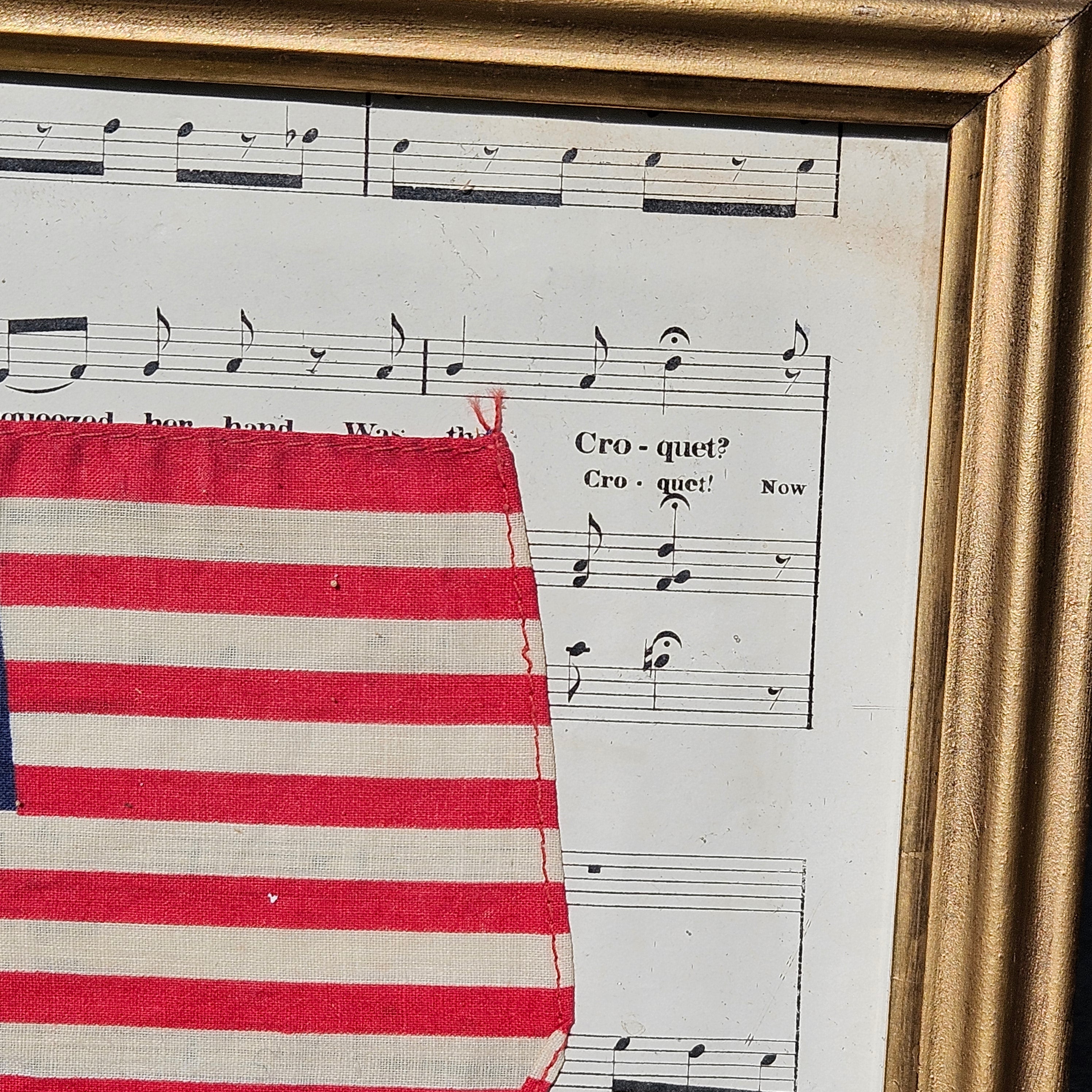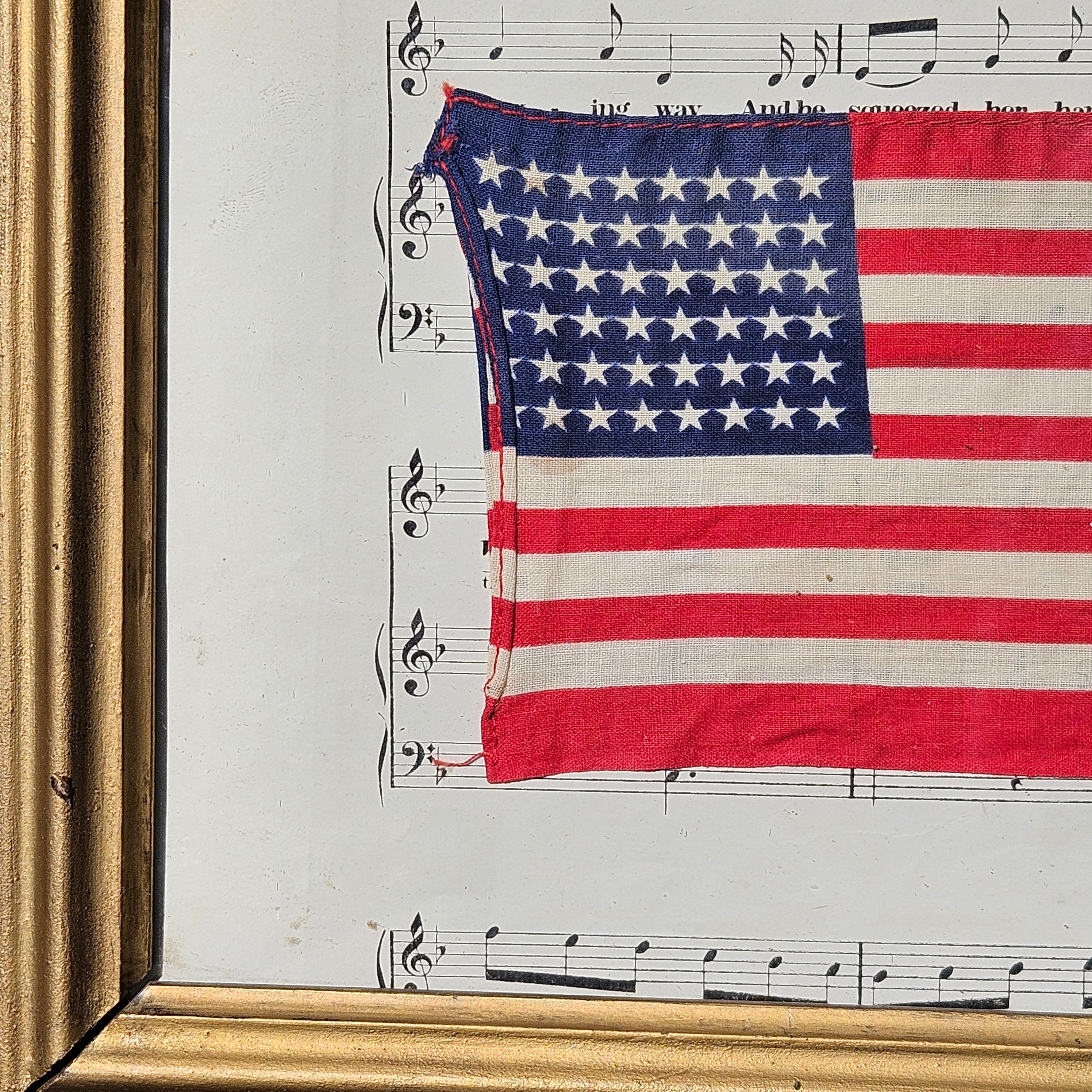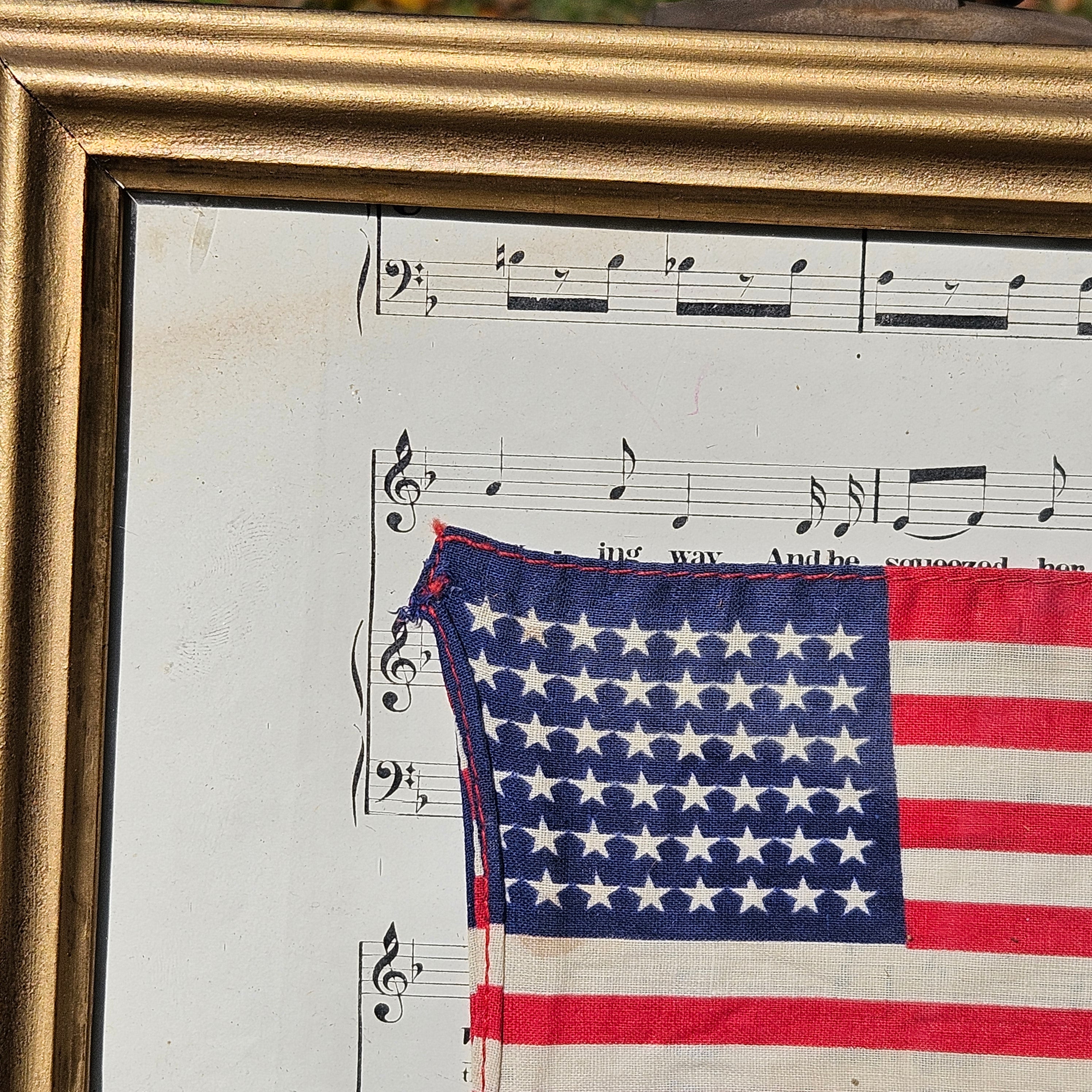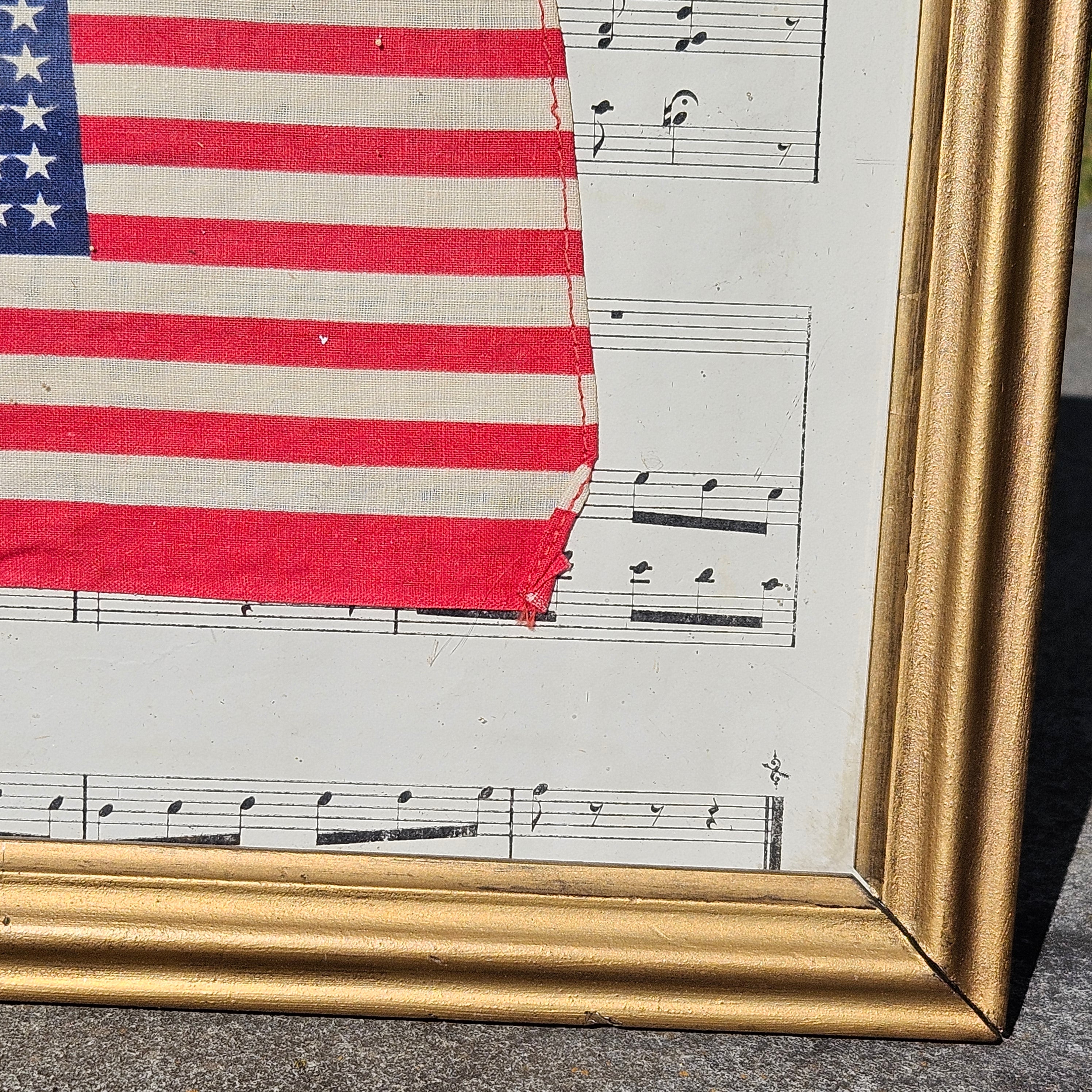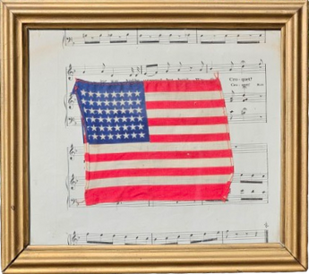 Framed United States Flag in Vintage Frame with Sheet of Music
