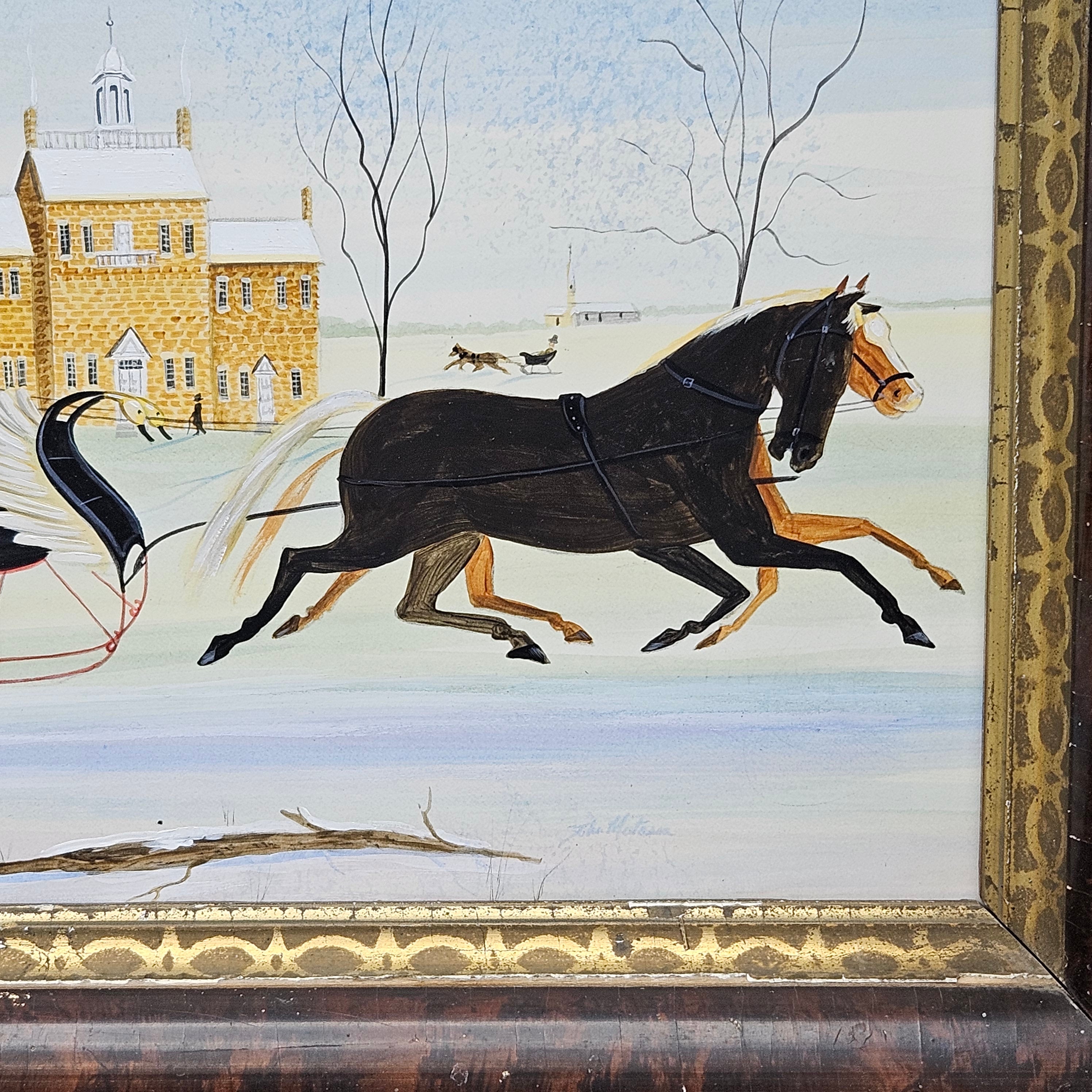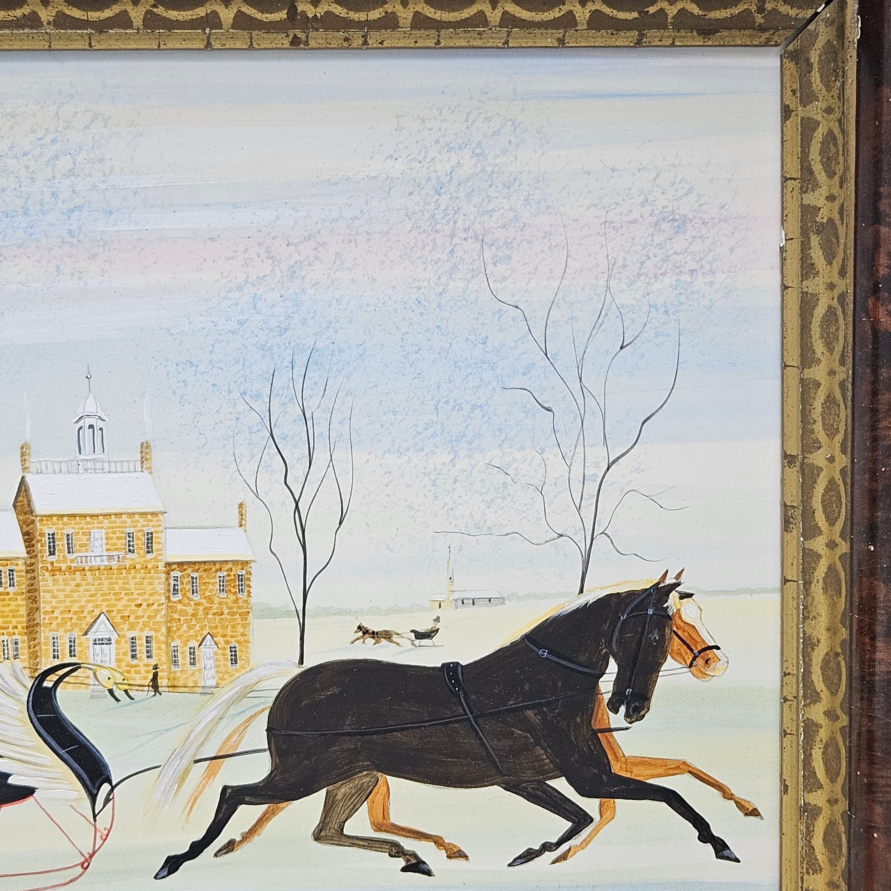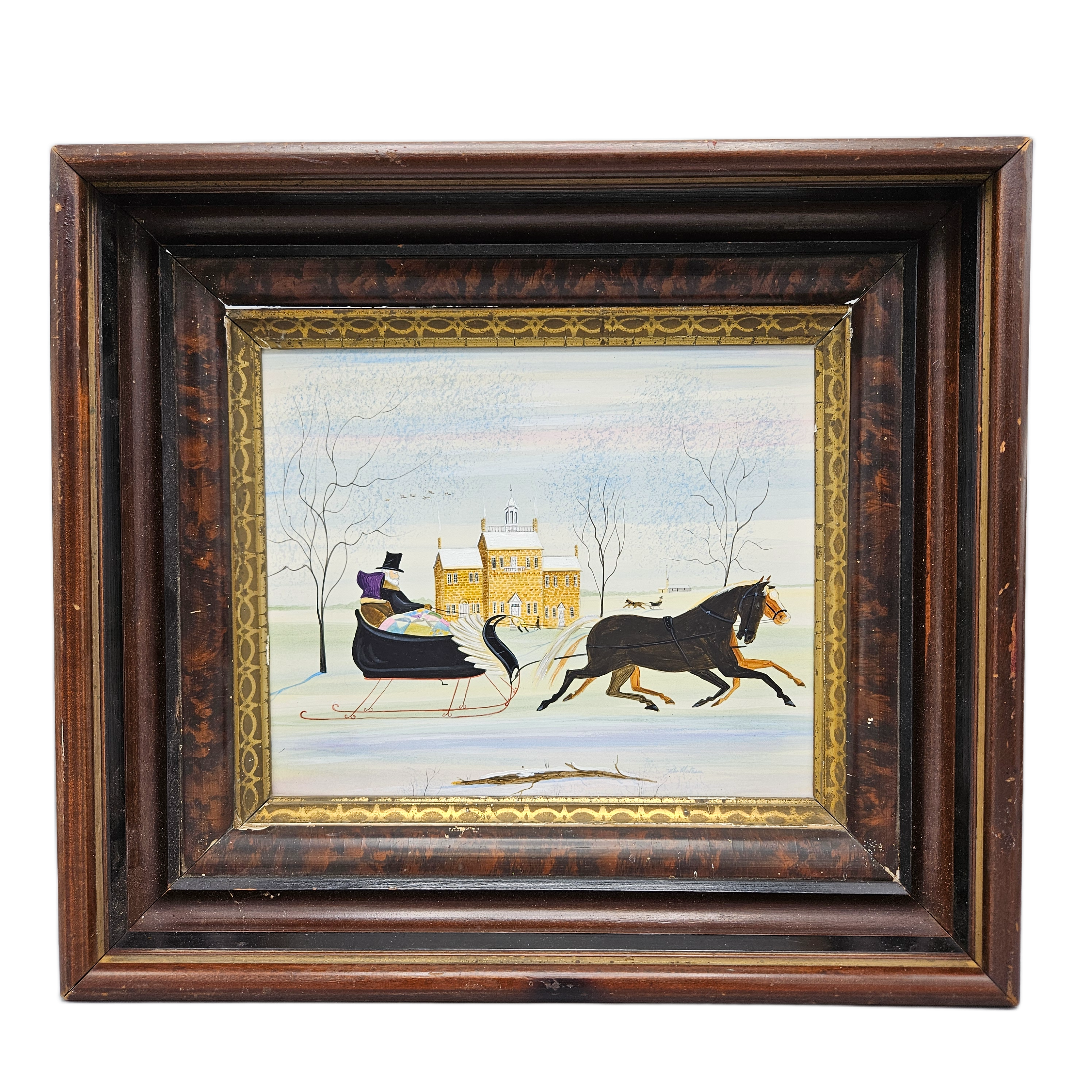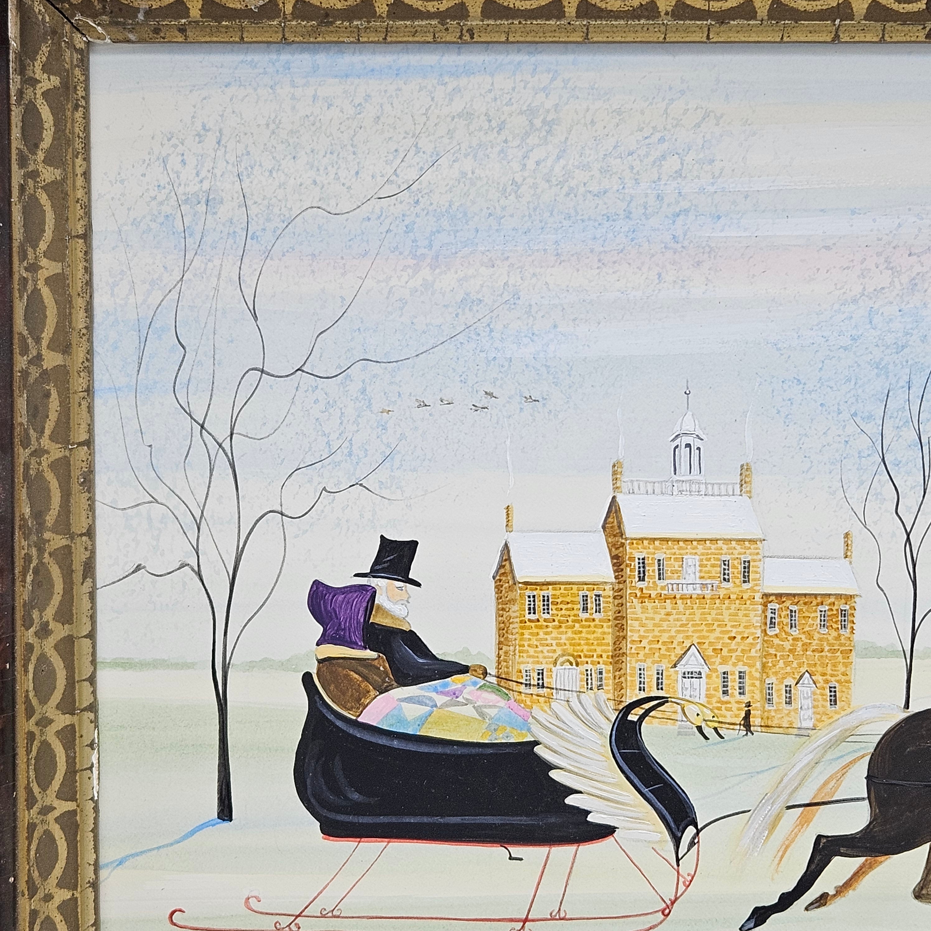 Framed John Matassa (American, 1945–2005) Winter Farm Painting with Horse & Sled
