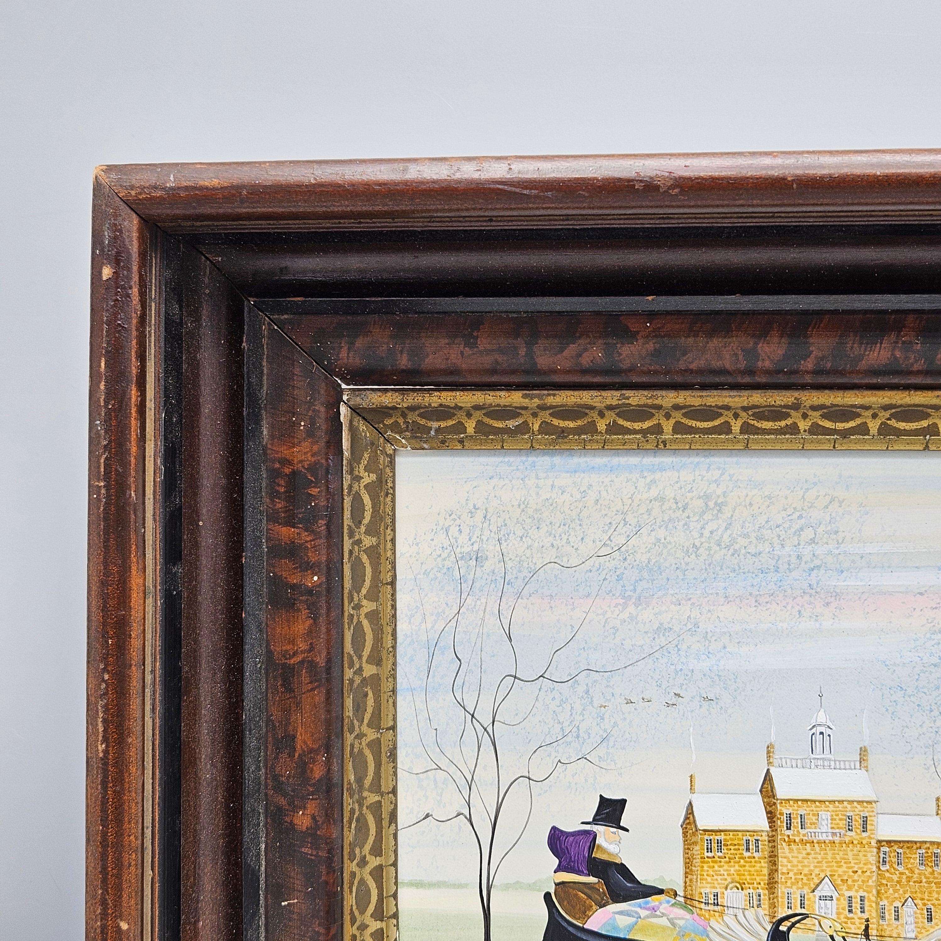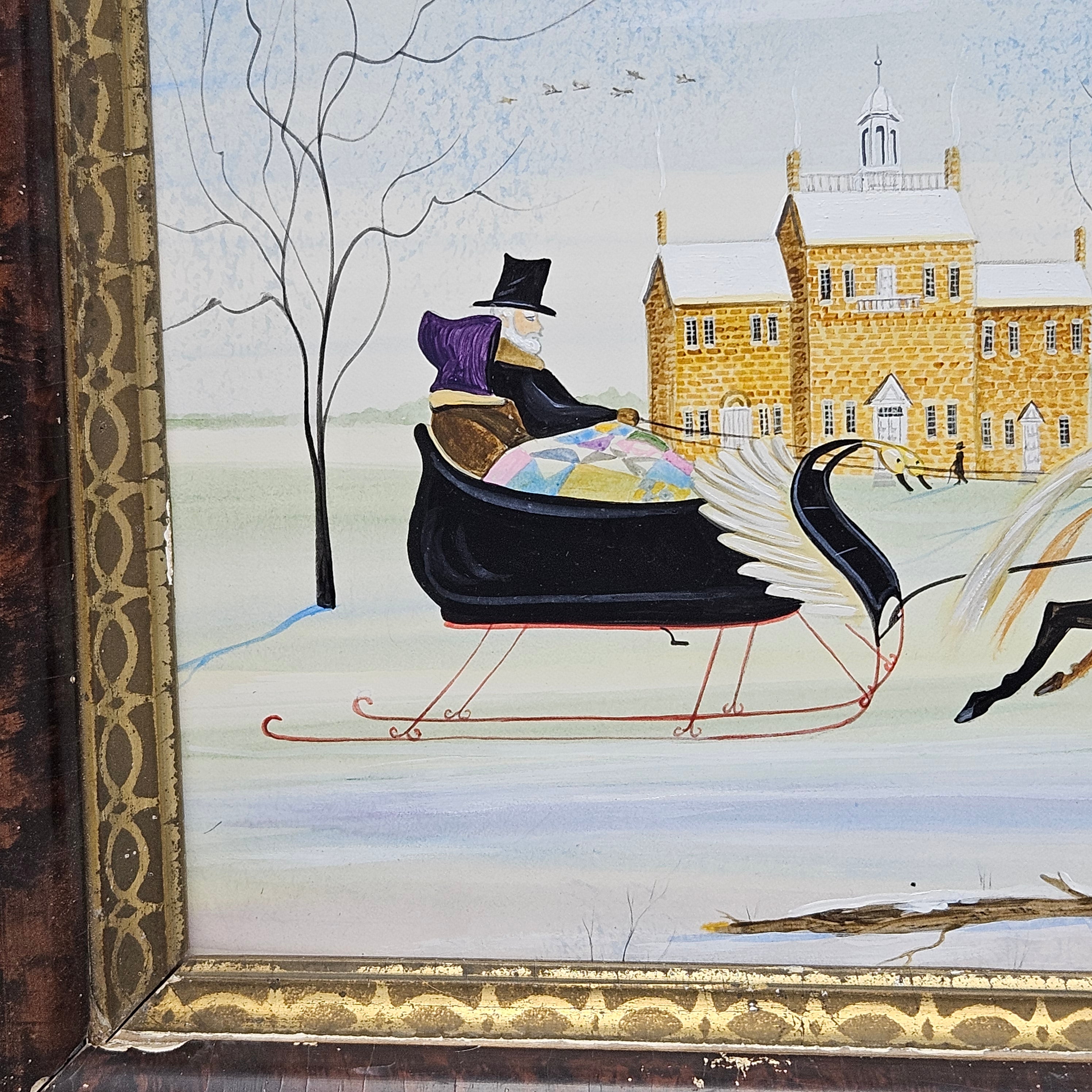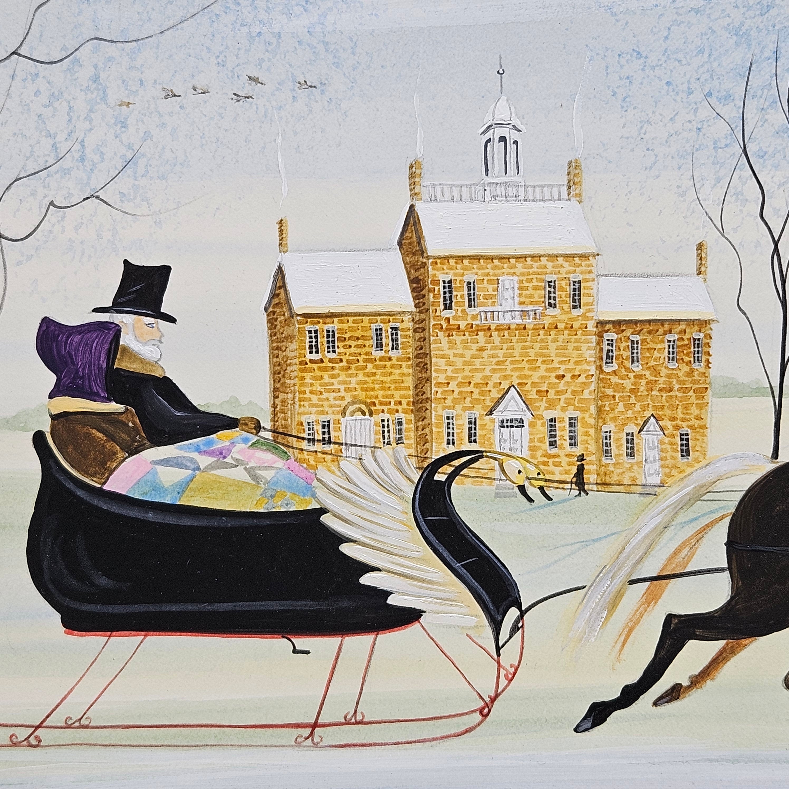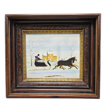 Framed John Matassa (American, 1945–2005) Winter Farm Painting with Horse & Sled