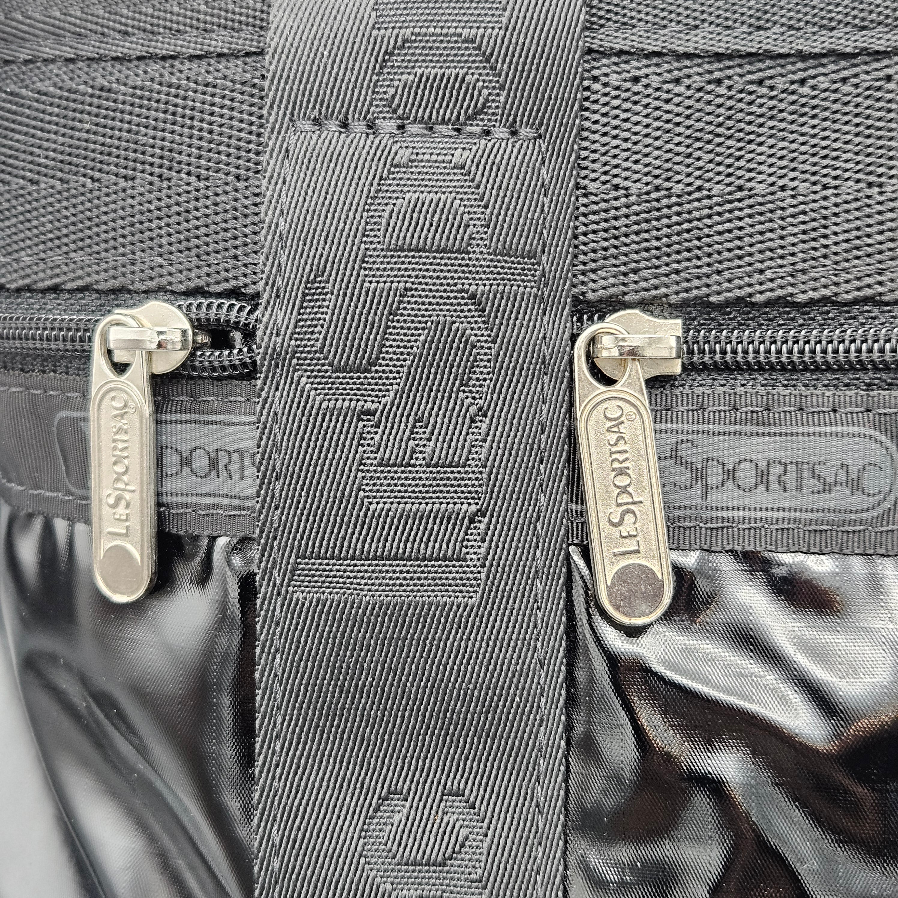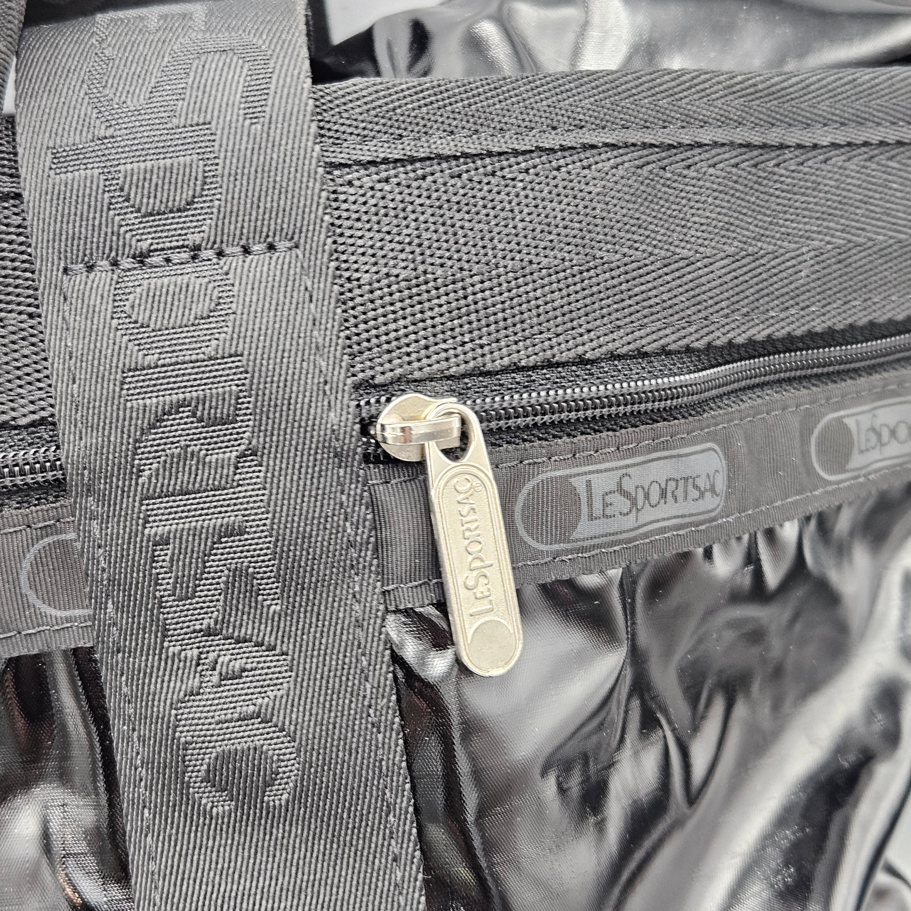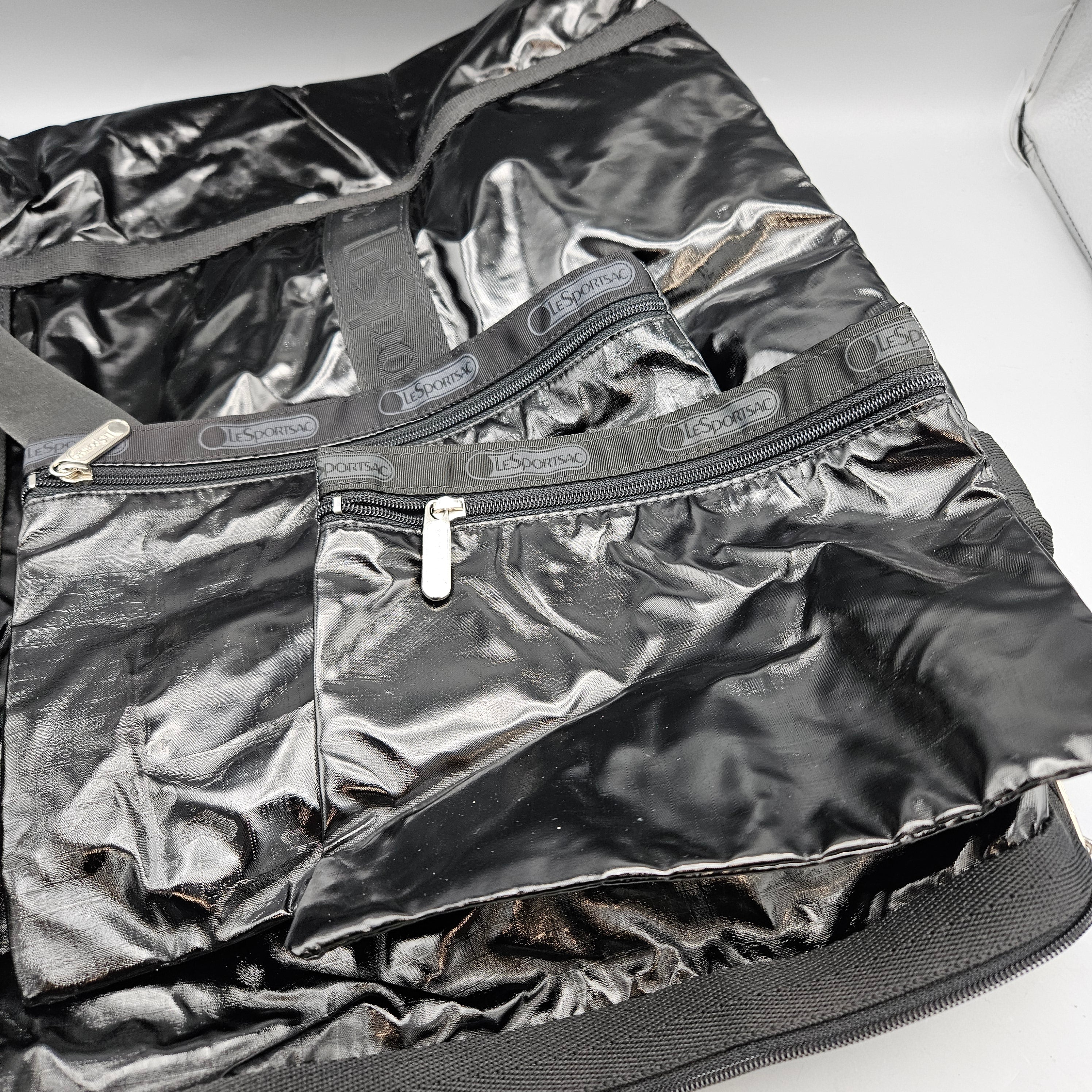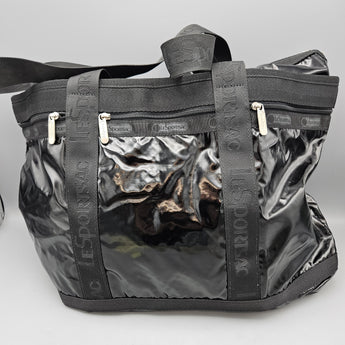 LeSportsac Black Patent Look Weekend Travel Tote Bag