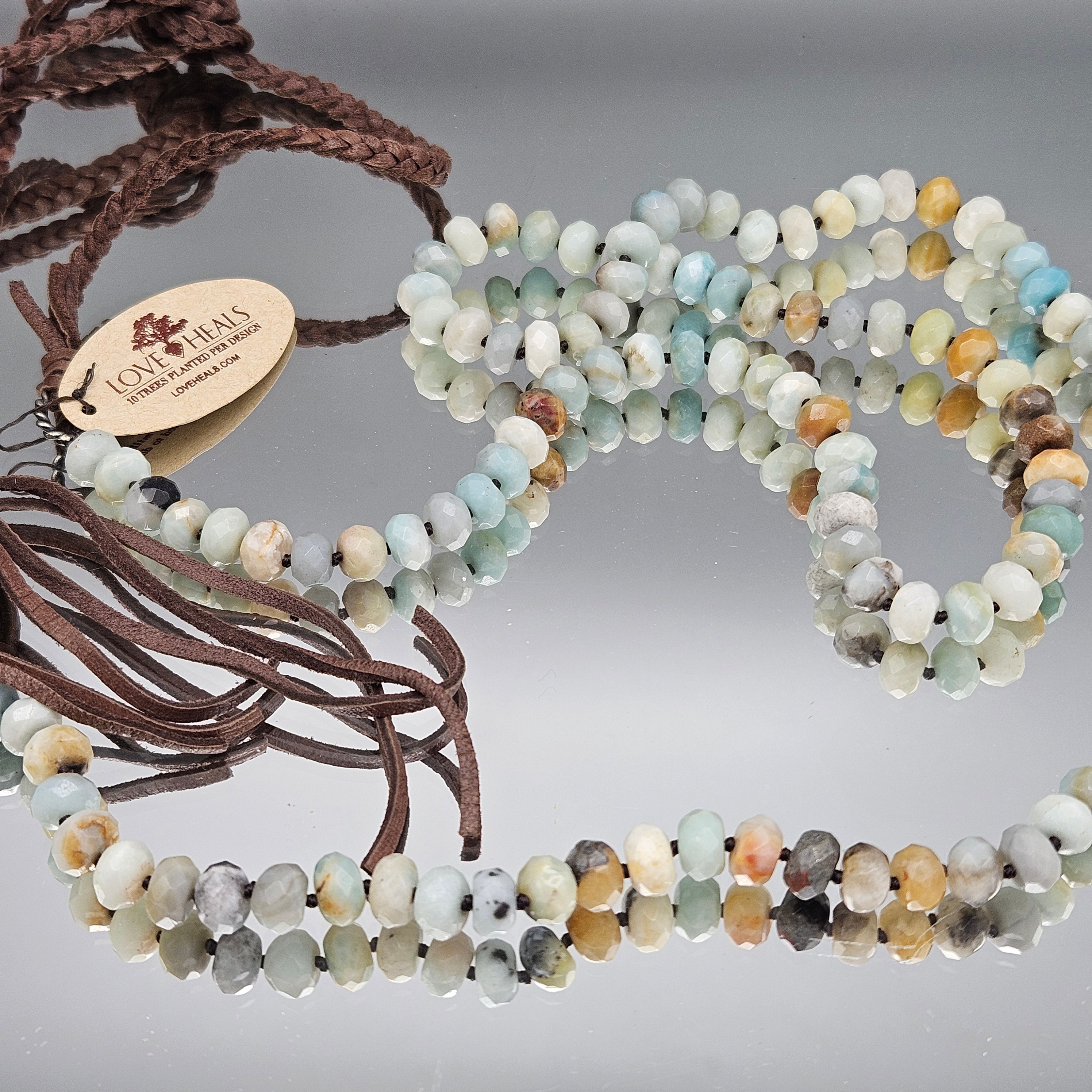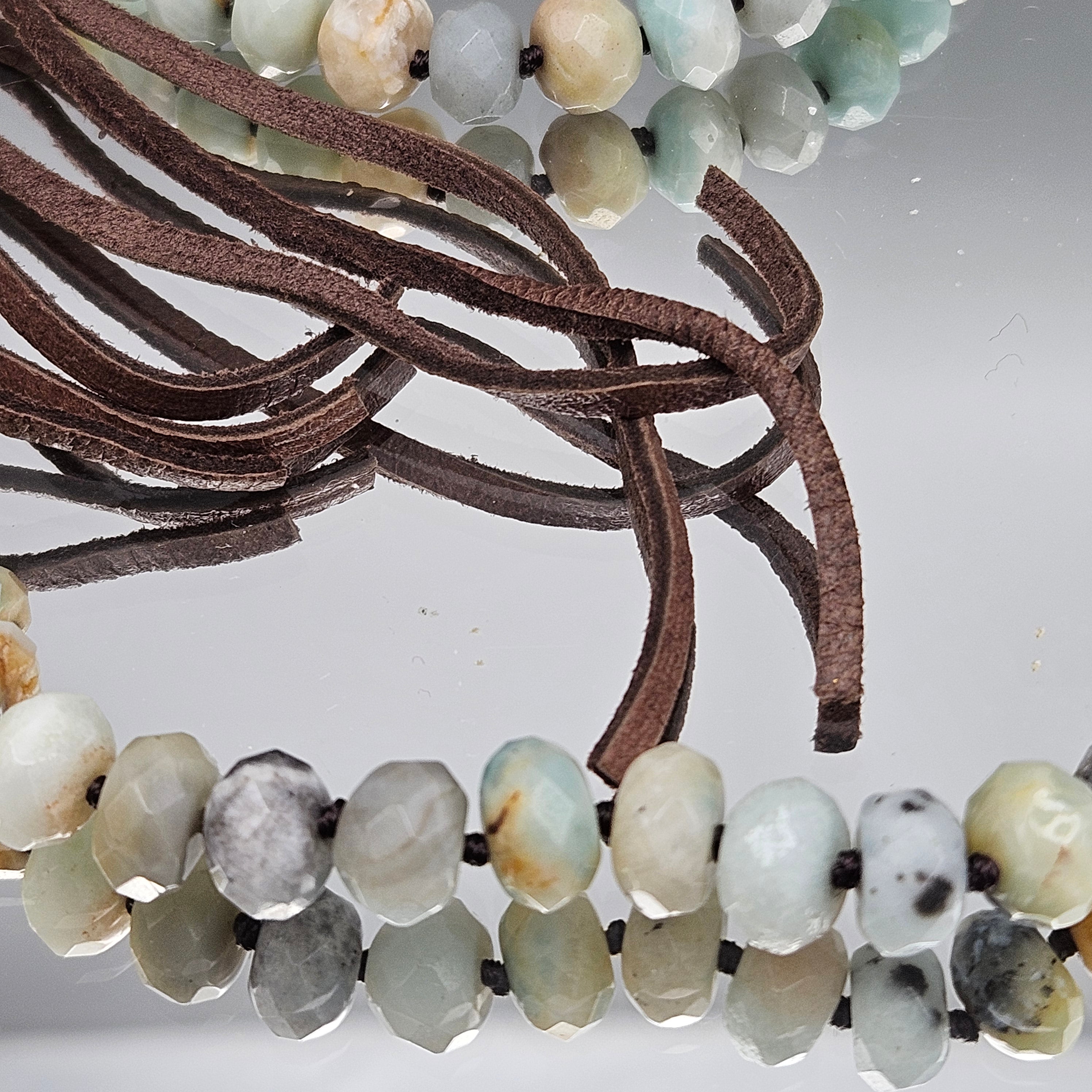 - The necklace is very long but can be adjusted by tying the leather cord to your desired length. It can be doubled around your neck for a layered look.