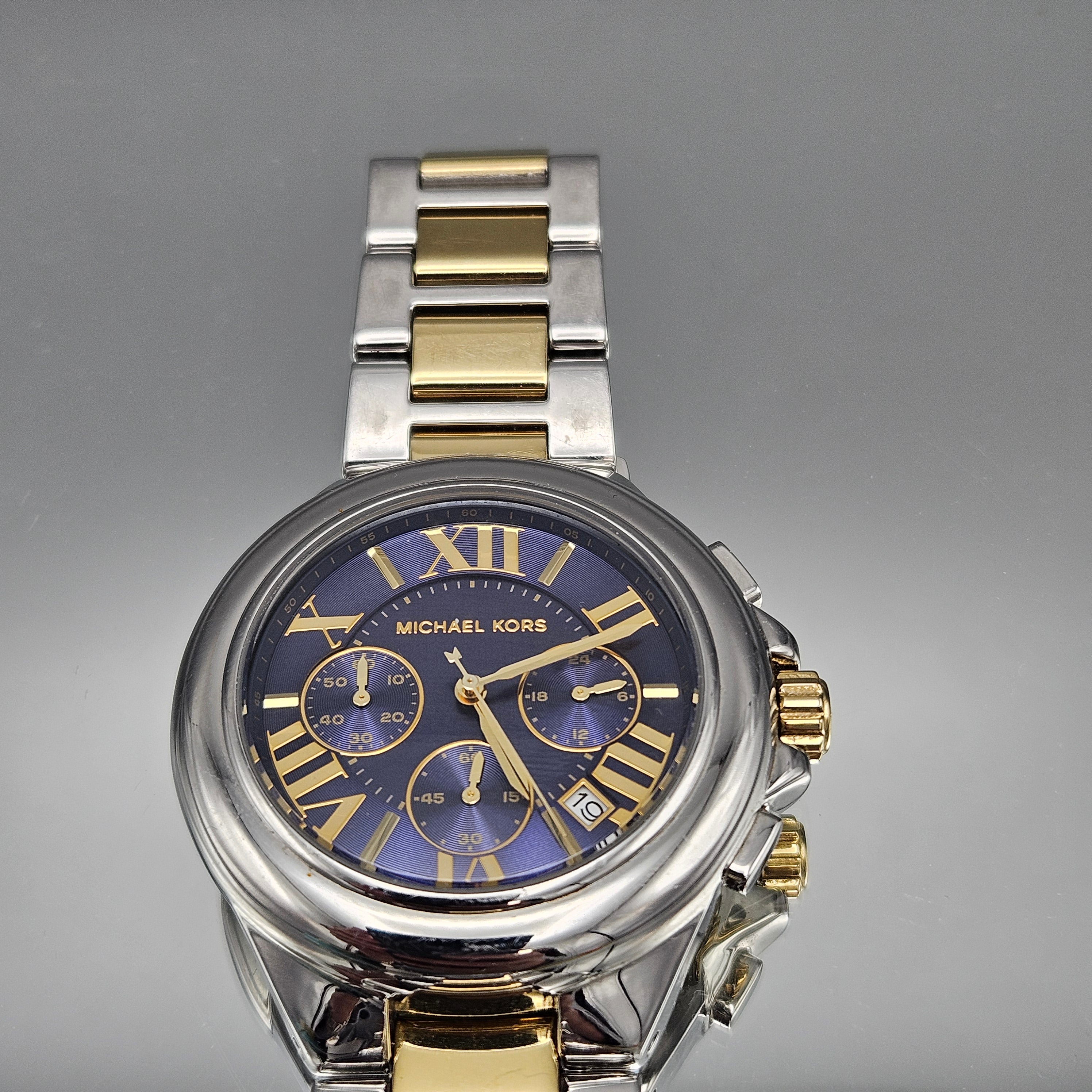 Michael Kors MK5758 Camille Navy Blue Dial Two Tone Bracelet Chronograph Watch
