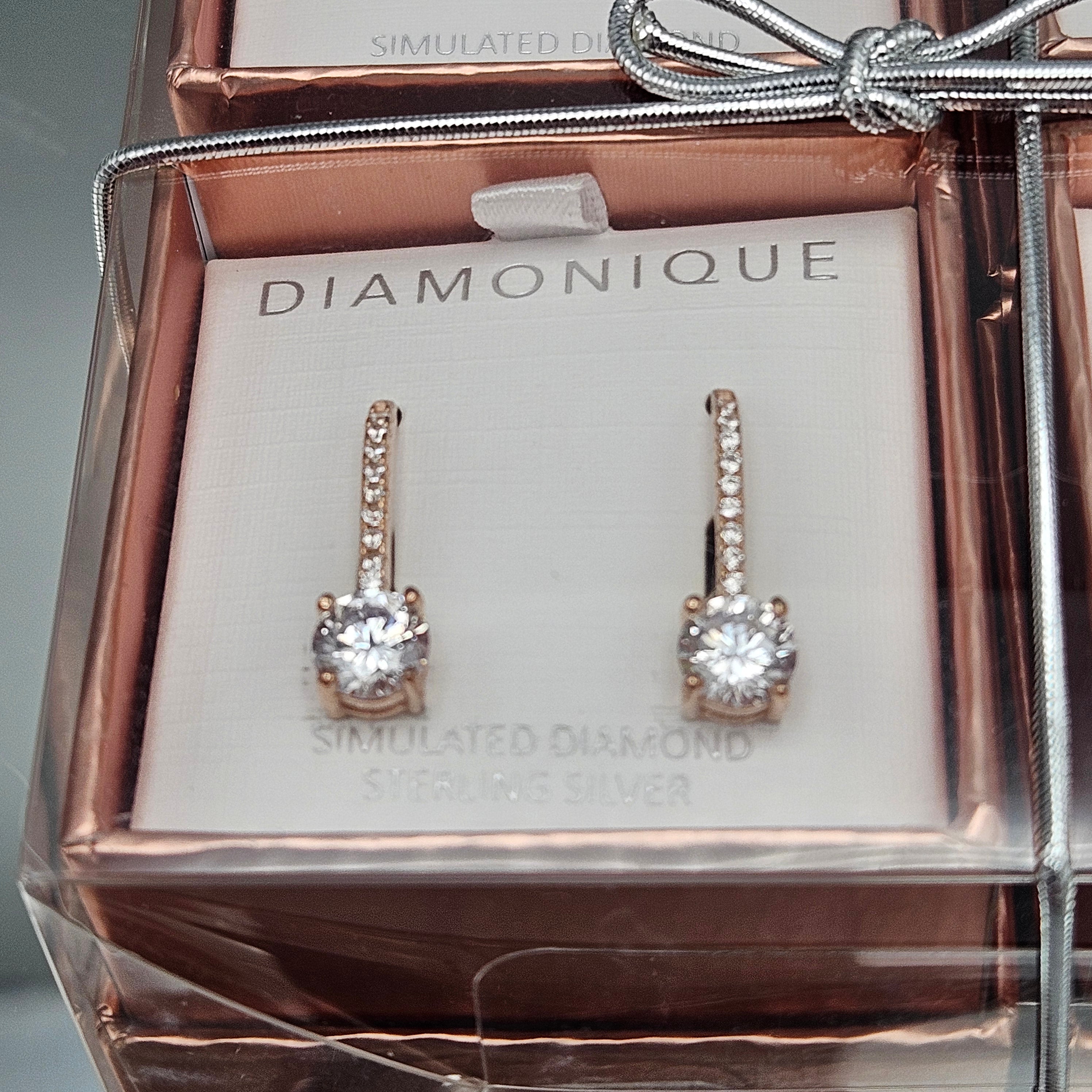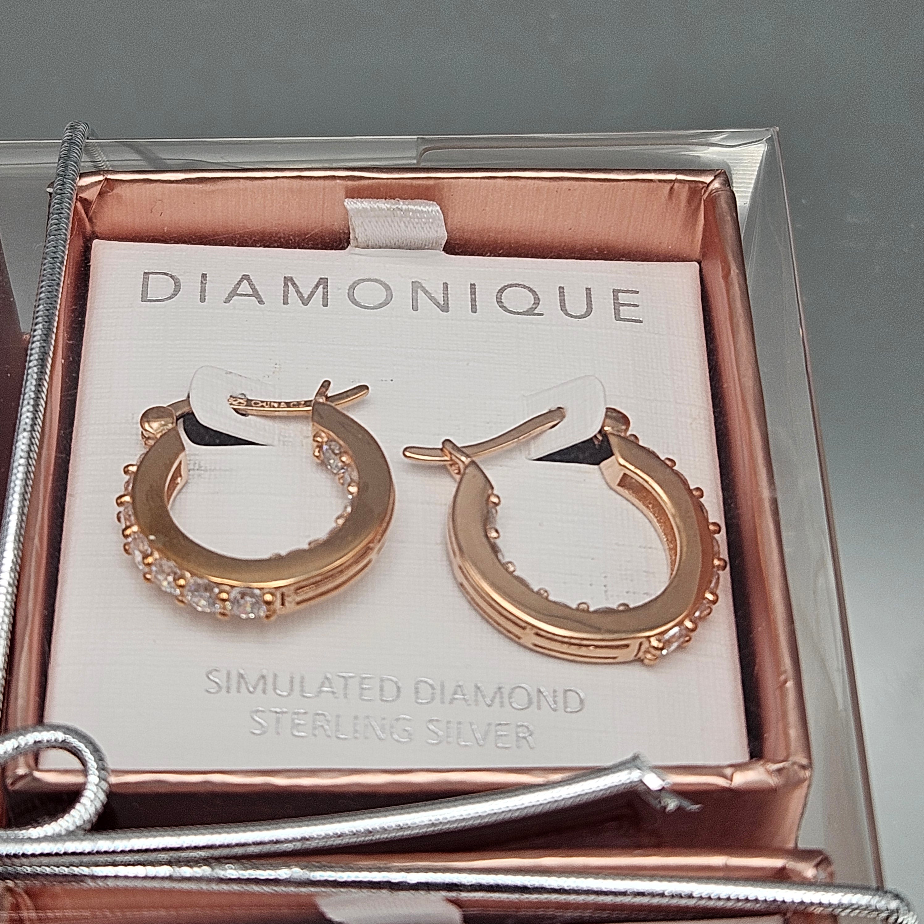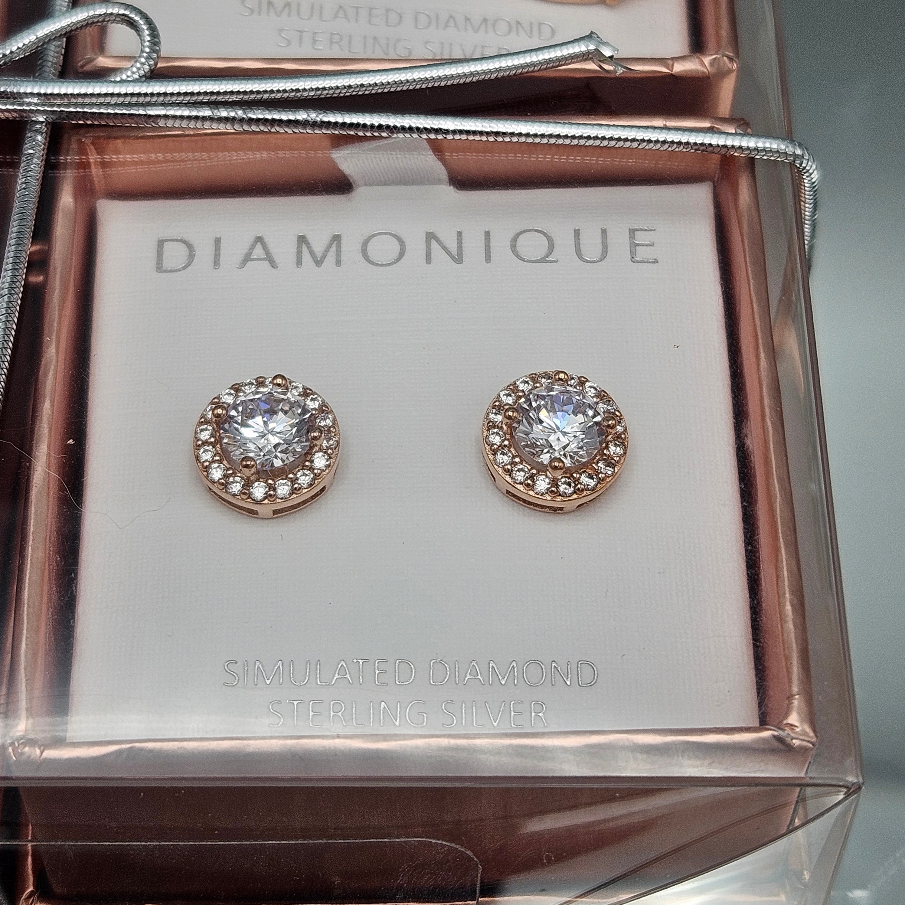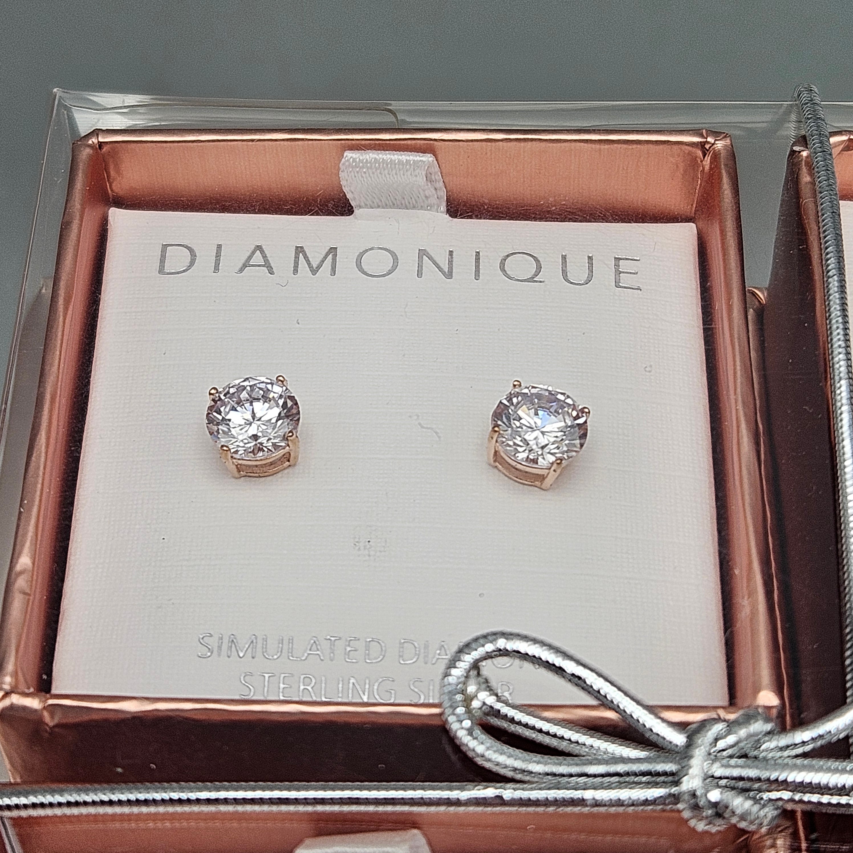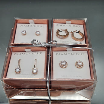 Set of 4 QVC Diamonique 18K Rose Gold-Plated Sterling Silver Cubic Zirconia Earrings