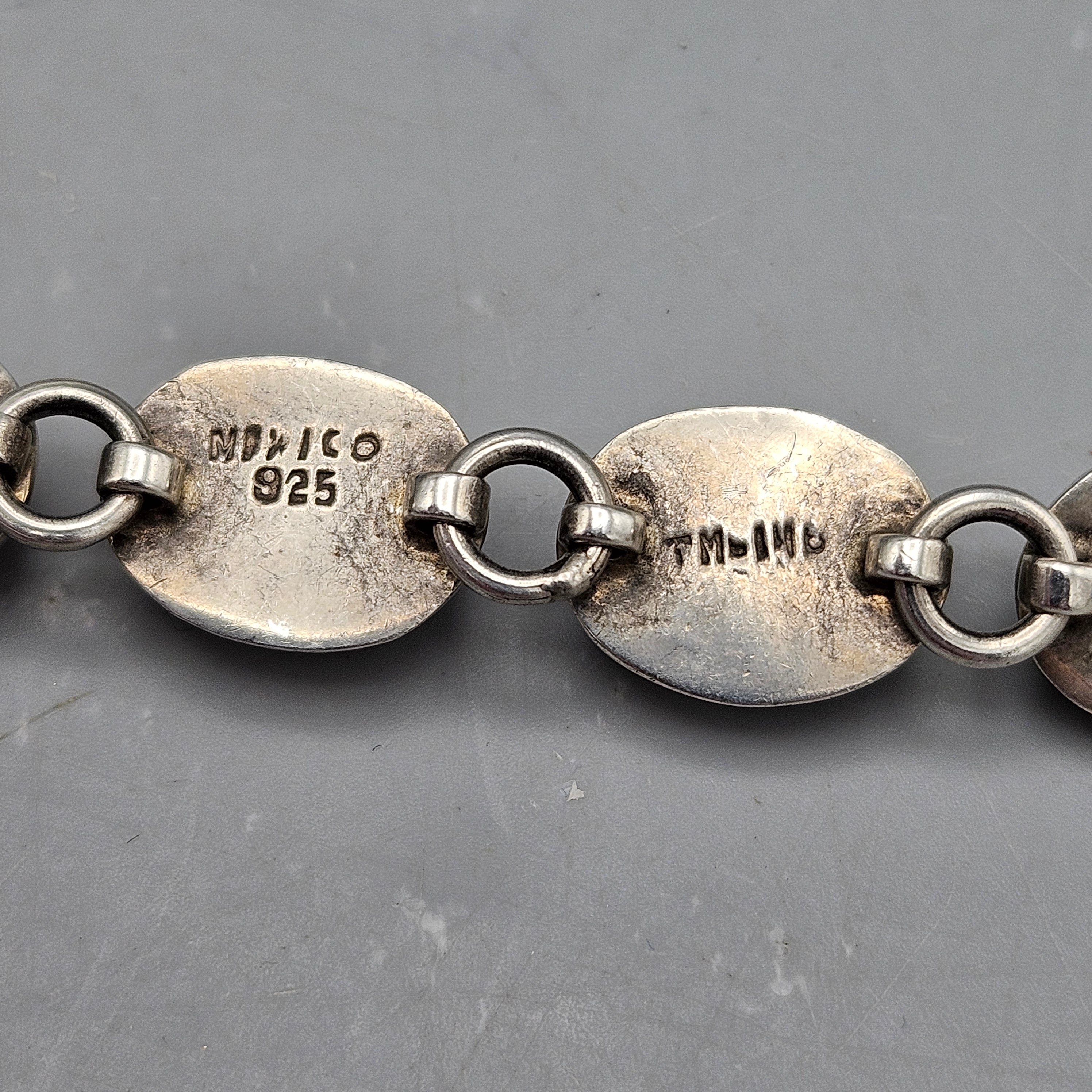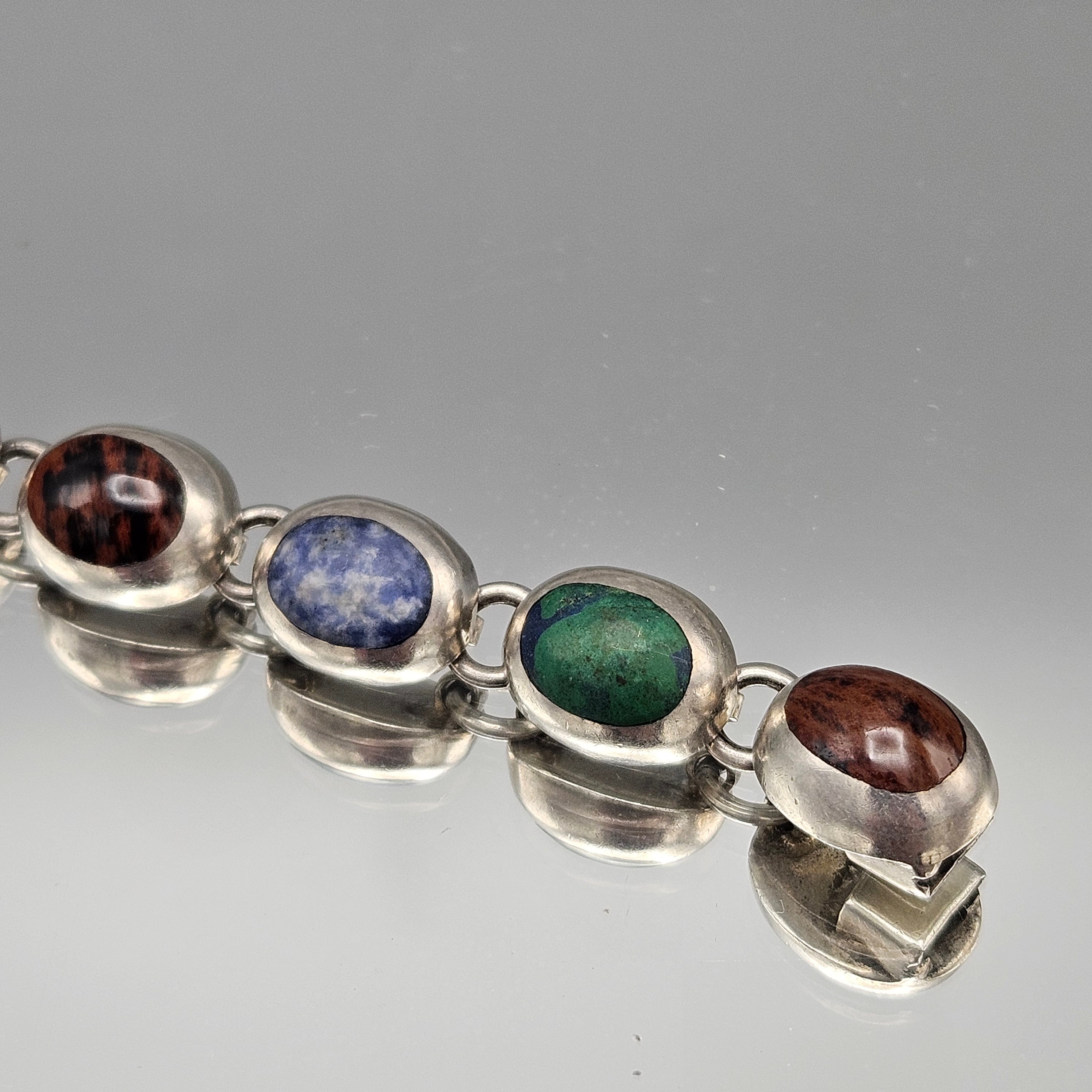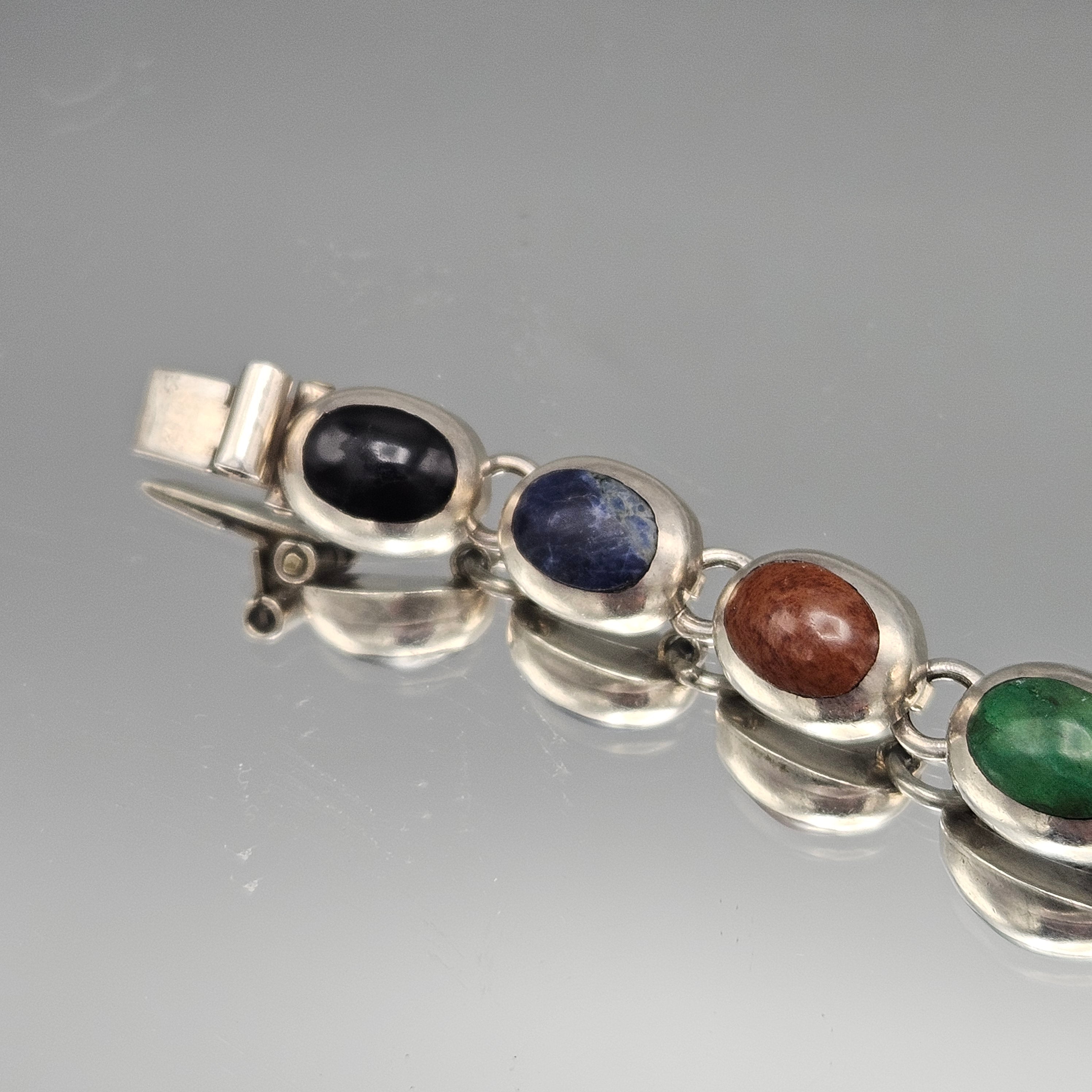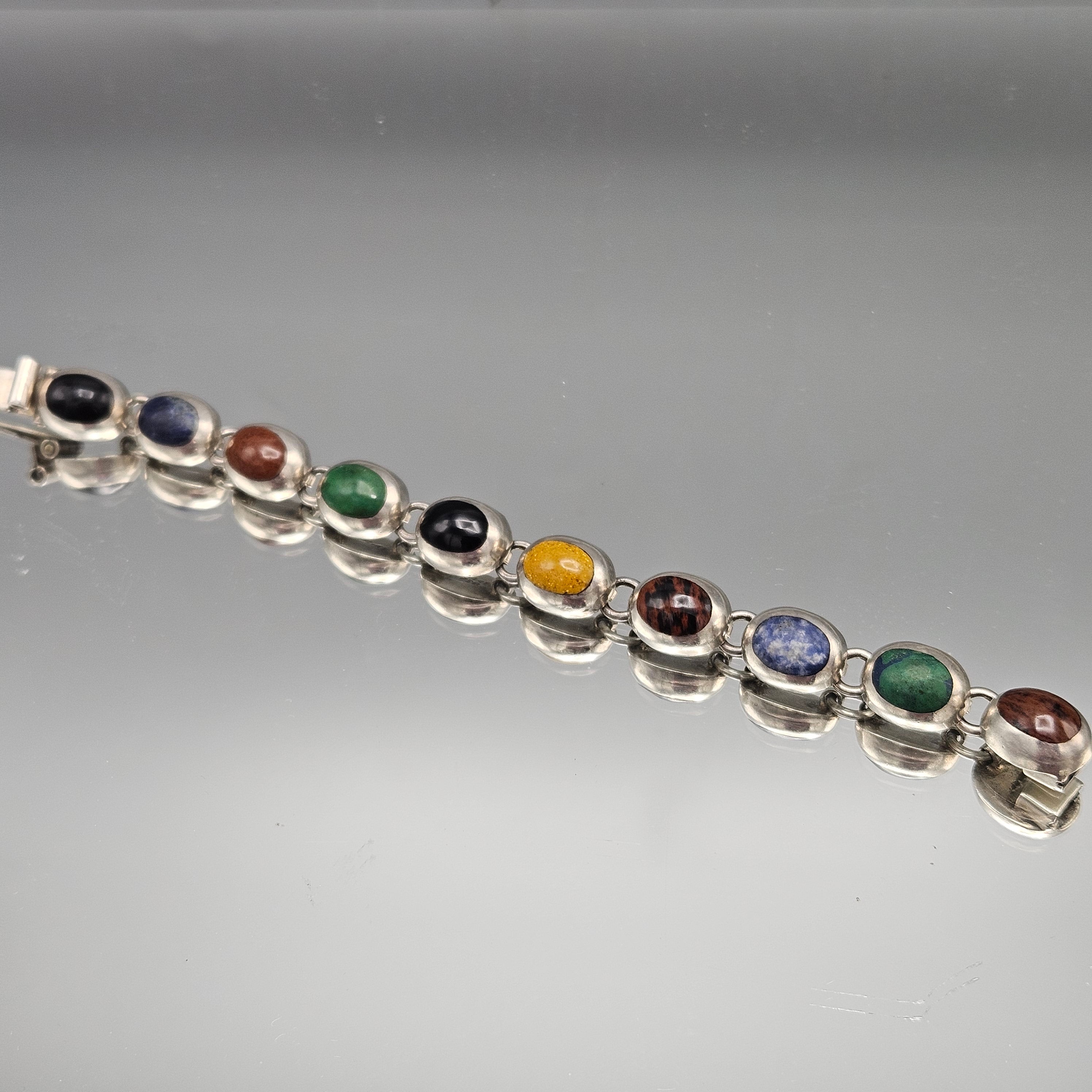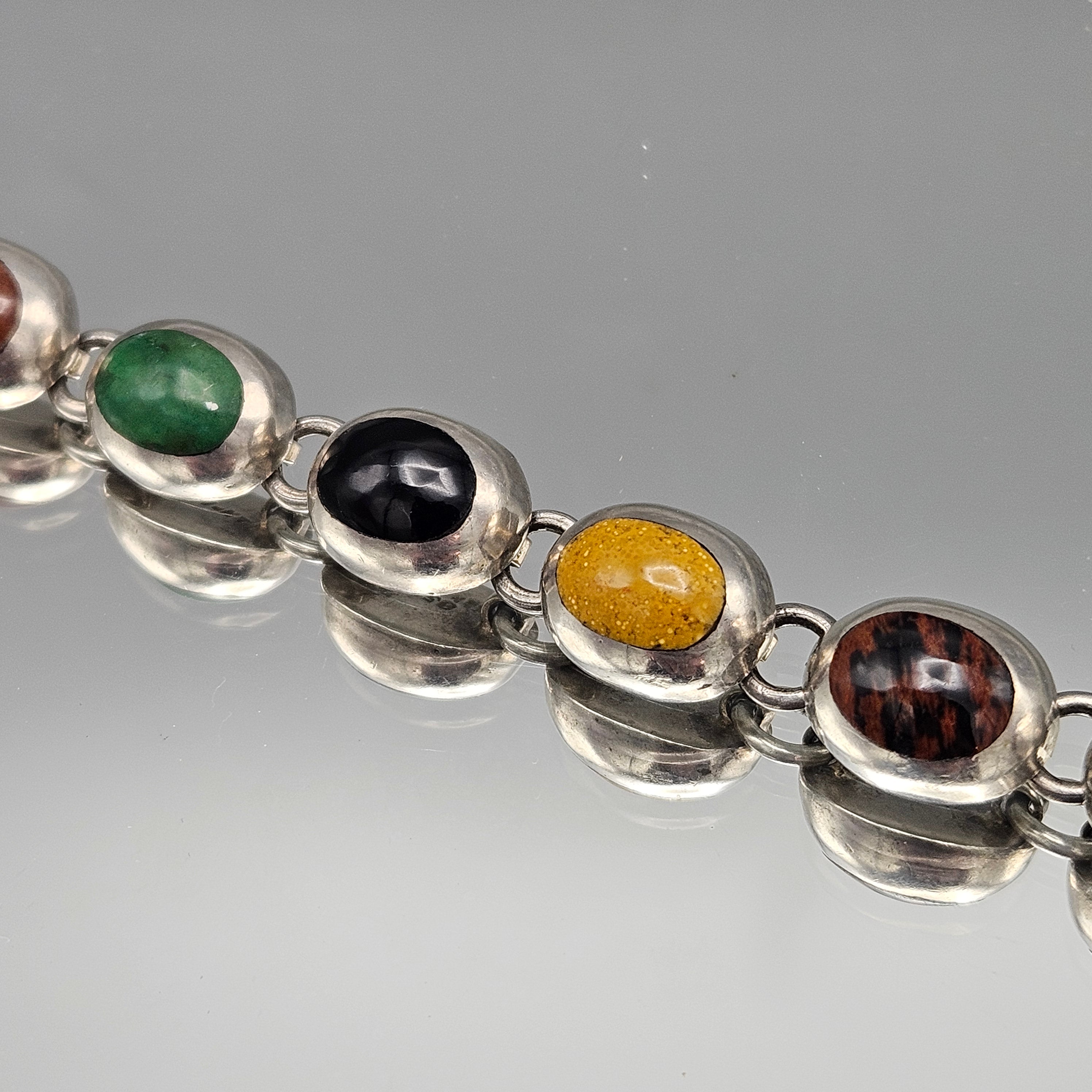 Vintage Mexico Sterling Silver Multi-Gemstone Link Bracelet