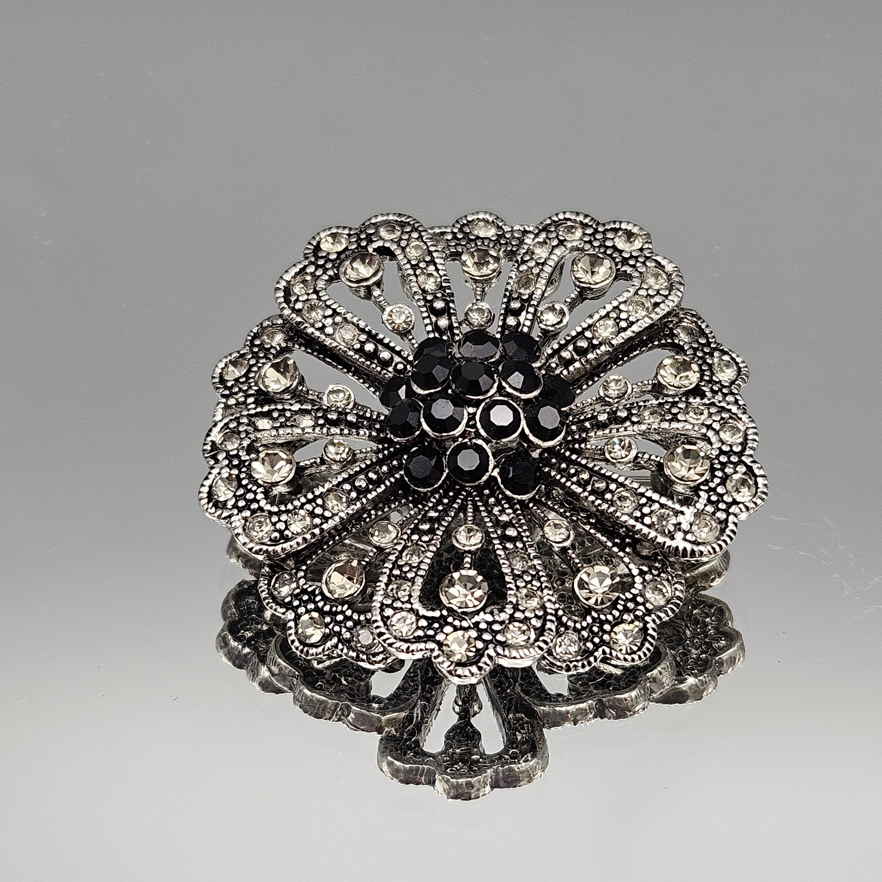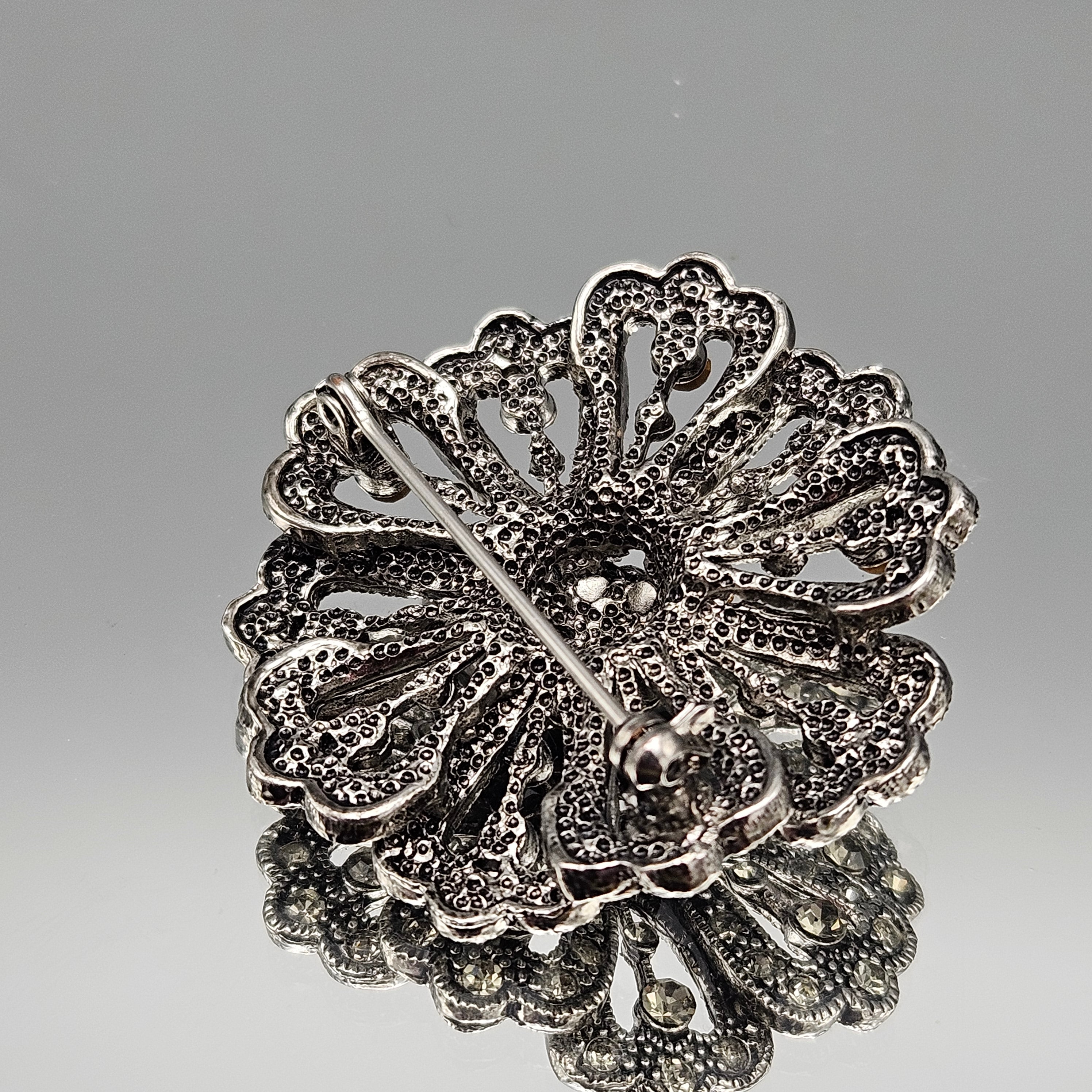 Vintage Silver-Tone Flower Brooch with Rhinestone Accents