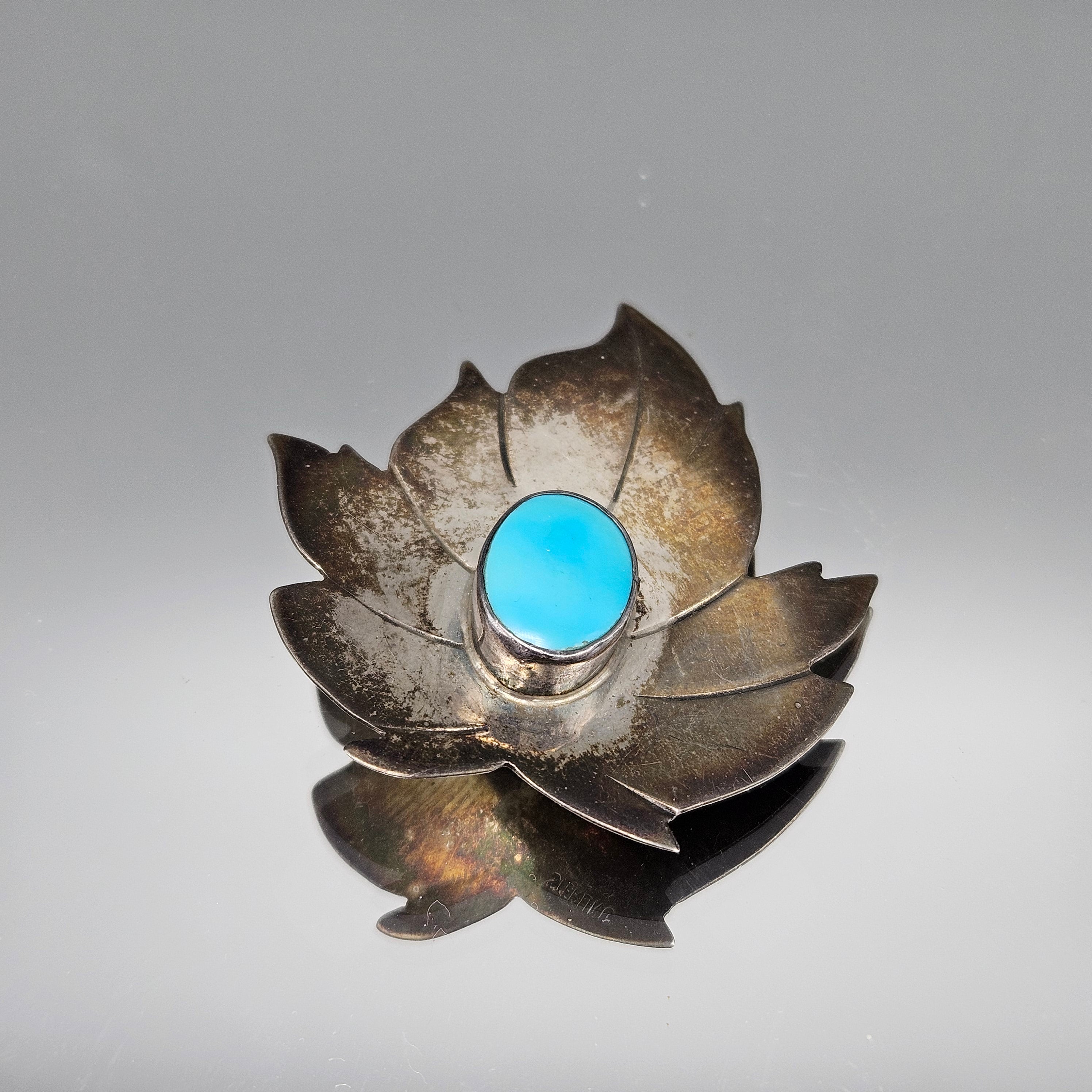 Vintage Sterling Silver and Turquoise Leaf Brooch