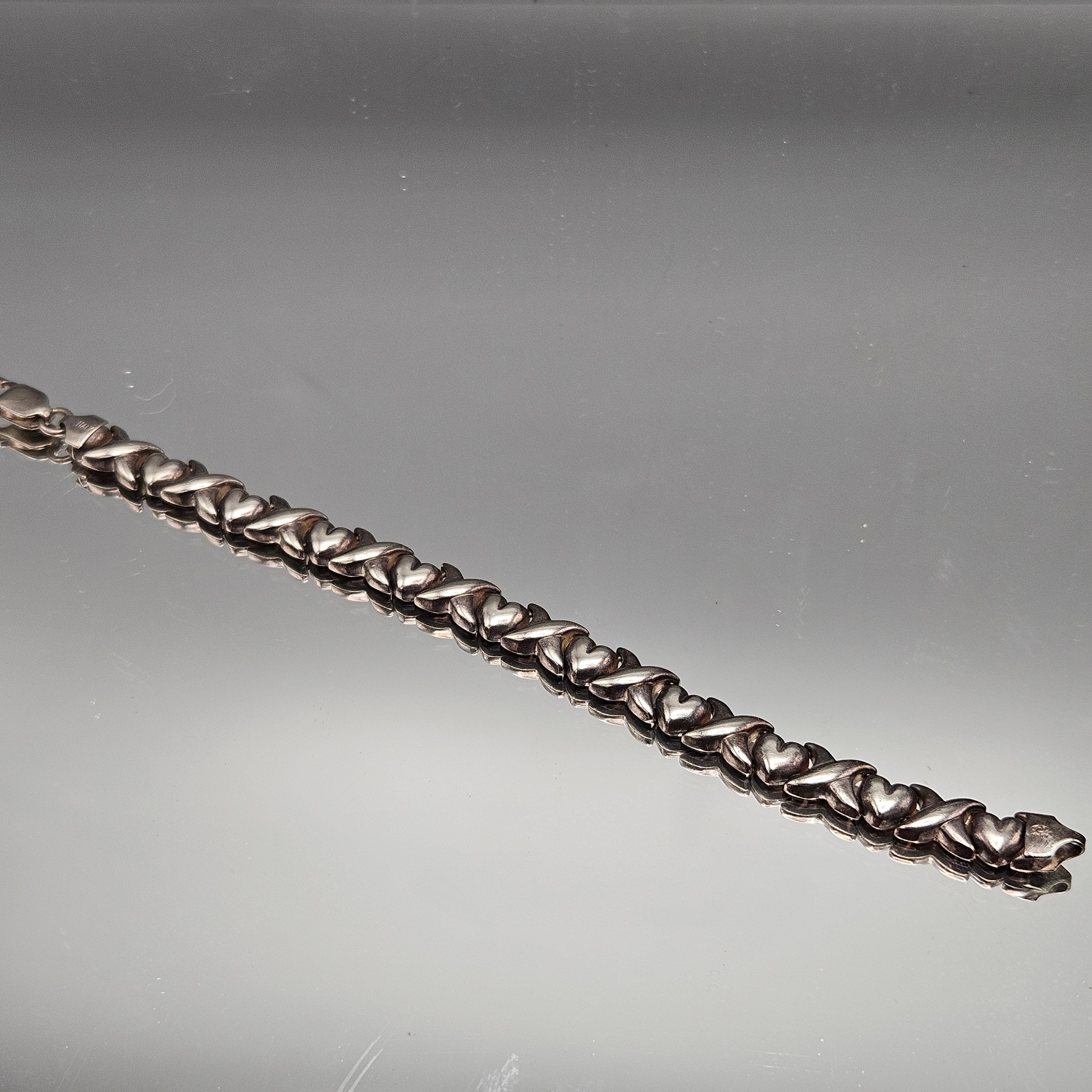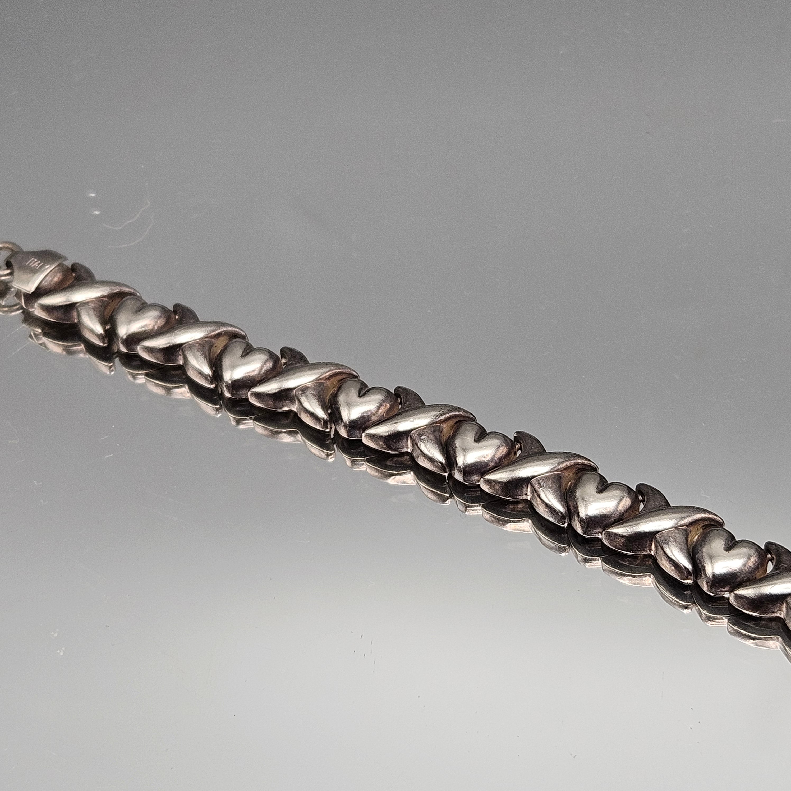 Vintage Sterling Silver Heart and Cross Link Bracelet