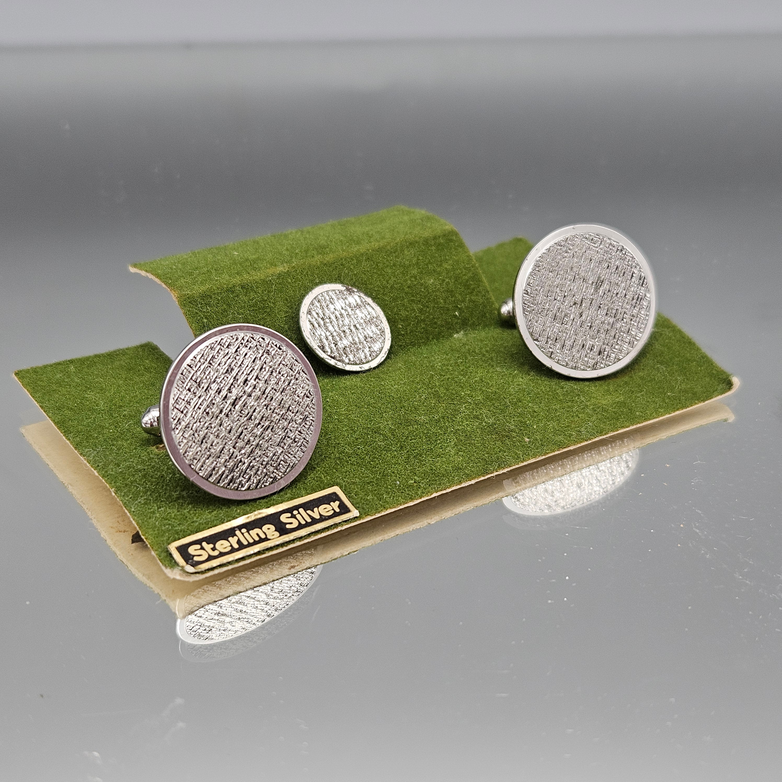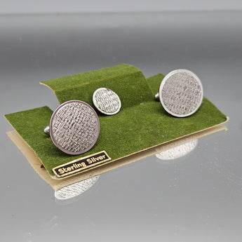 Vintage Sterling Silver Textured Cufflinks & Tie Tack