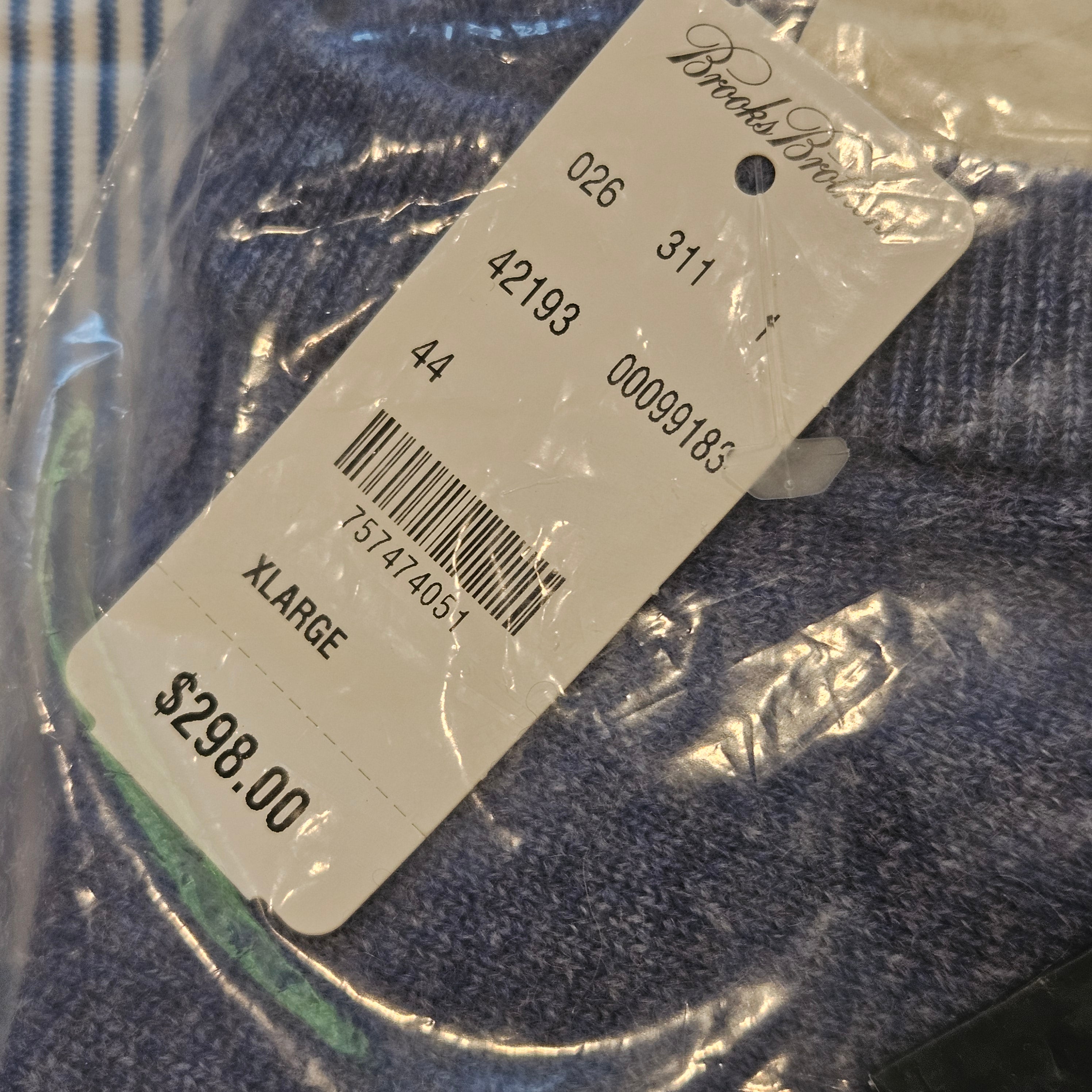 Brooks Brothers Light Blue Scottish Cashmere V-Neck Sweater - Size XL
