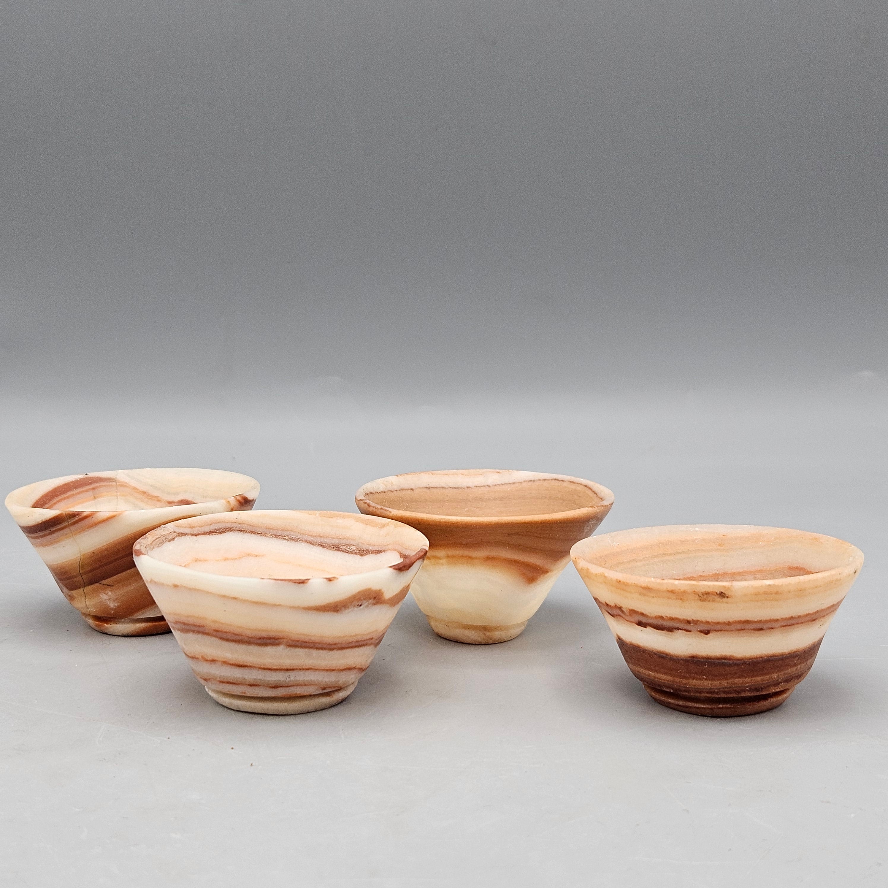 - Comes with 4 cups, 2 1/4" diameter & 1" tall (one has hairline, see photo)