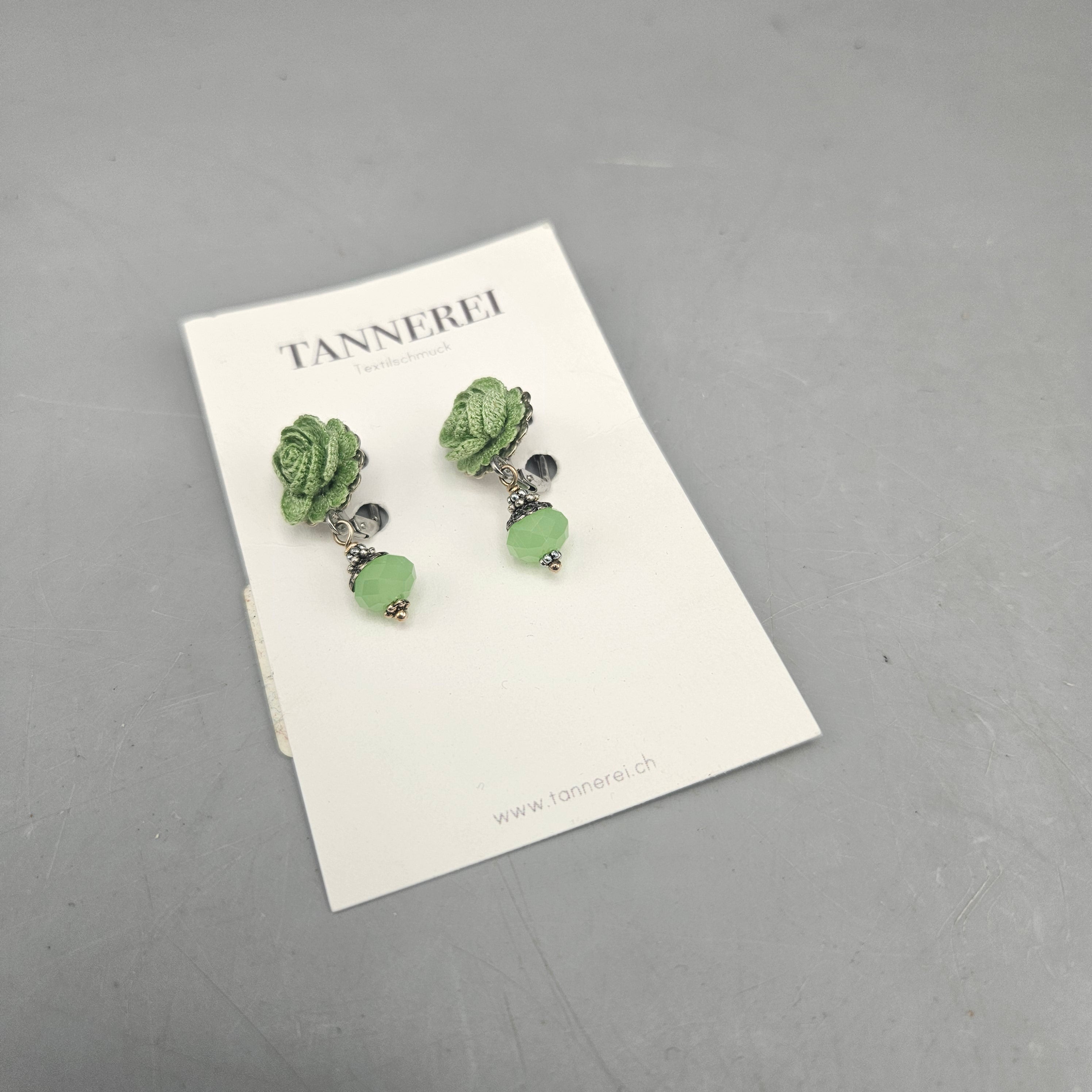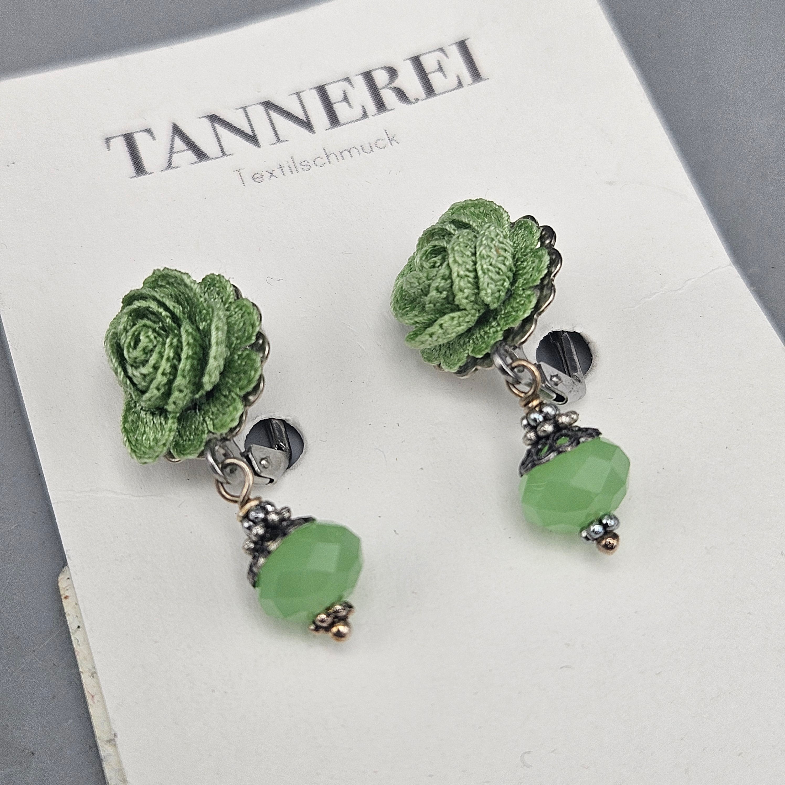 Tannerei (Sabrina Tanner) Jade Green Crocheted Rose Earrings