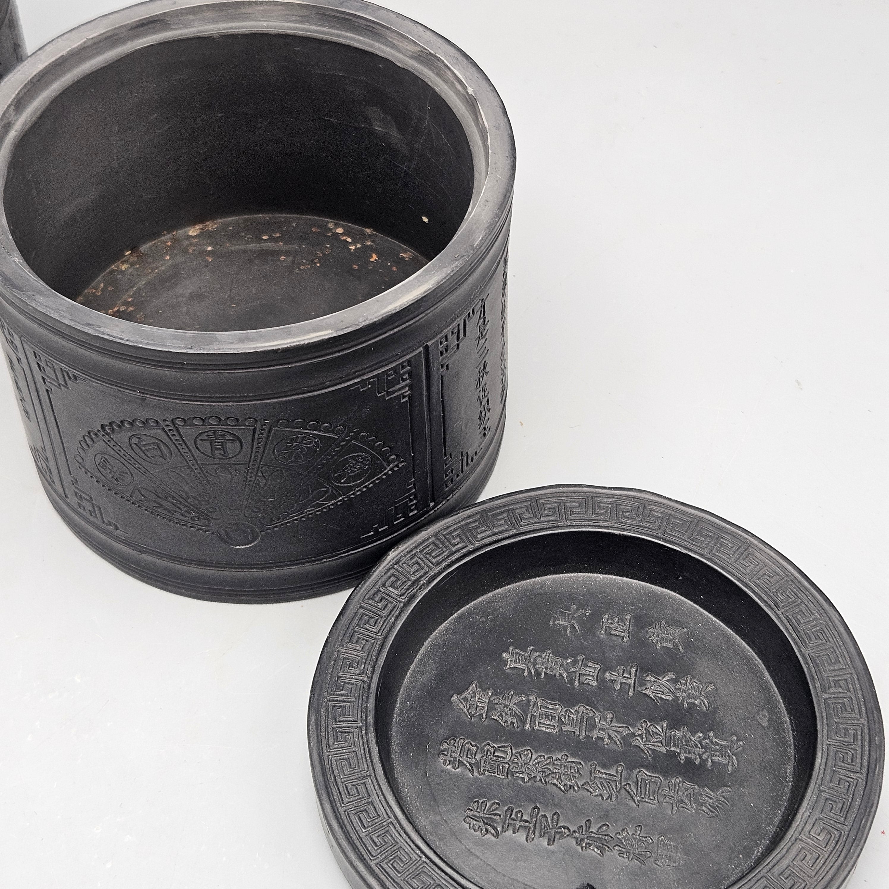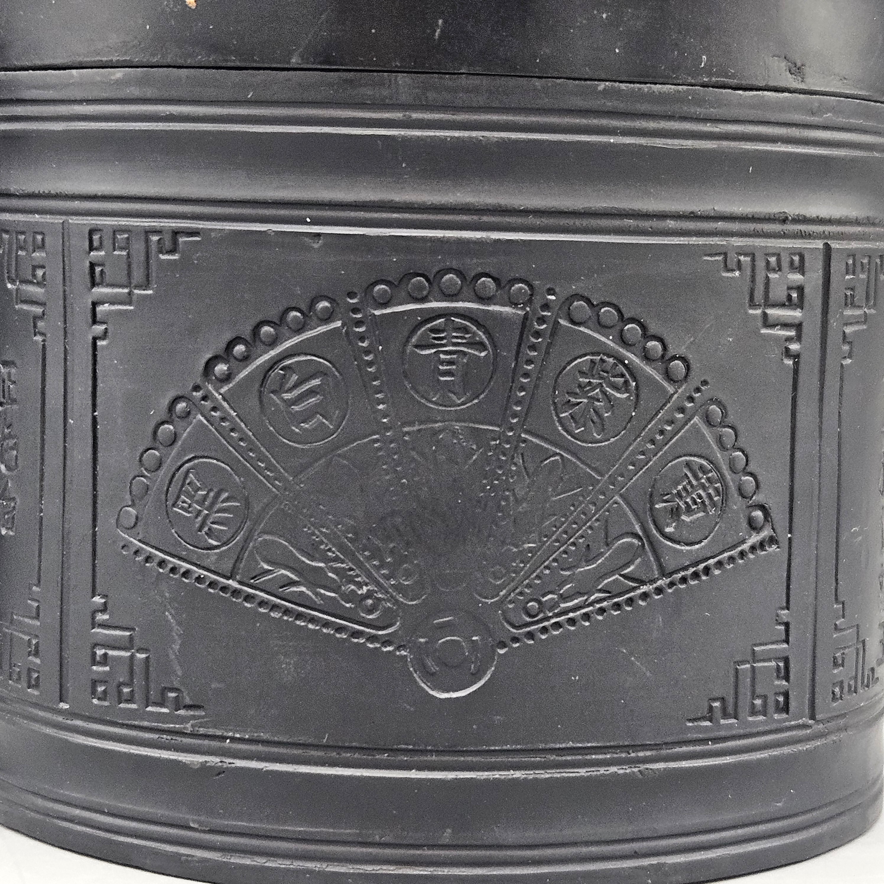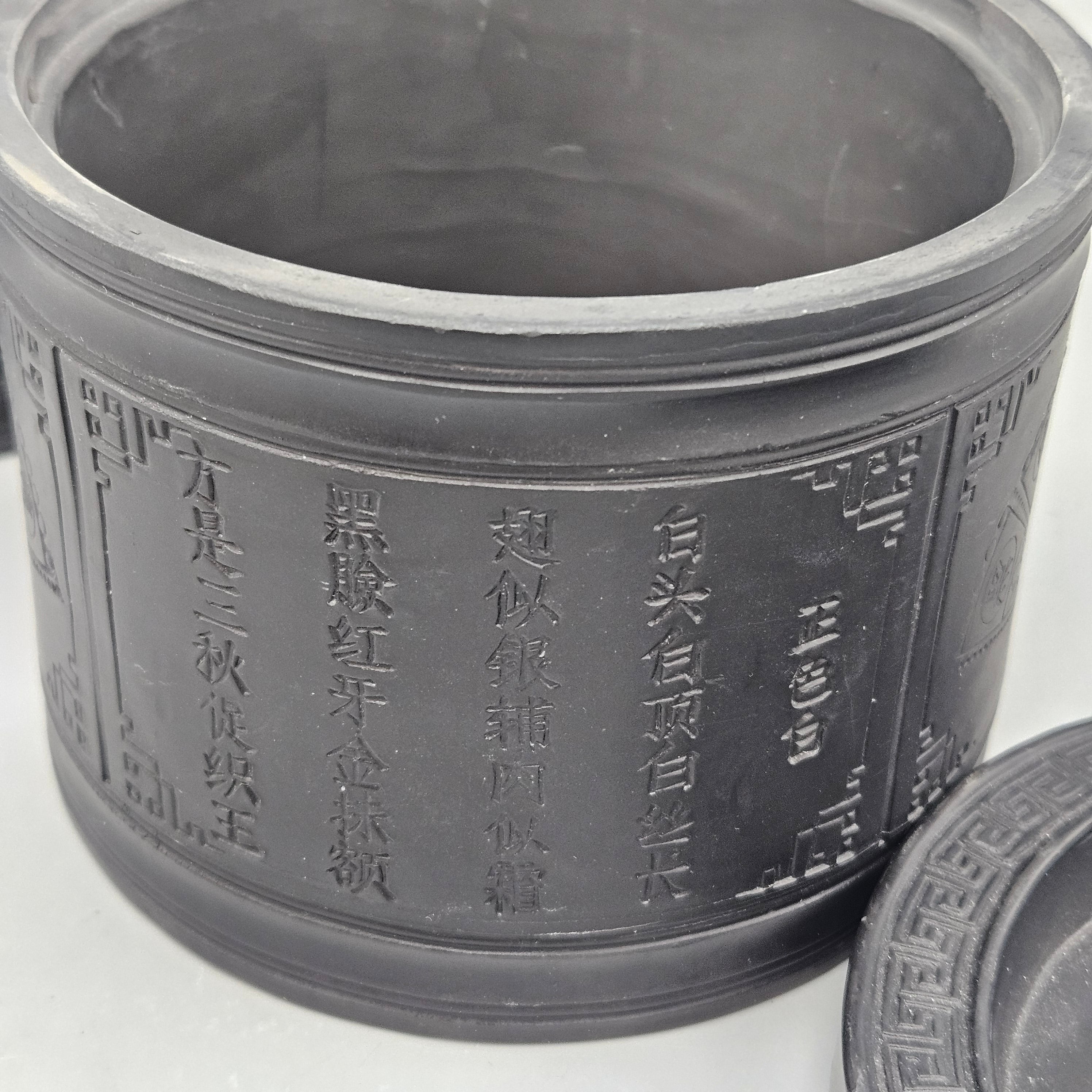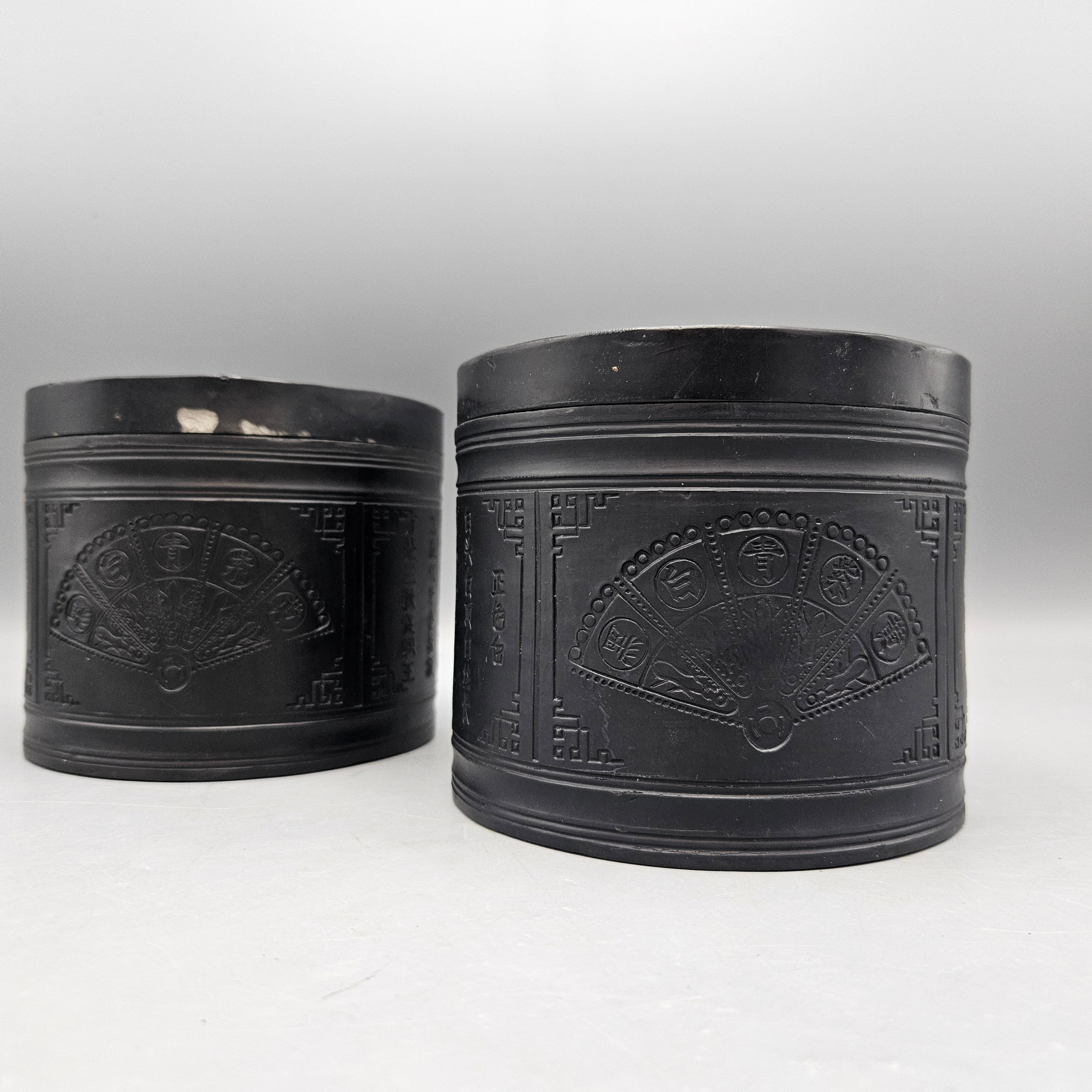 Two Chinese Black Ceramic Tea Caddies
