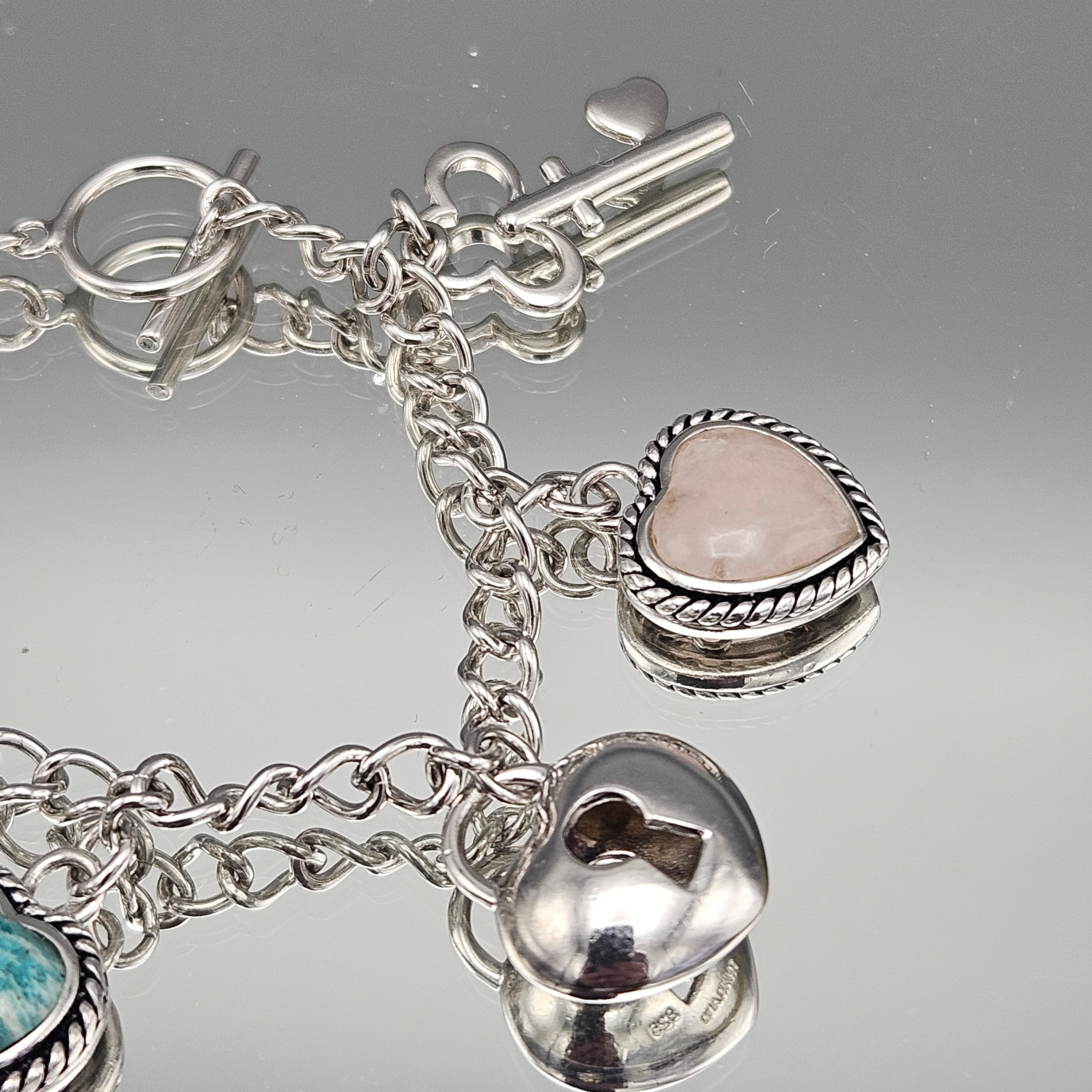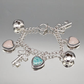 Thailand J&T Sterling Silver Heart Theme Charm Bracelet
