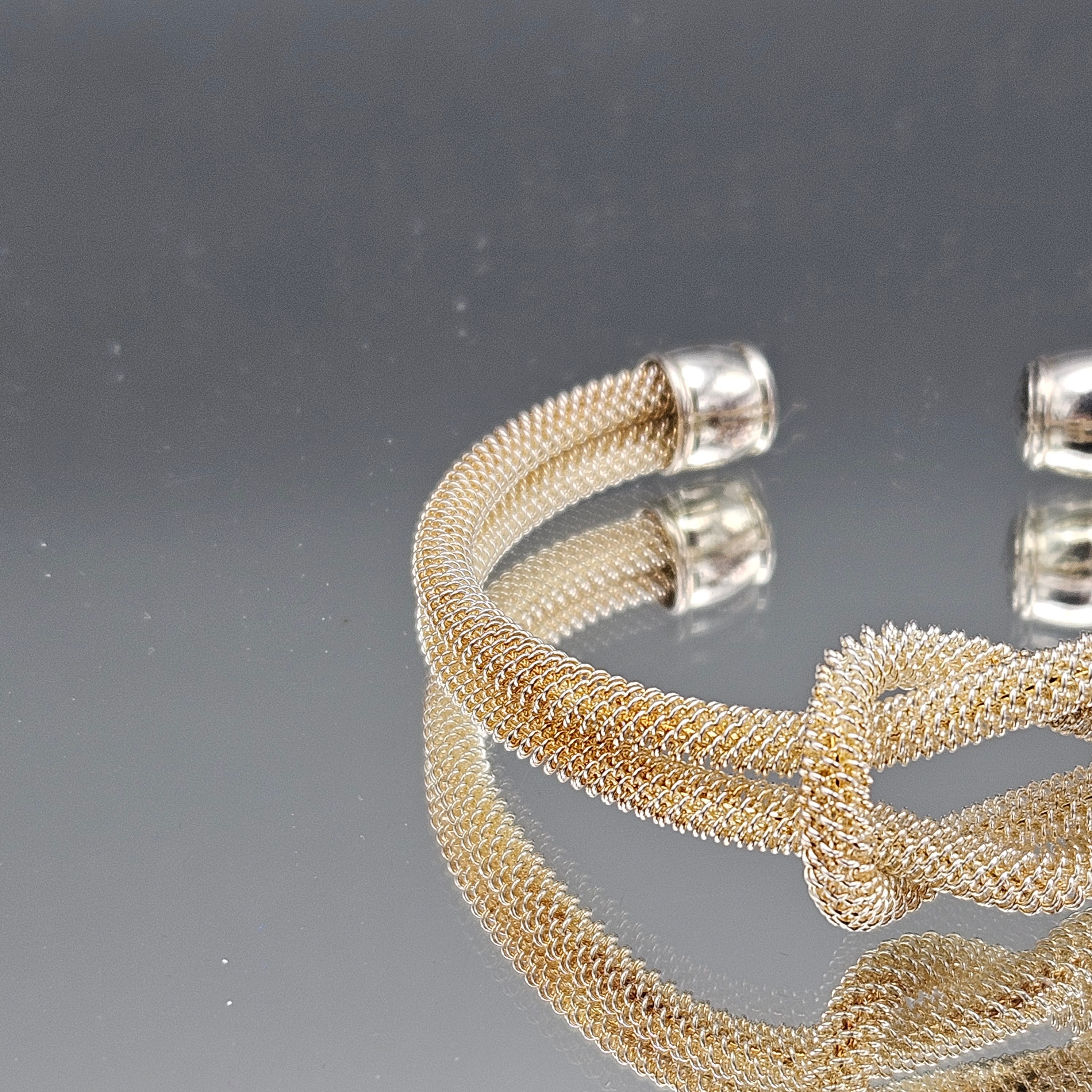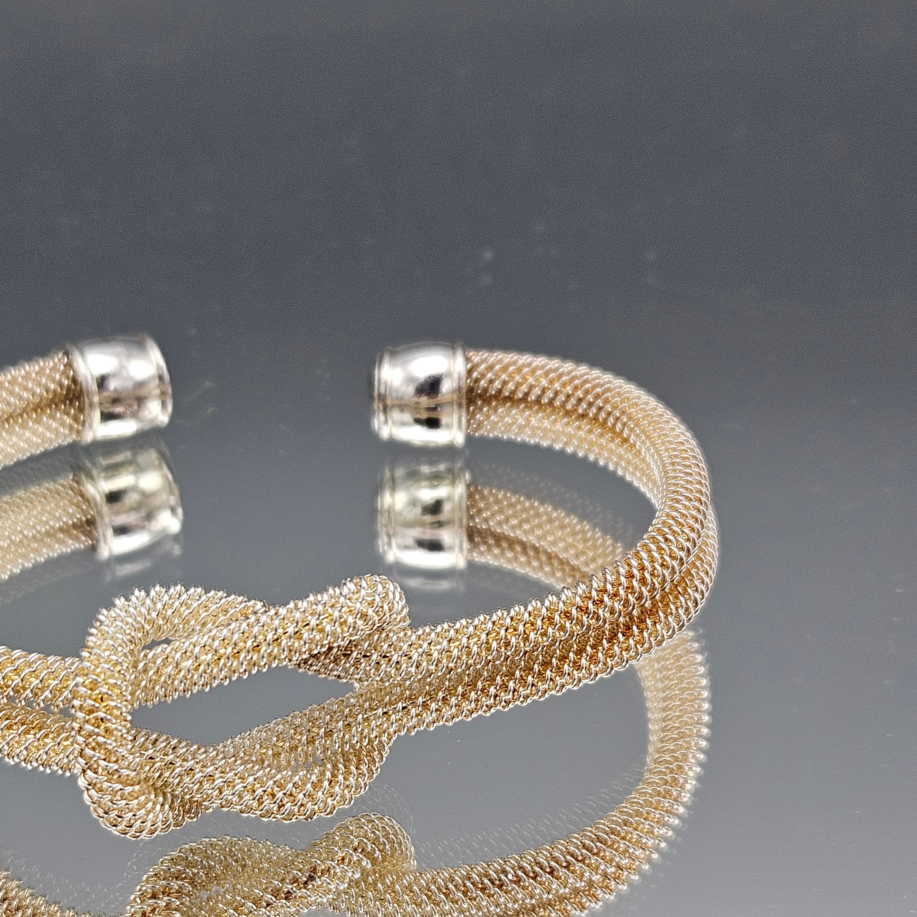Vintage Sterling Silver Mesh Knot Cuff Bracelet