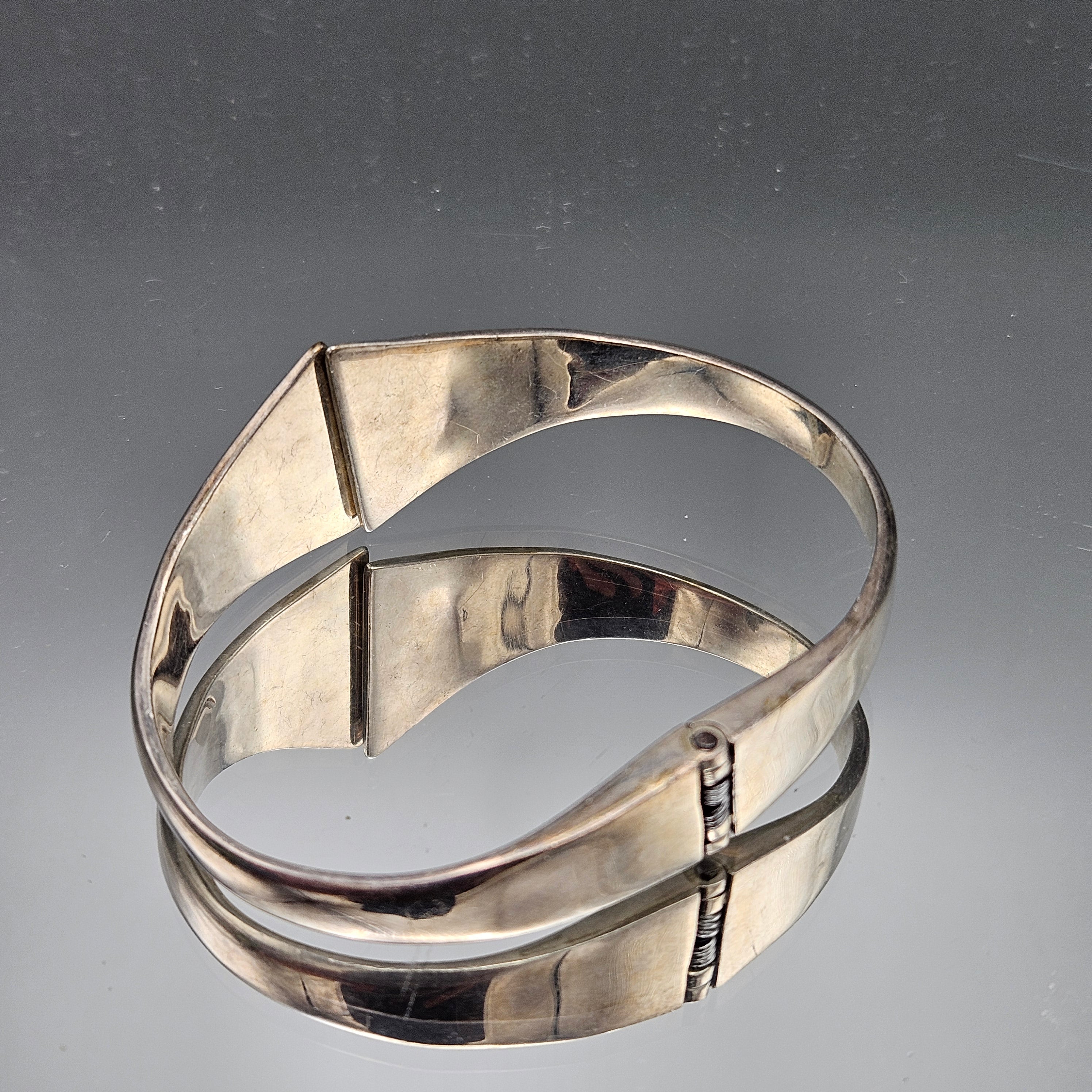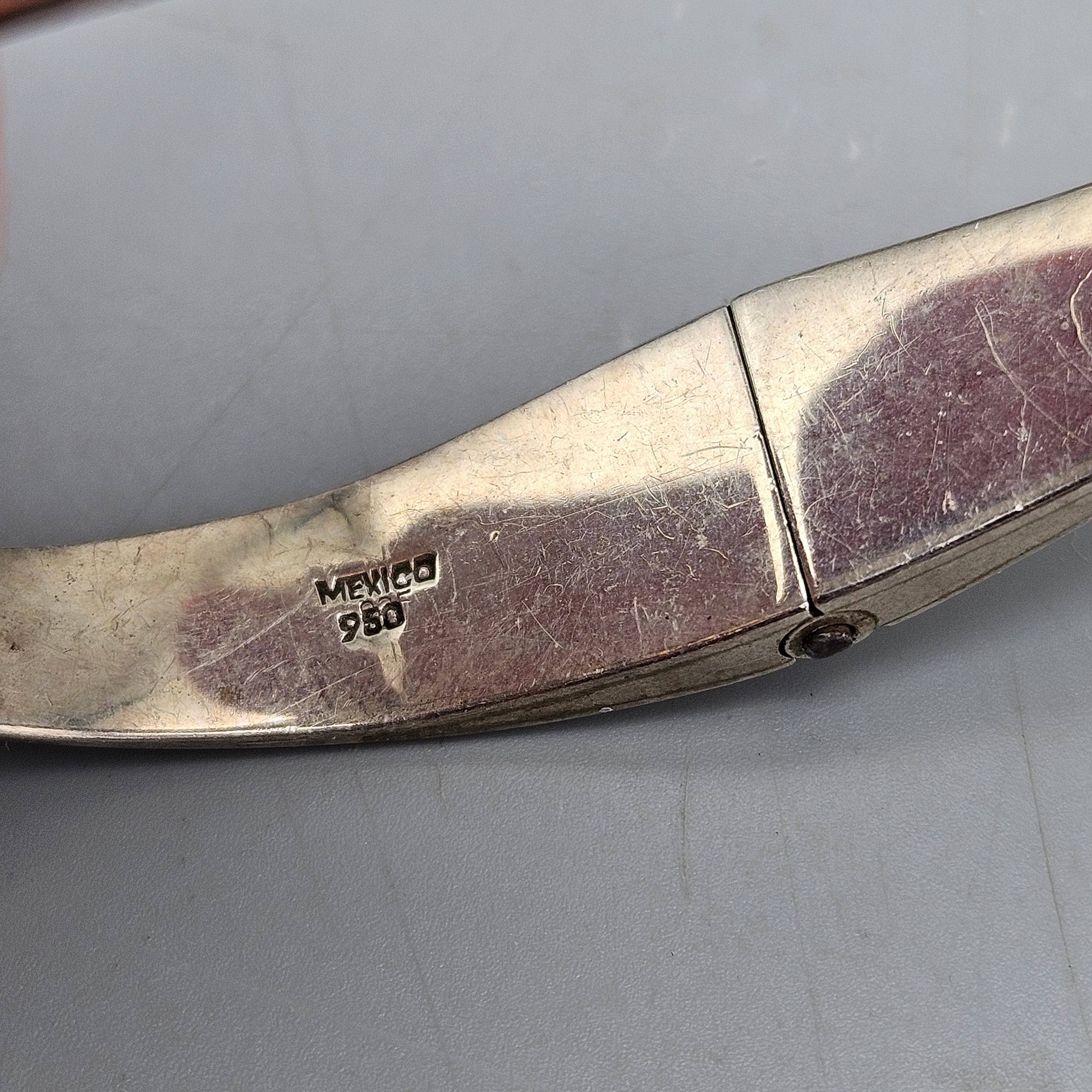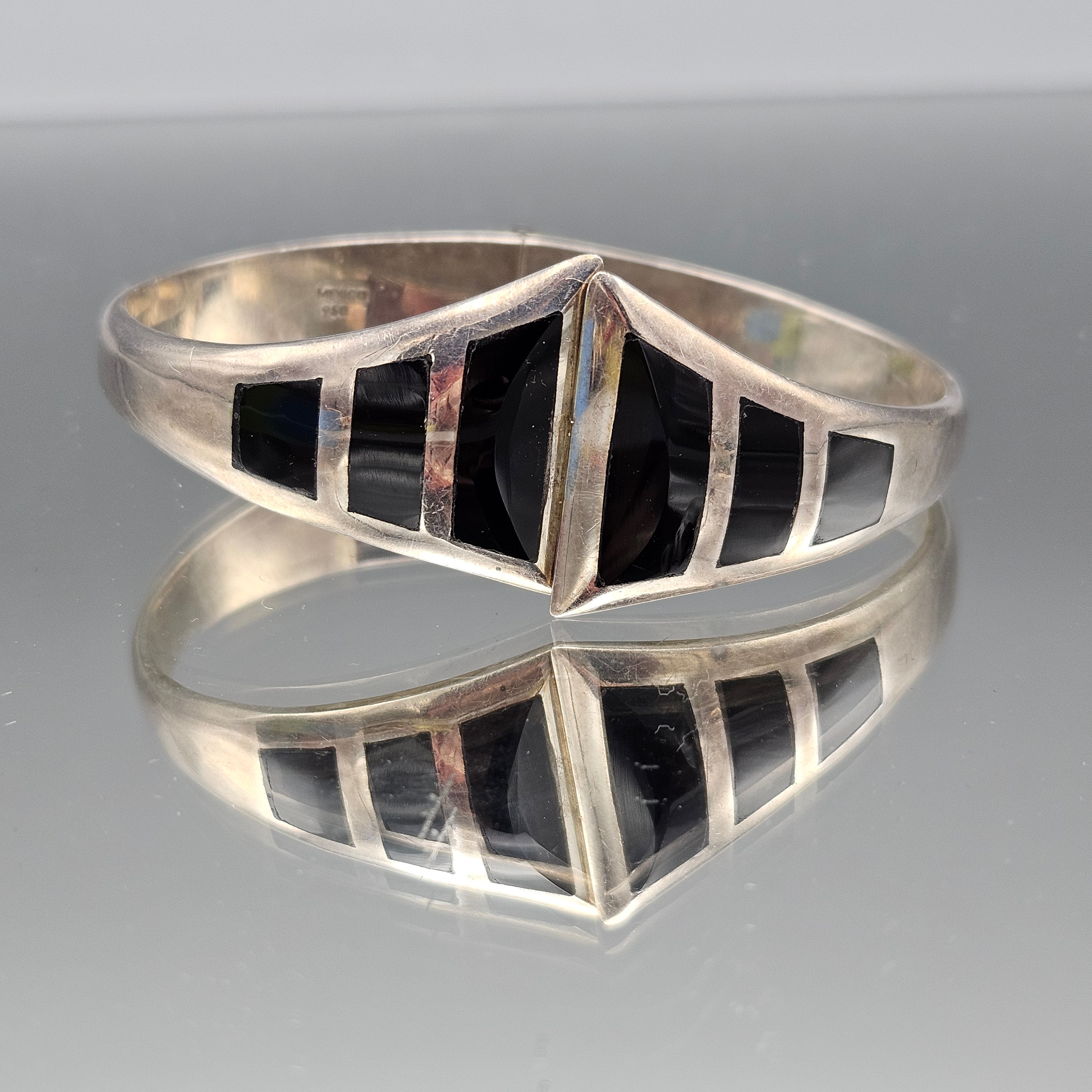 Vintage Mexican 950 Silver Black Onyx Hinged Bracelet