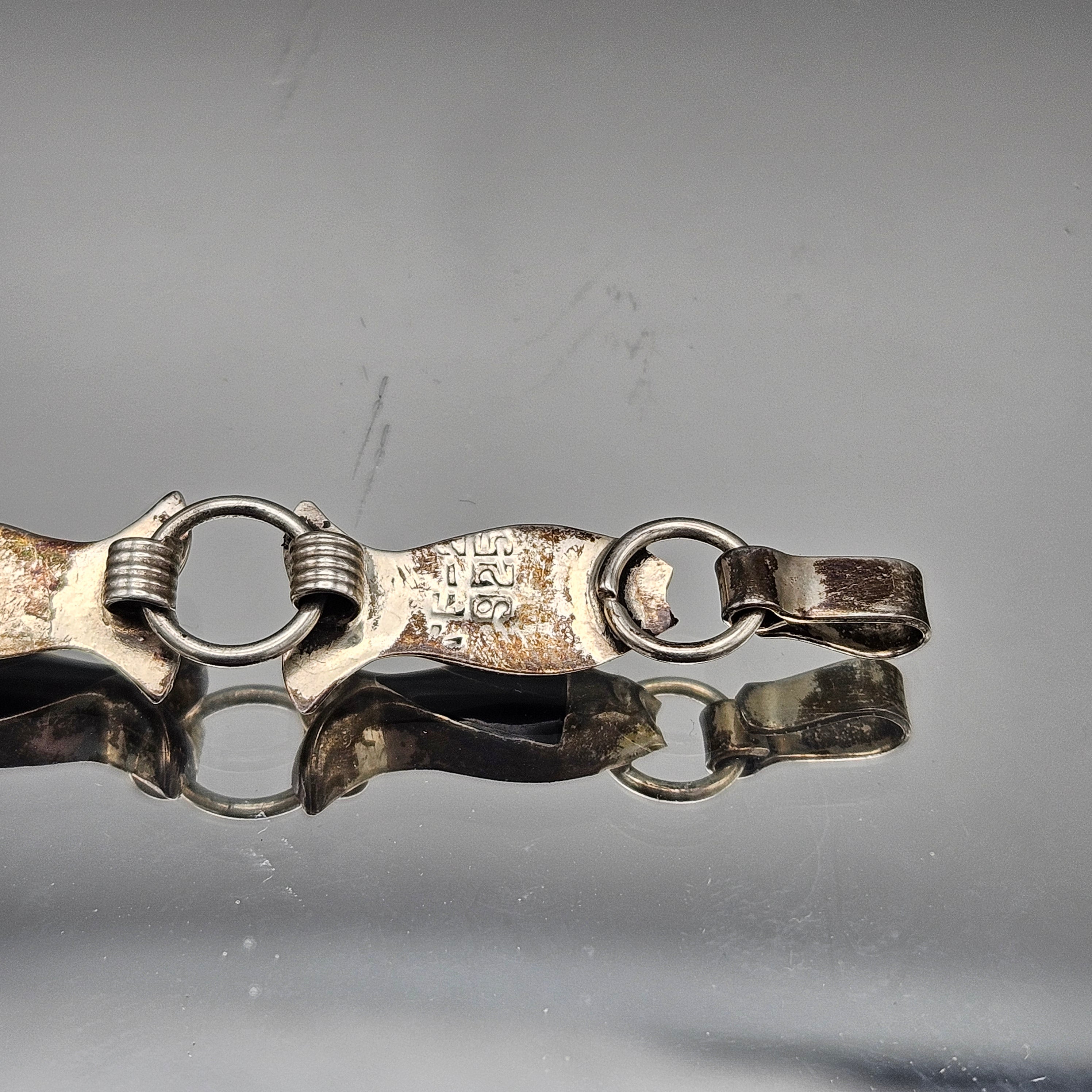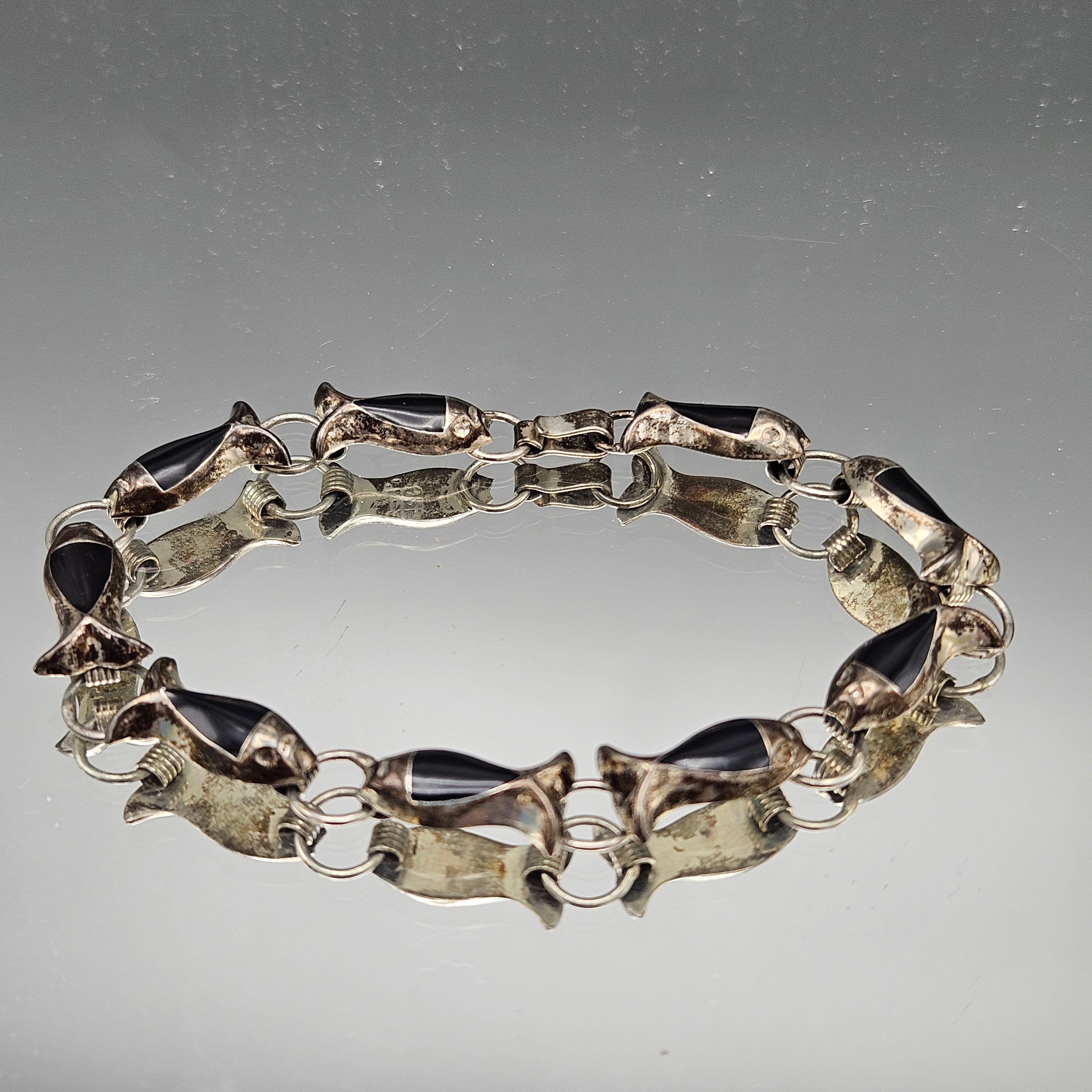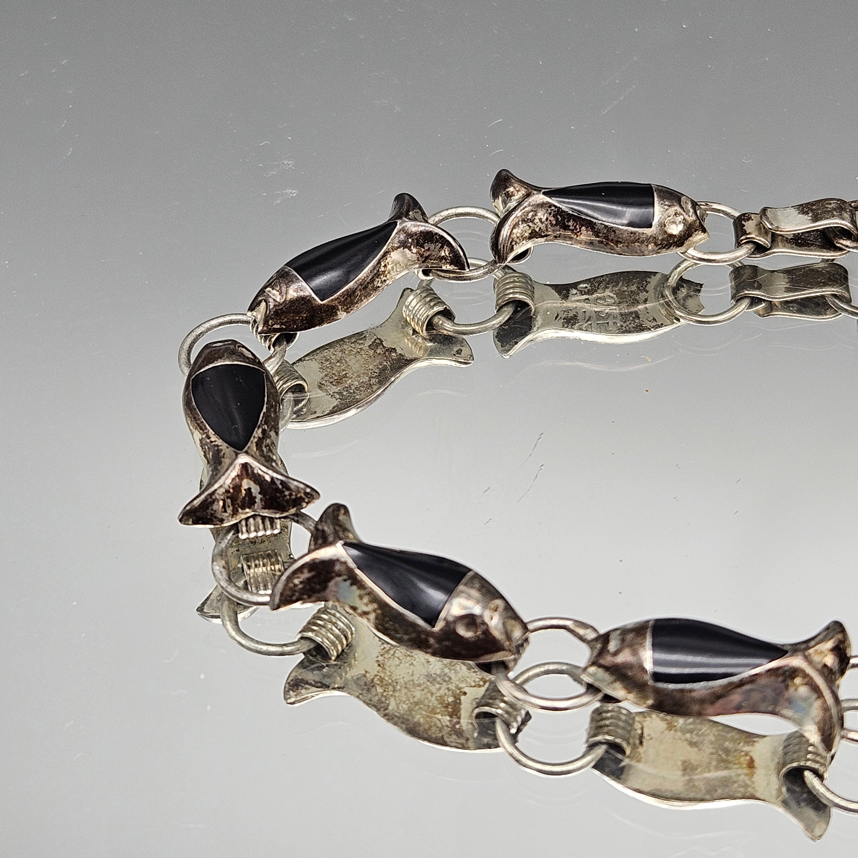 Vintage Mexican Sterling Silver Black Onyx Fish Bracelet
