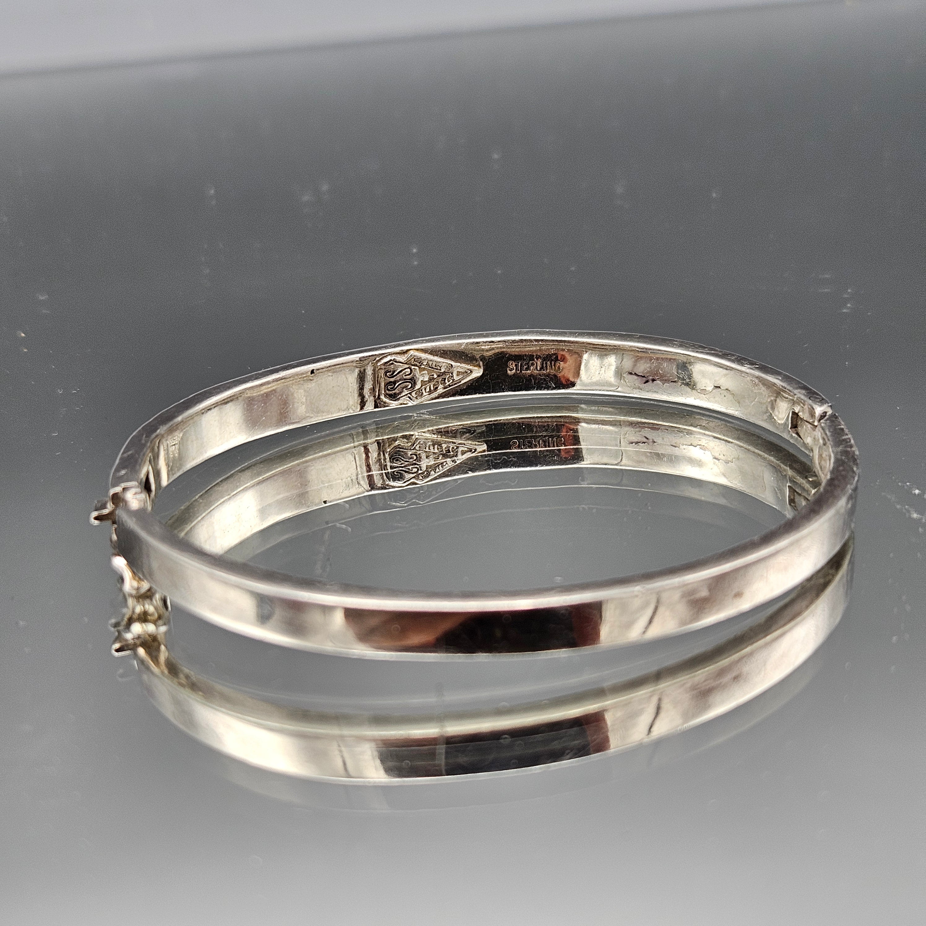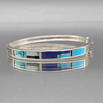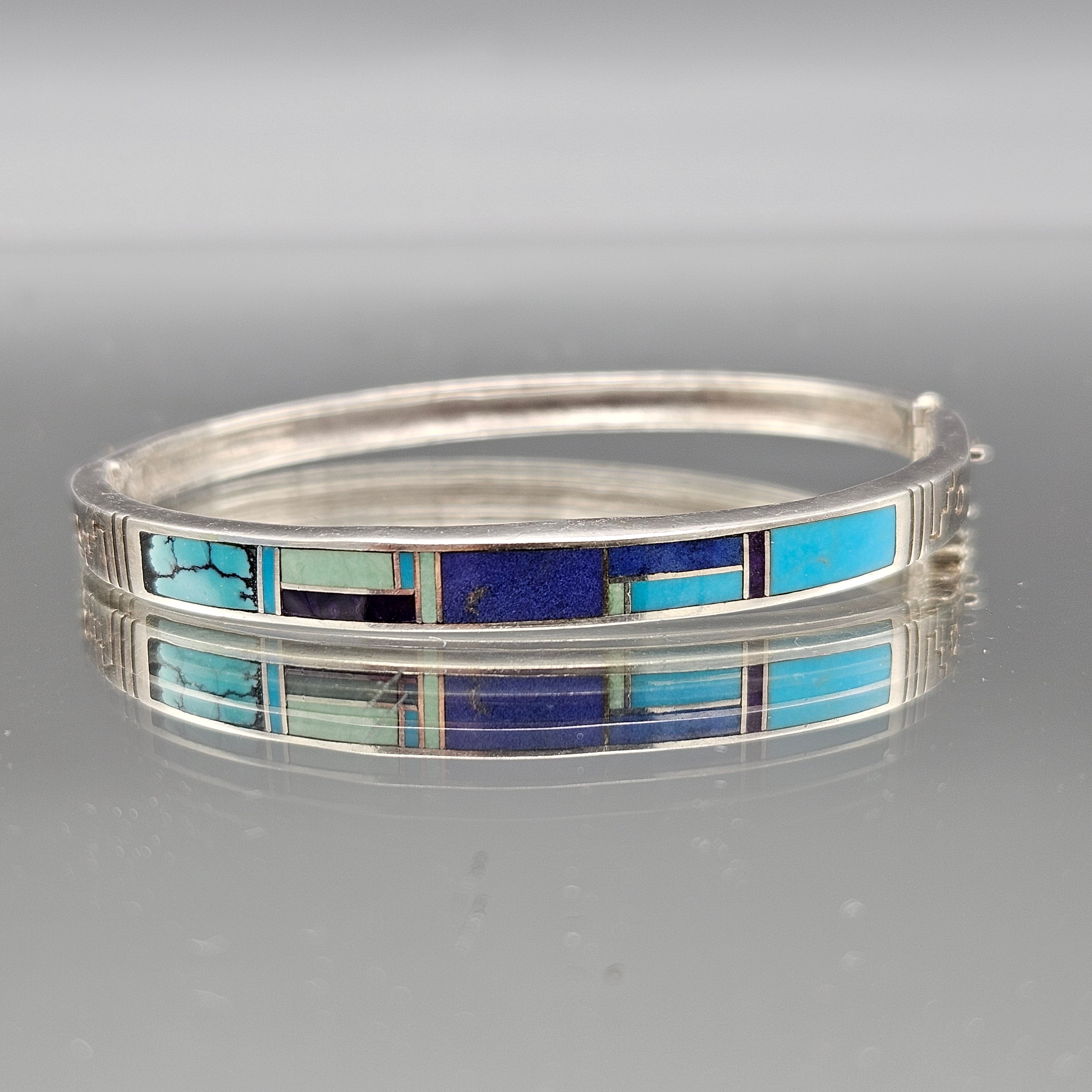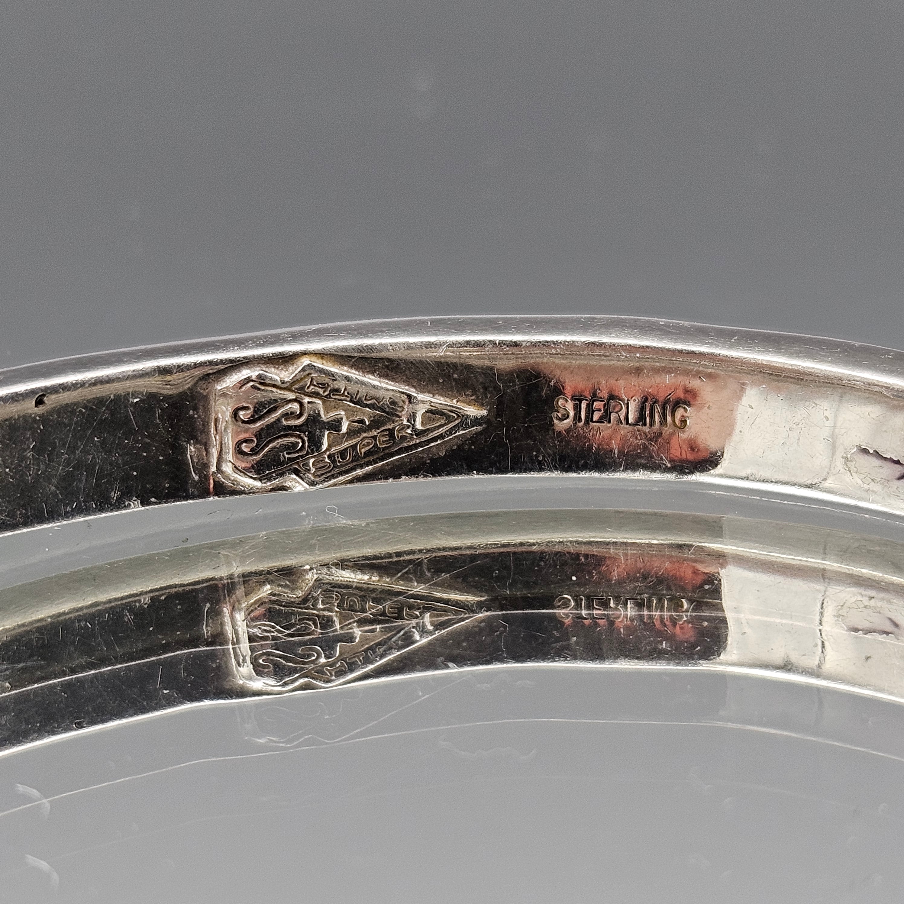 Vintage Super Smith Sterling Silver Natural Stone Bangle Bracelet - Navajo Native American
