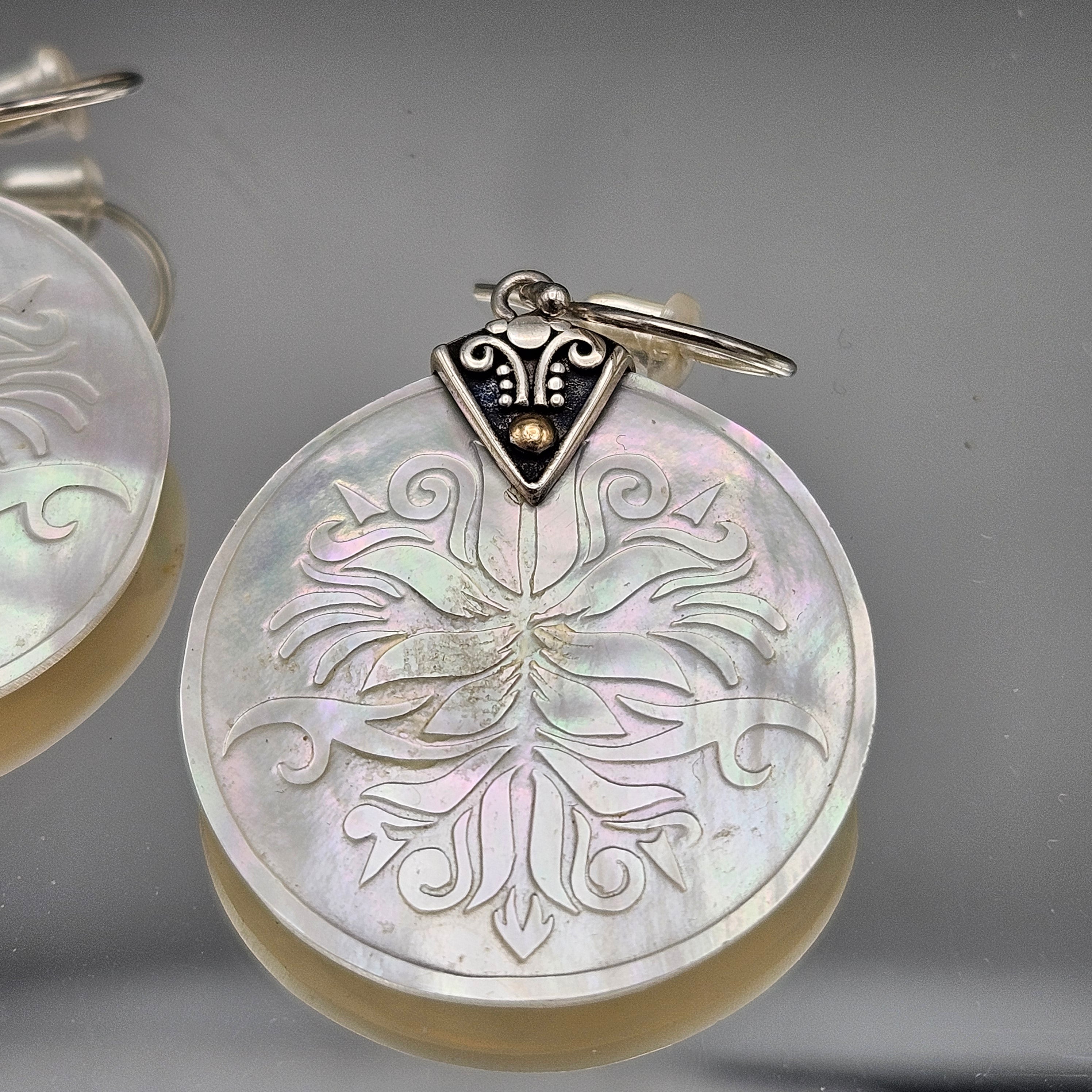 18K & Sterling Silver on Abalone Dangle Earrings