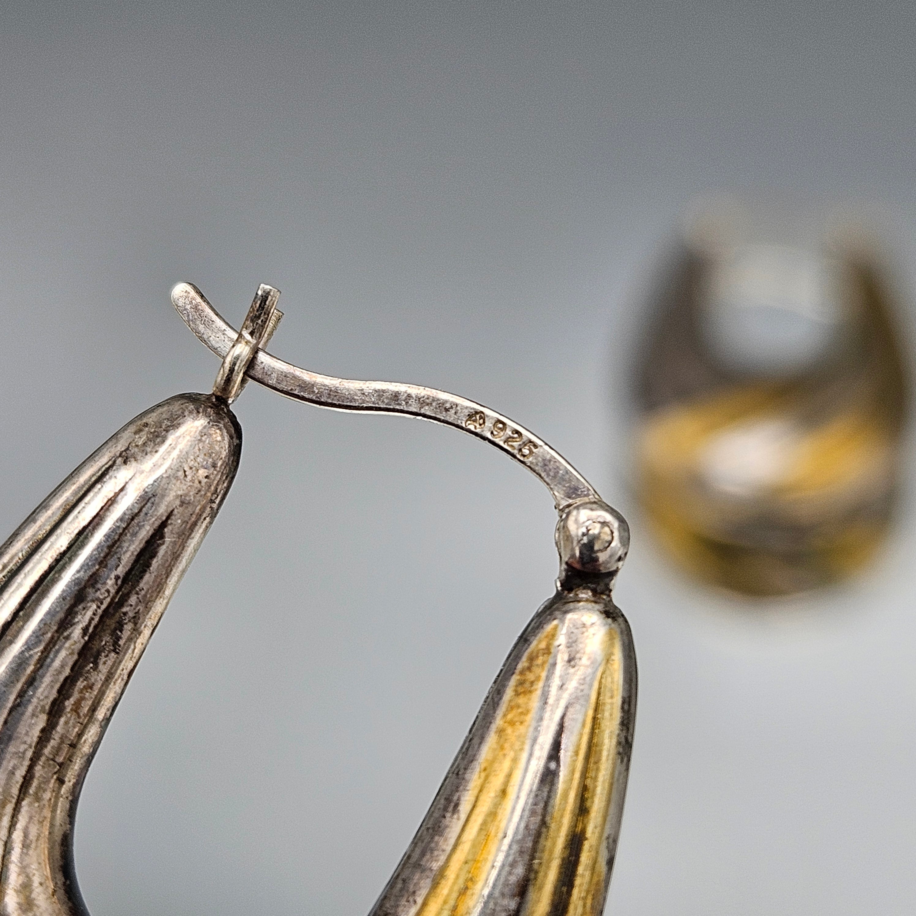 Vintage Sterling Silver Elongated Hoop Earrings