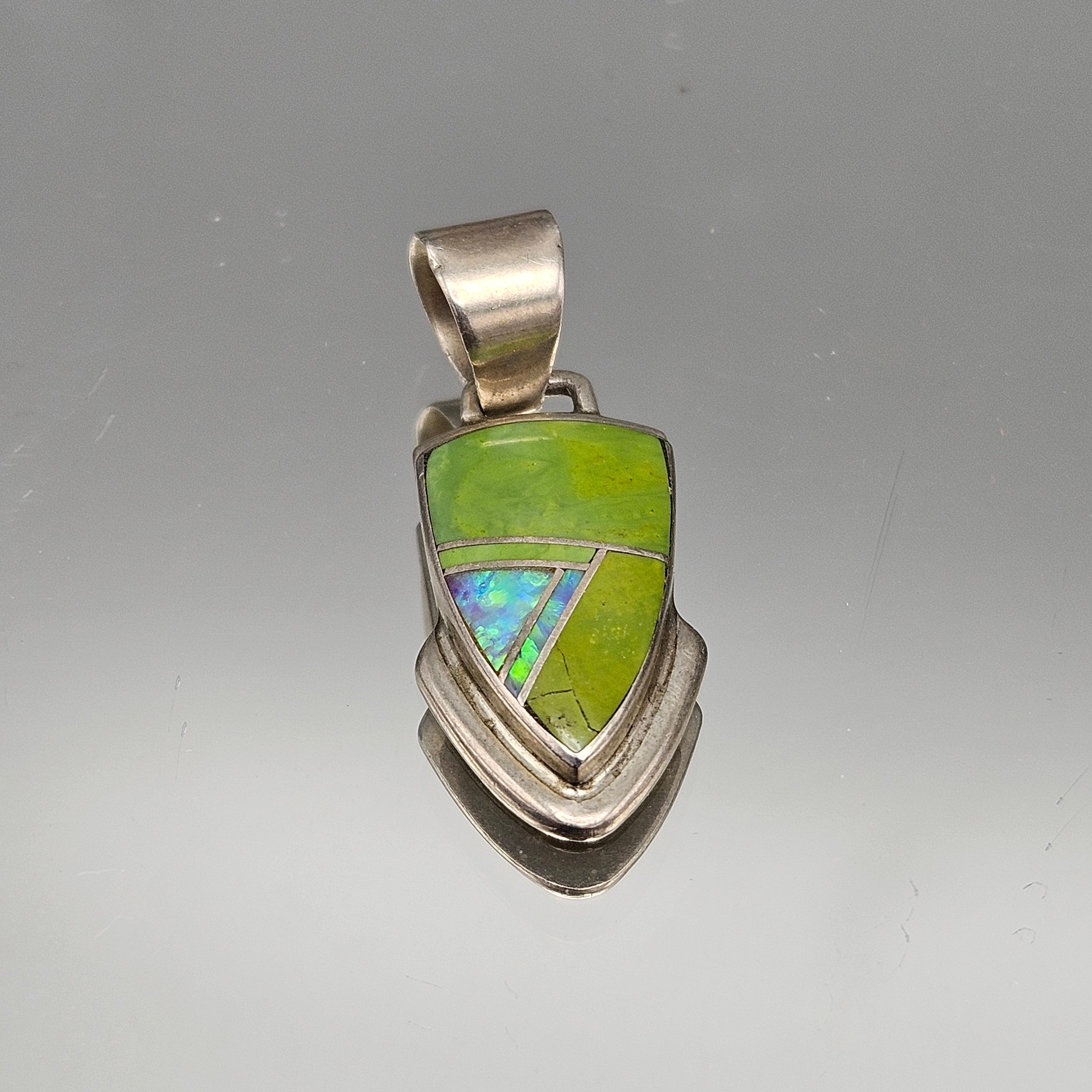 Vintage Francisco Navajo Sterling Gaspeite & Opal Pendant