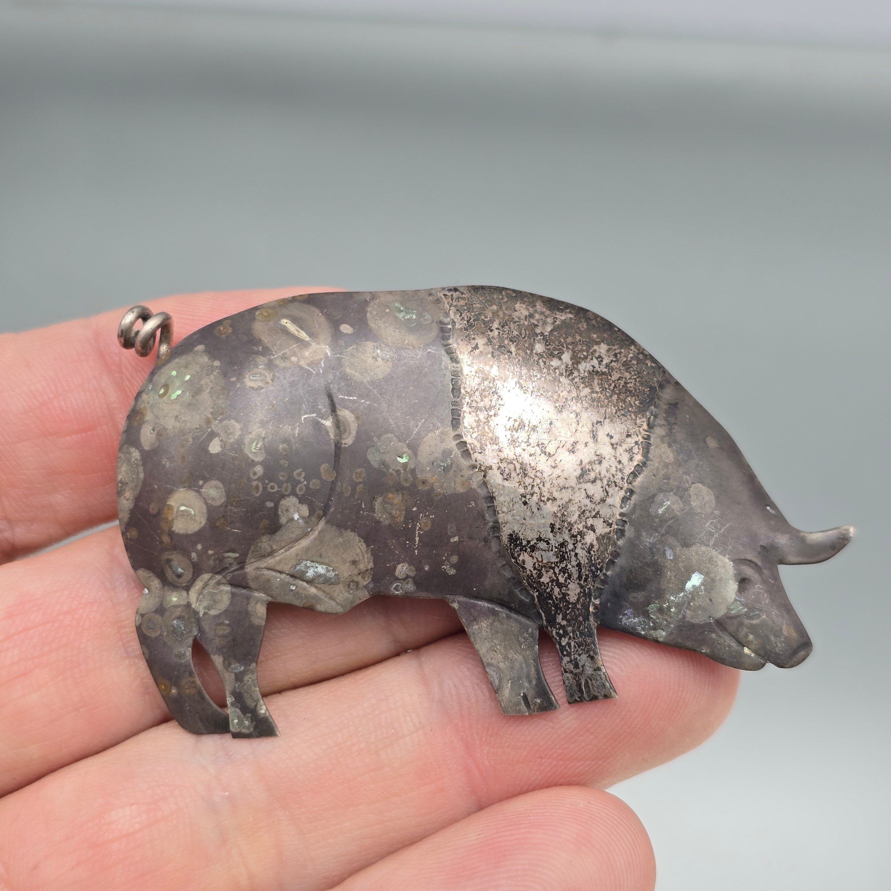 Designer Courtney Peterson Sterling Silver Pig Pin and Pendant